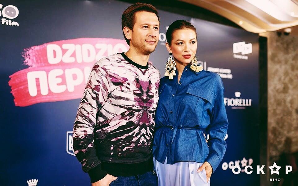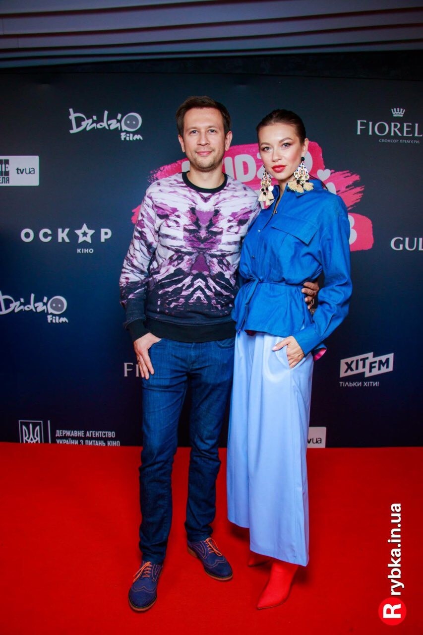 Телеведущая Полина Логунова с мужем Дмитрием Ступкой в голубых кюлотах их эко-кожи и джинсовой рубашке на допремьерном показе украинской романтической комедии «Dzidzio Первый раз». А также элегантные и яркие образы в нарядах от ANNA YAKOVENKO.