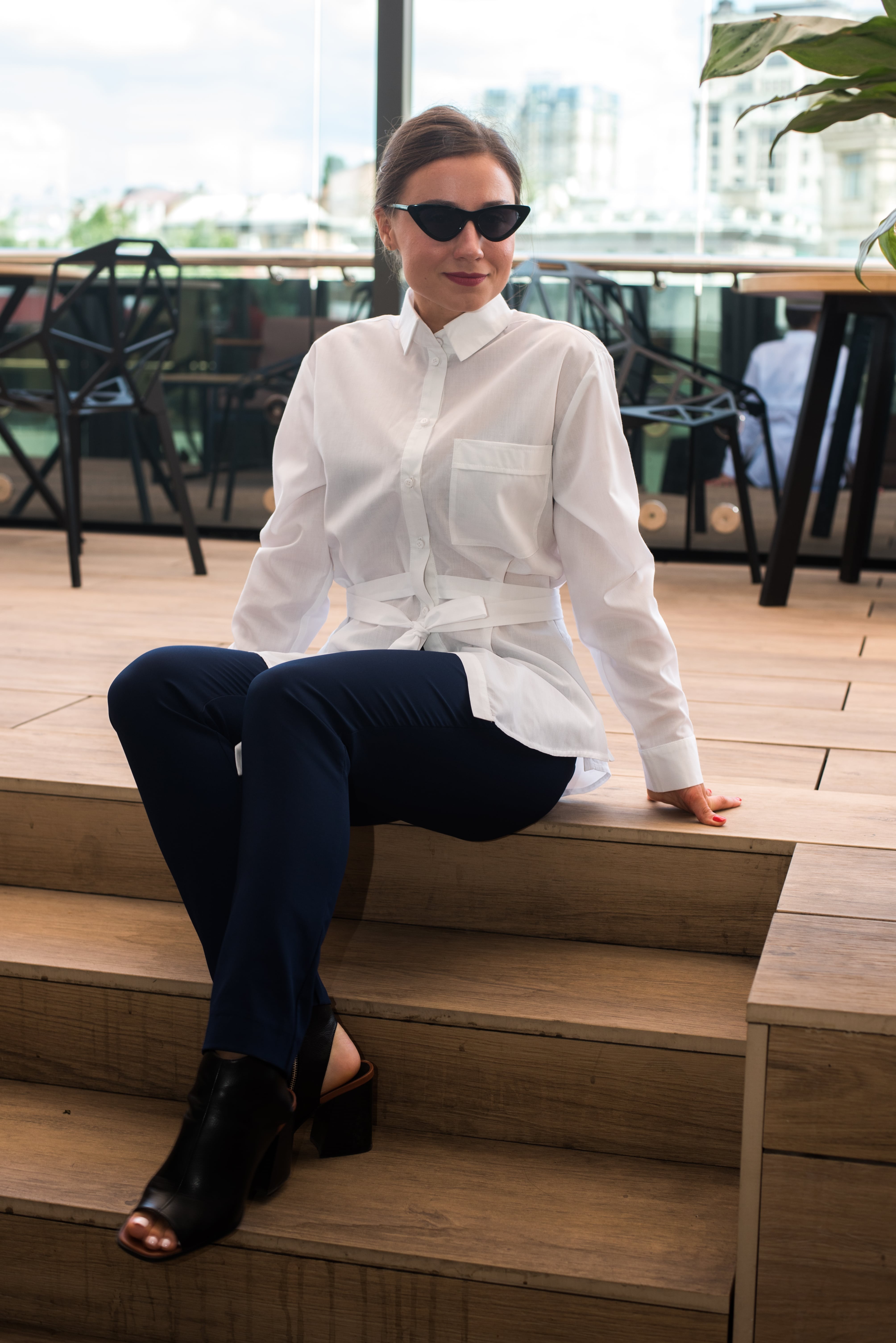 Как на празднике 1-ого сентября. У меня чудесные воспоминания о школьных временах, мы ходили в форме и это было красиво. Белая рубашка идет всем, ты можешь надеть брюки, джинсы или юбку и все равно выглядеть великолепно стильно! Считаю, что у каждого уважающего себя человека в гардеробе должна быть белая рубашка, и даже не одна.
