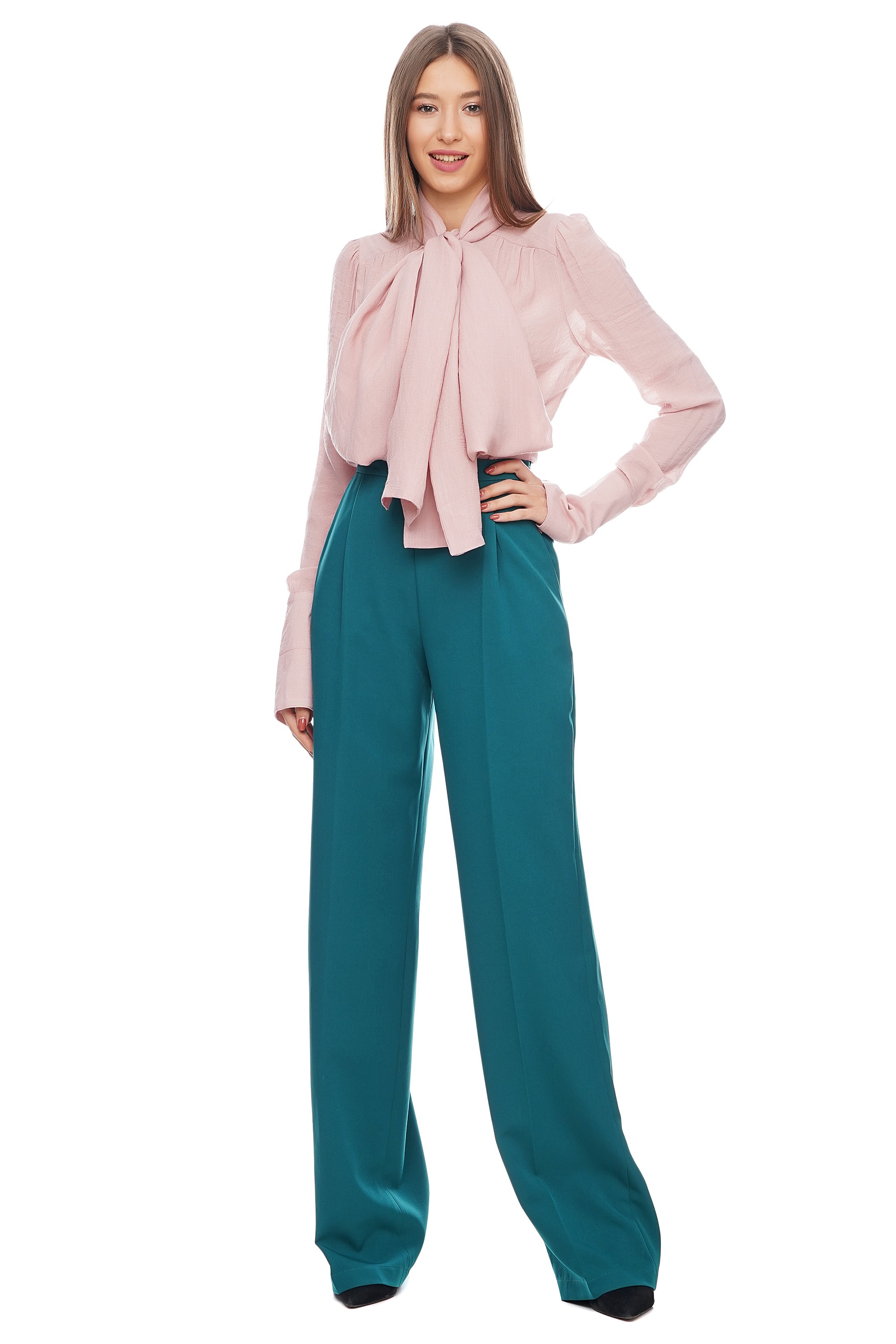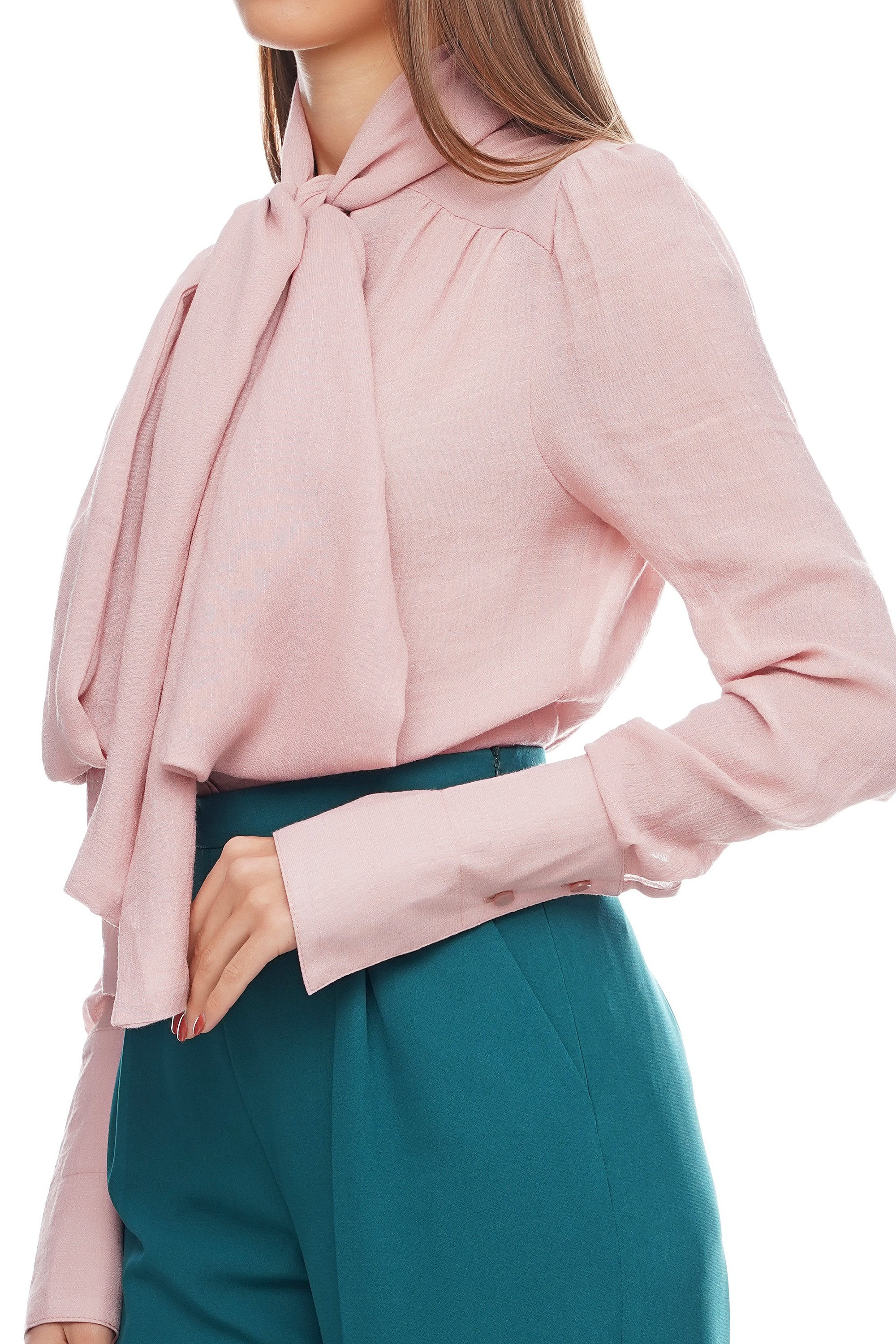 Легкая блуза нежно розового цвета, с воротником переходящим в длинный шарф, который можно завязывать множеством вариантов. Блуза свободного силуэта с вточным рукавом, высоким манжэтом на пуговицах. Легкая прозрачность и натуральный состав ткани придает невесомости. Блуза гармонично дополнит деловой образ, а также подойдет для наряда на мероприятие или свидание.