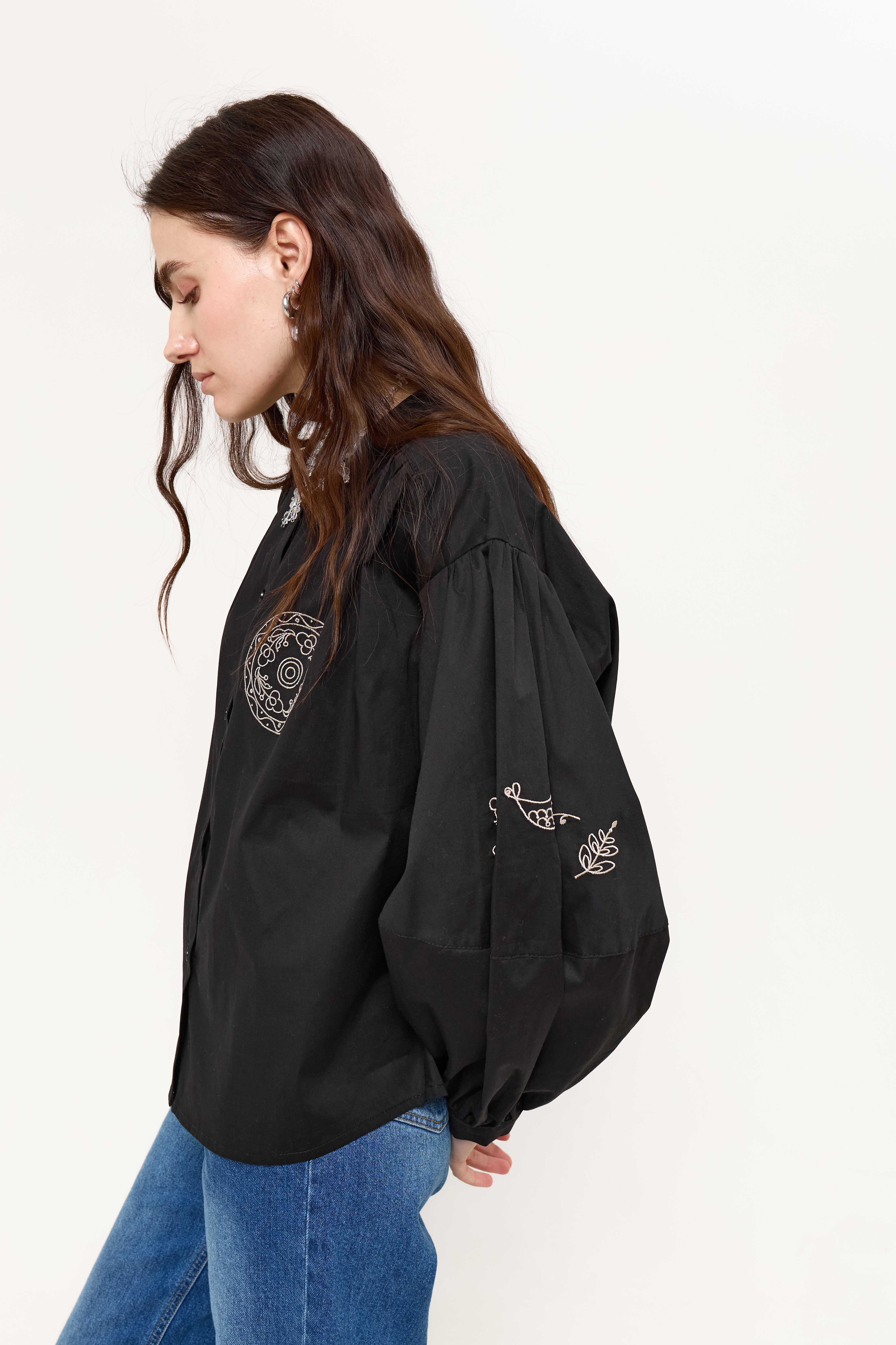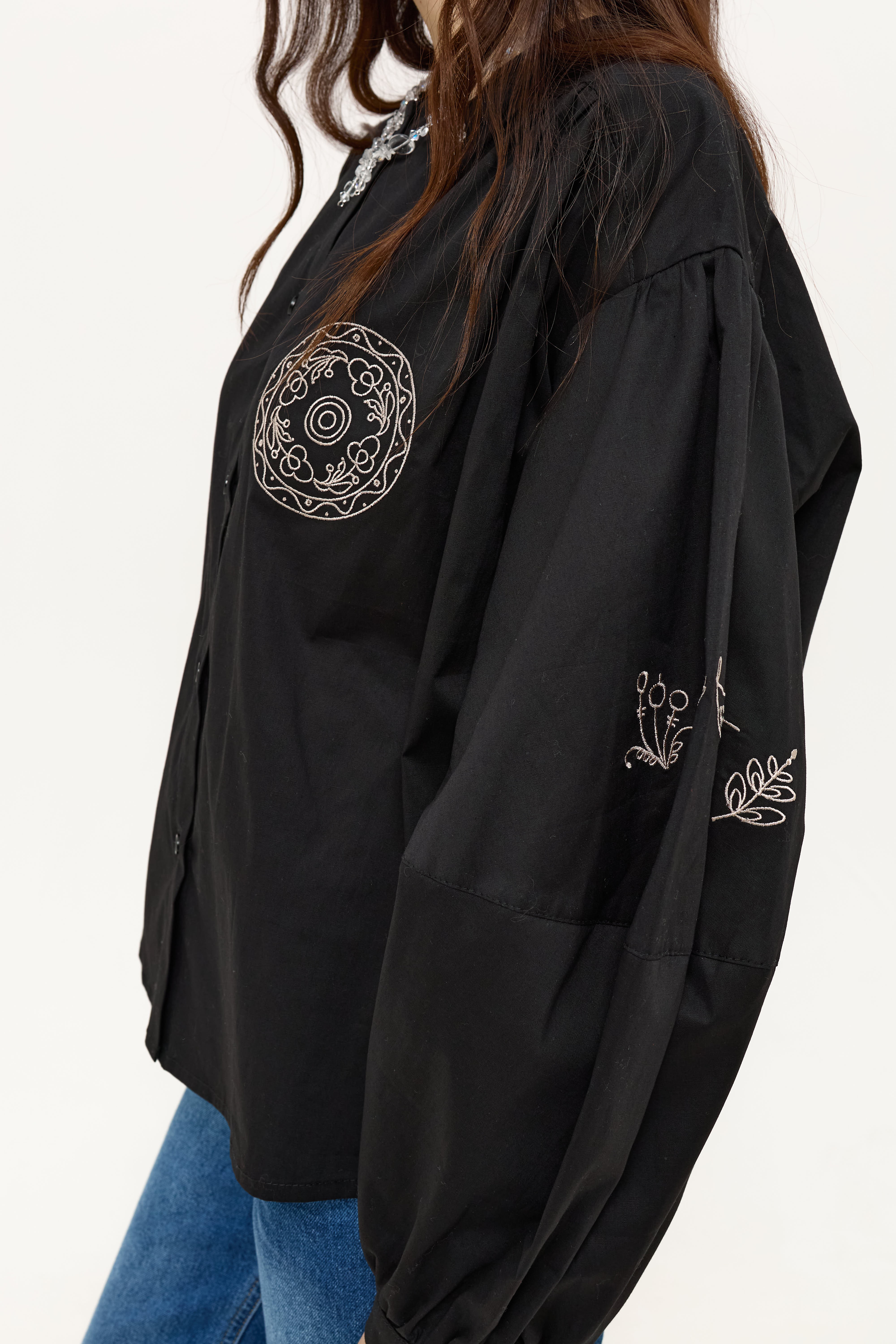 Чорна блуза з вишивкою.