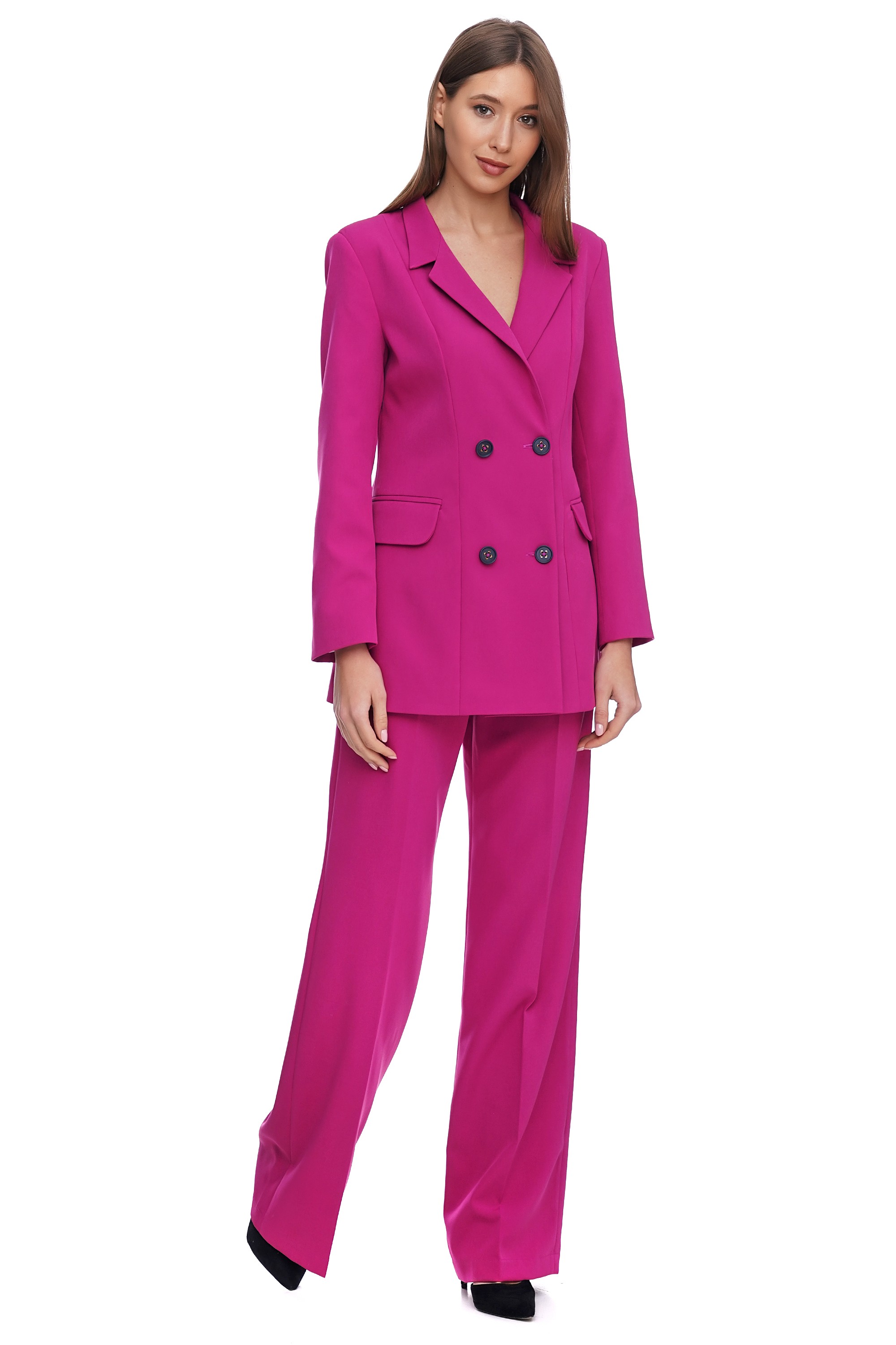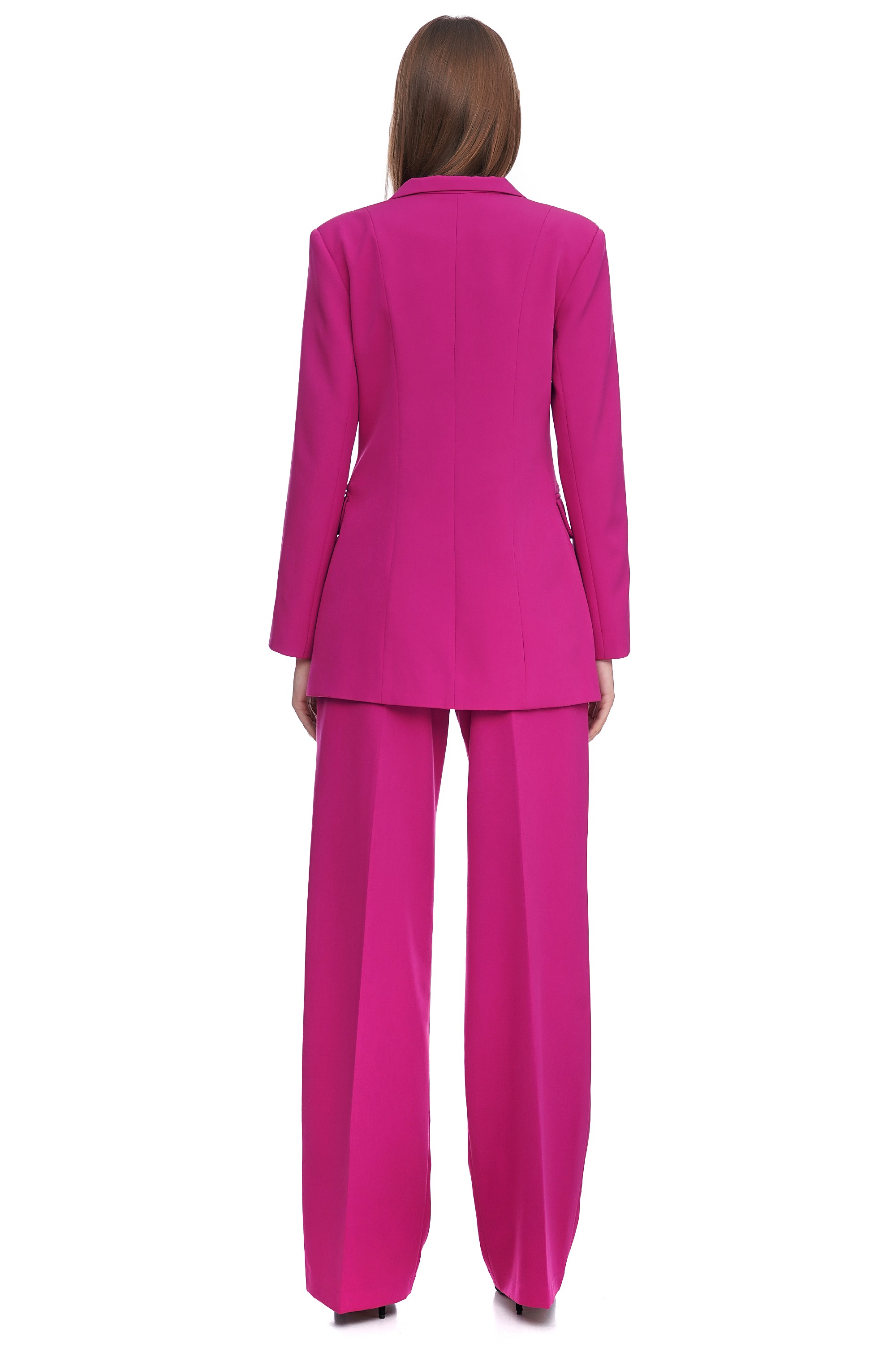 Брюки из костюмной ткани в цвете темной фуксии клёш от бедра, высокой посадки с заутюженными стрелками по всей длине и застёжкой молнией в боковом шве.