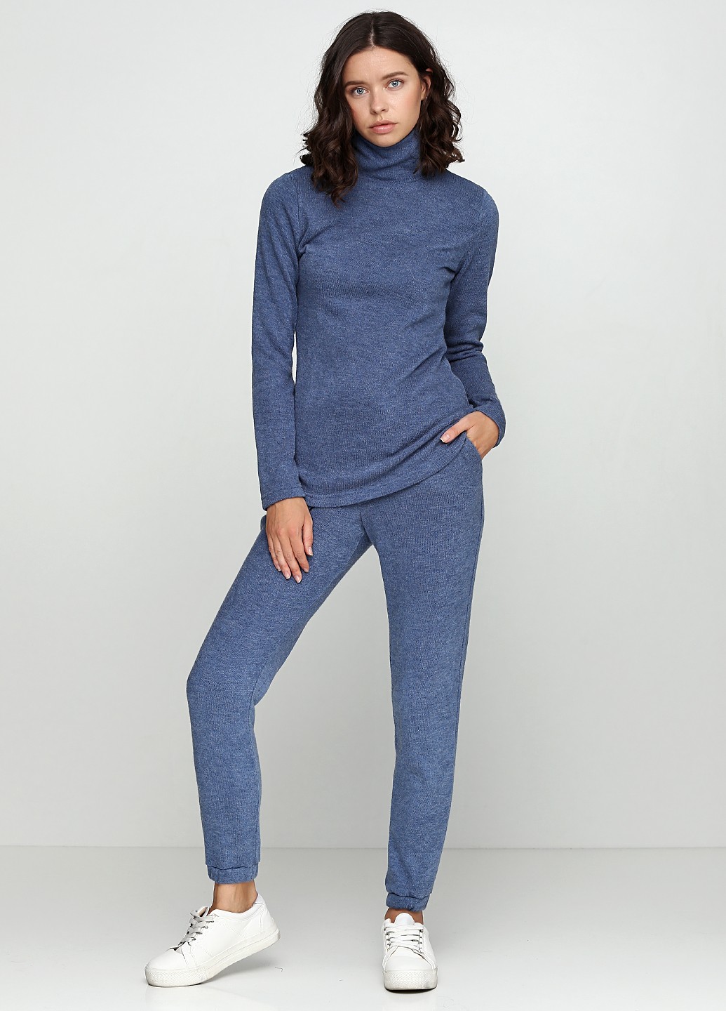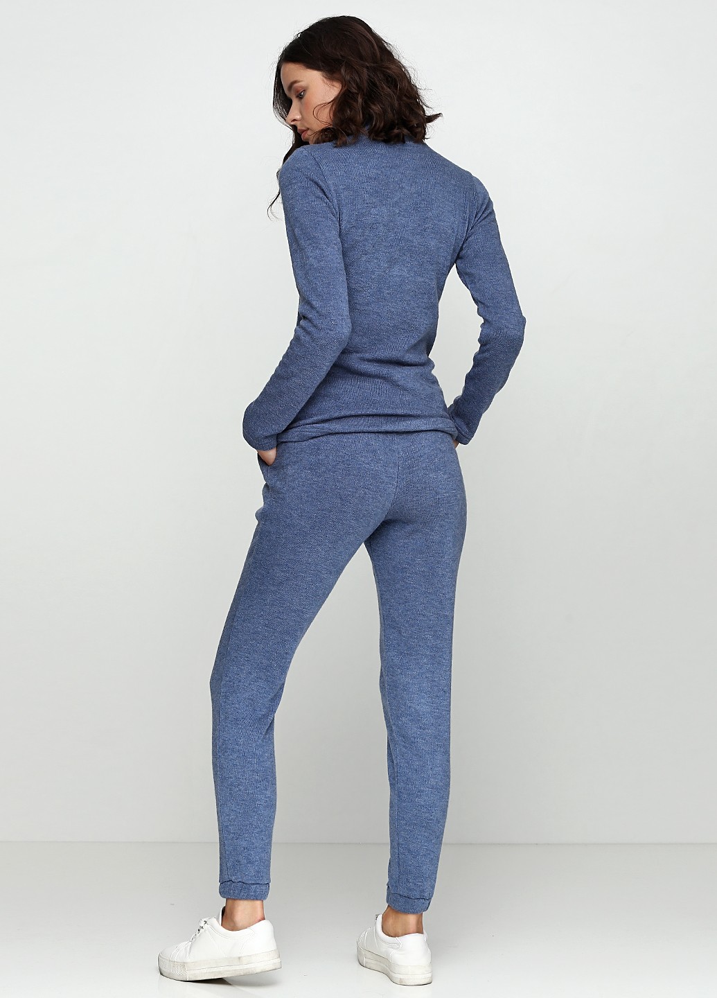 Ангоровые slim брюки голубого цвета на манжете, пояс на резинке со шнурком. Отличный вариант для холодных дней.