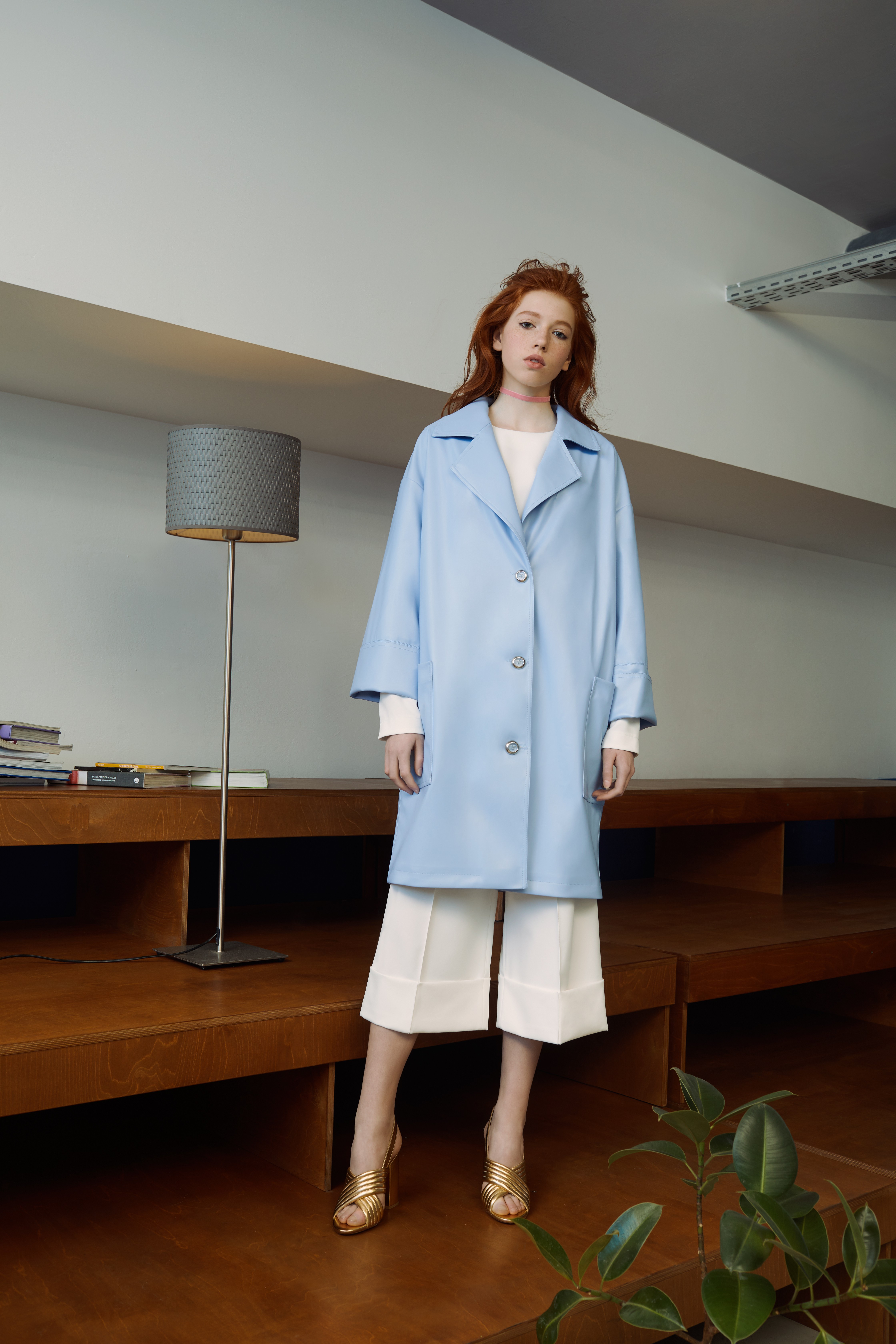 Голубой плащ с английским воротником