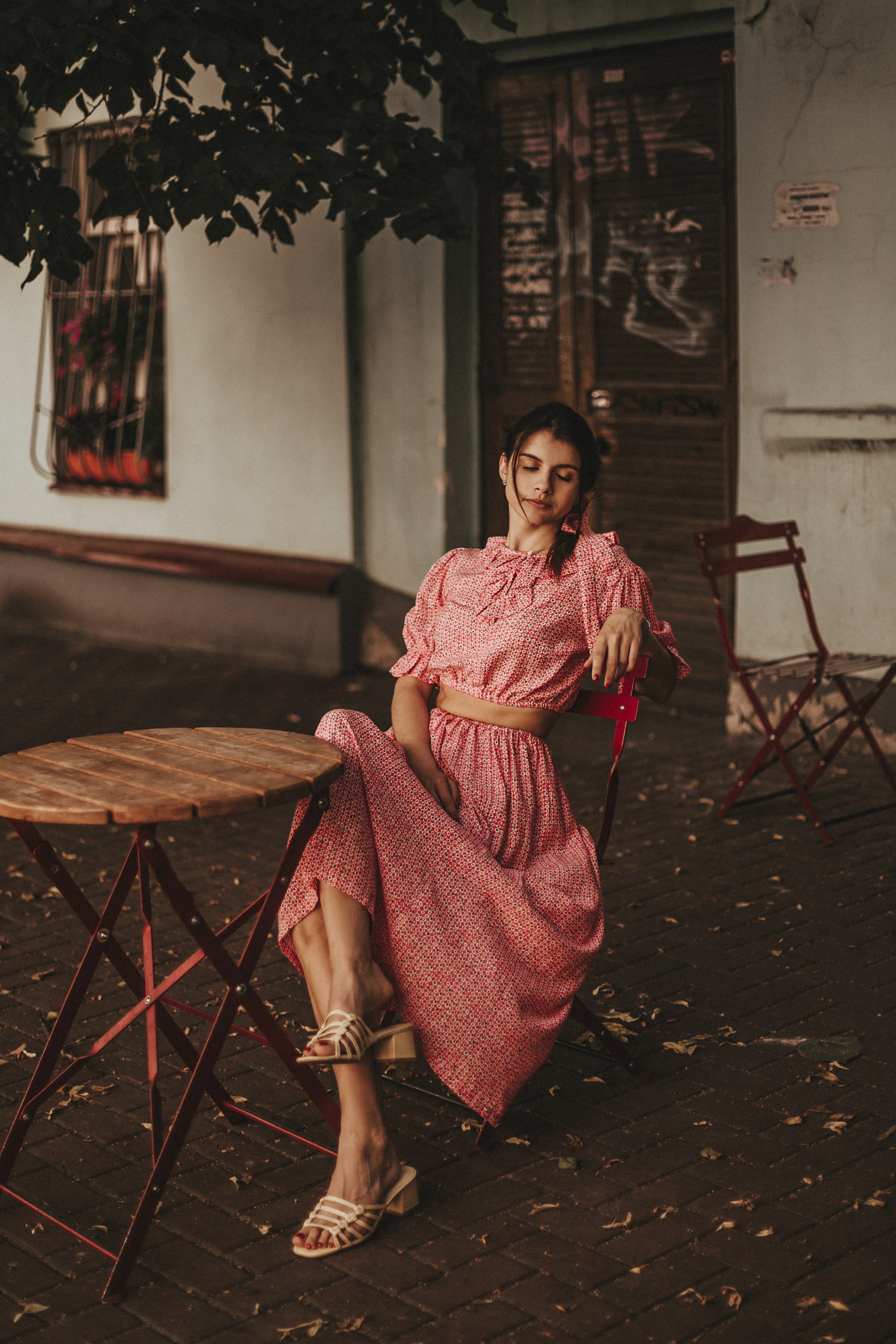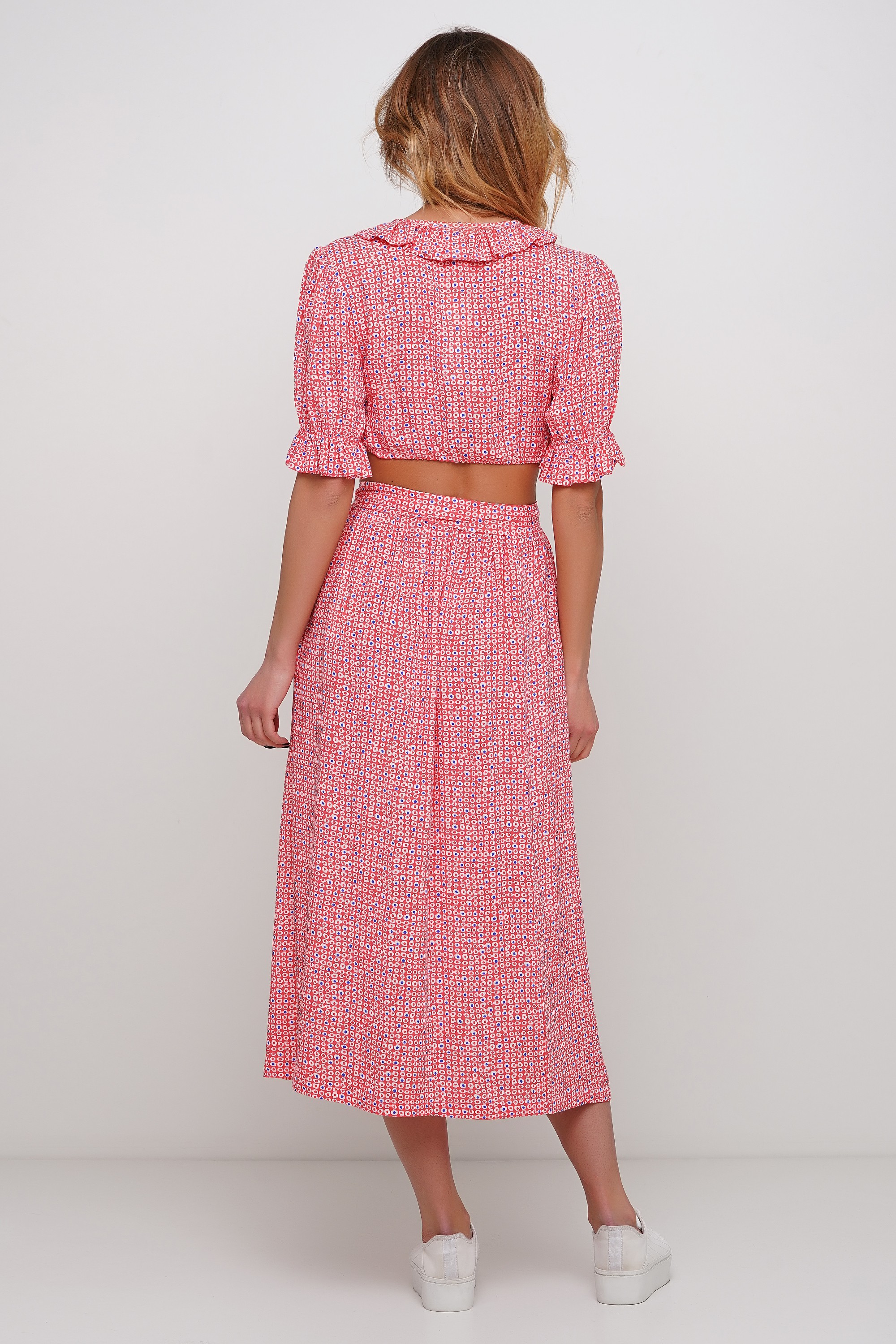 Укороченная блуза на резинке, с коротким рукавом на резинке, с рюшей по воротнику и рукаву