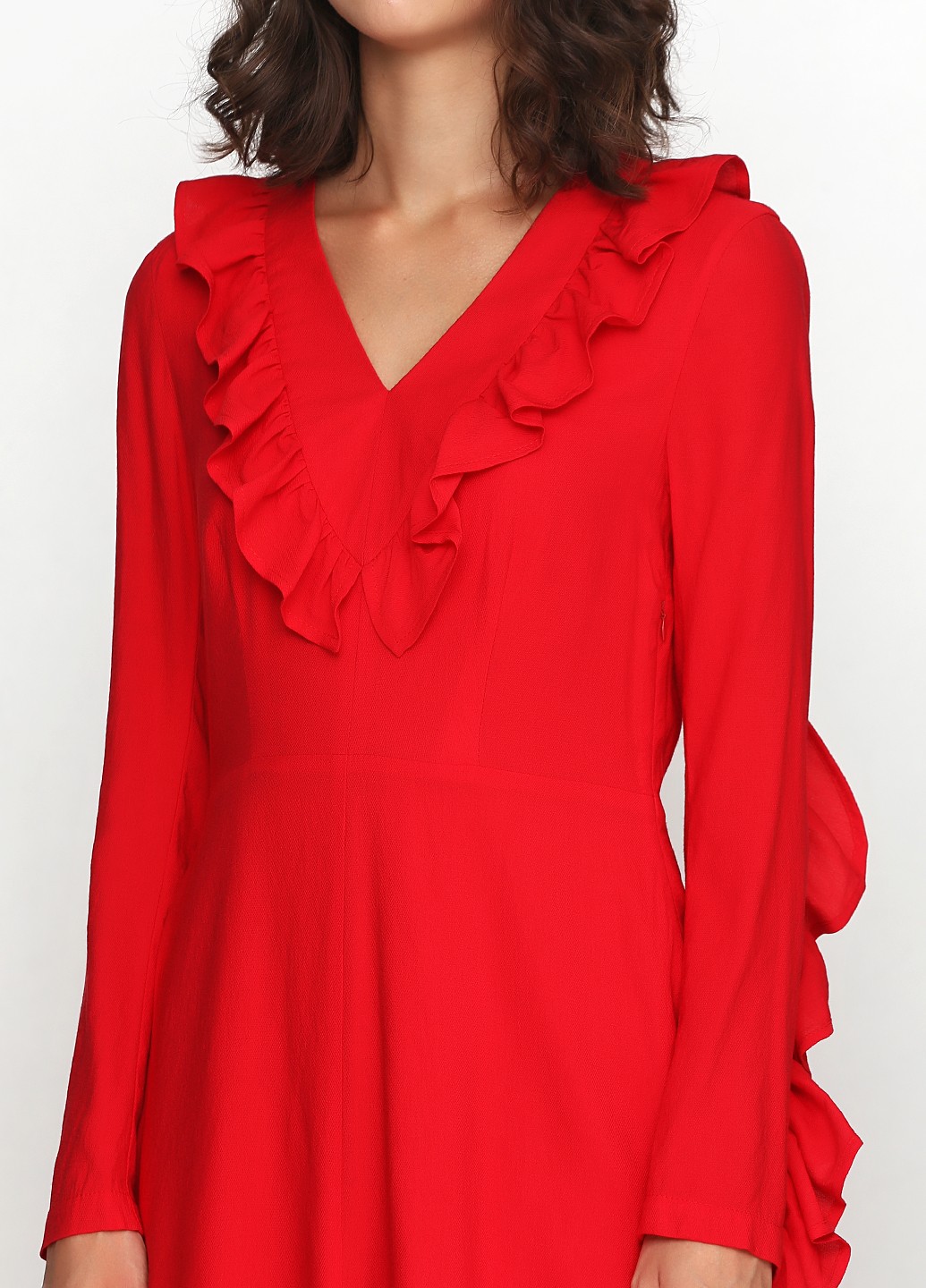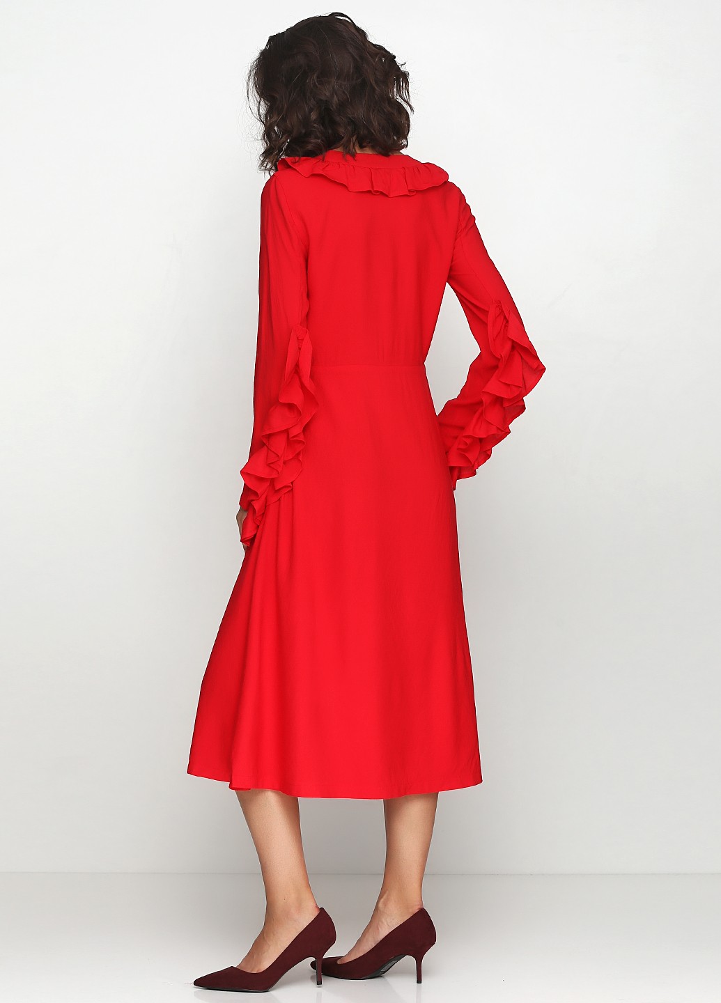 Красное платье с рюшей
