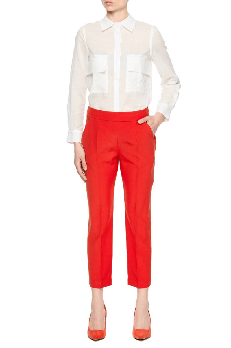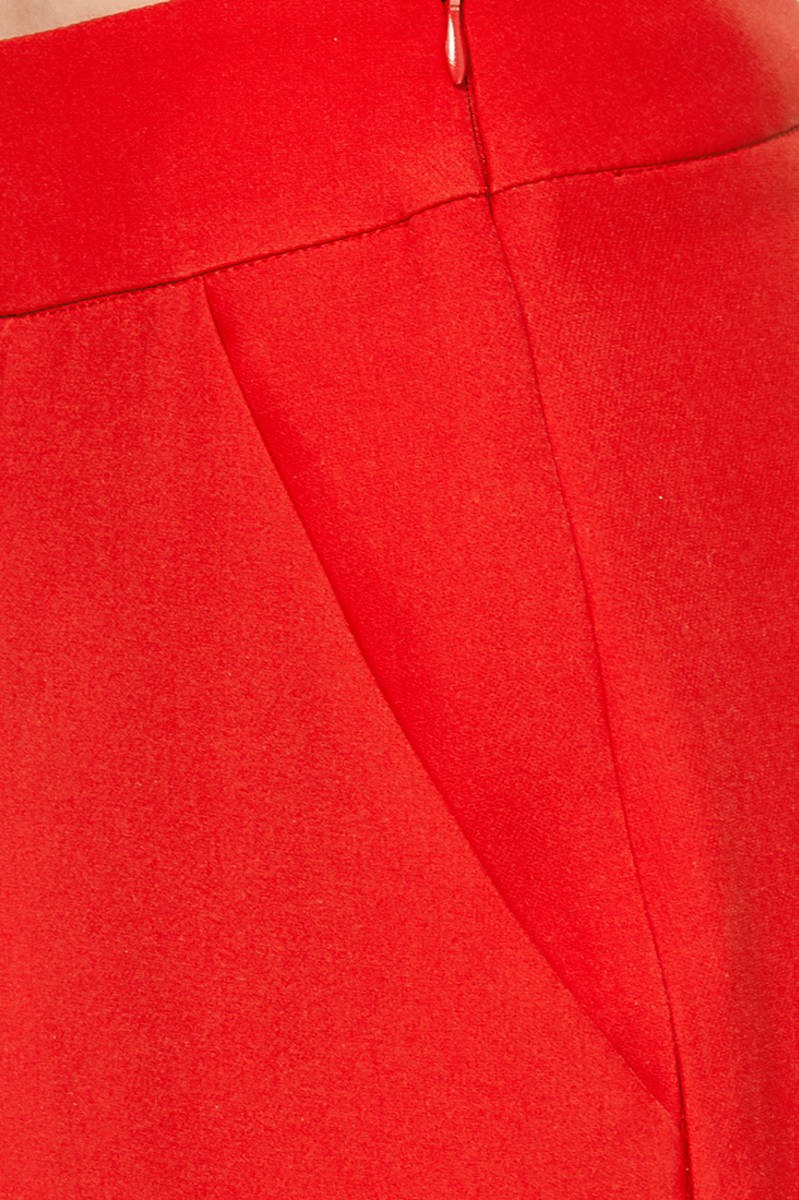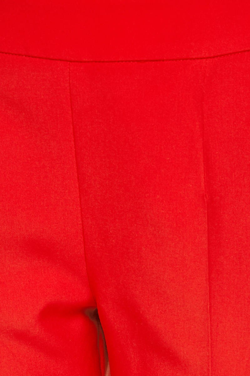 Красное зауженые брюки со стрелками из костюмной ткани.