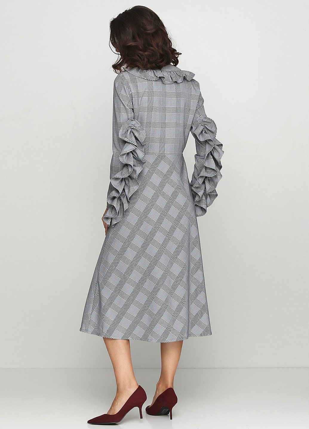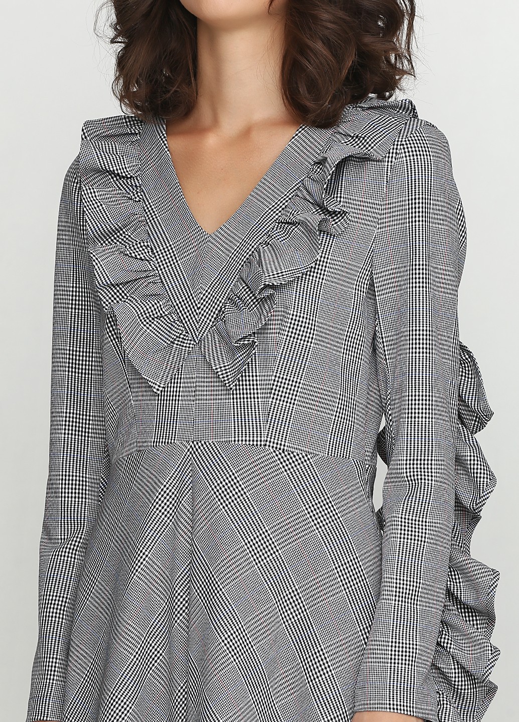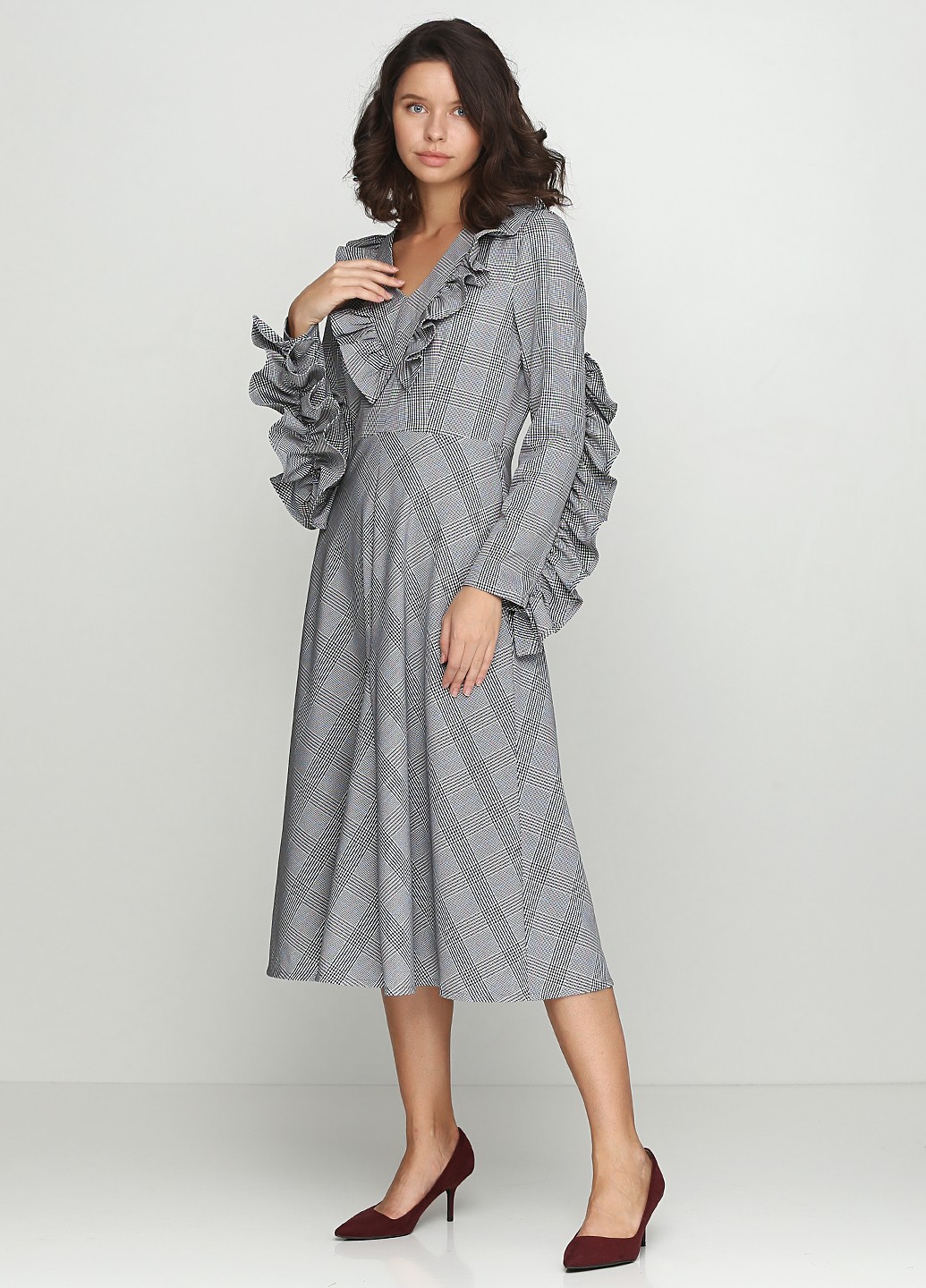 Платье в клетку с рюшей