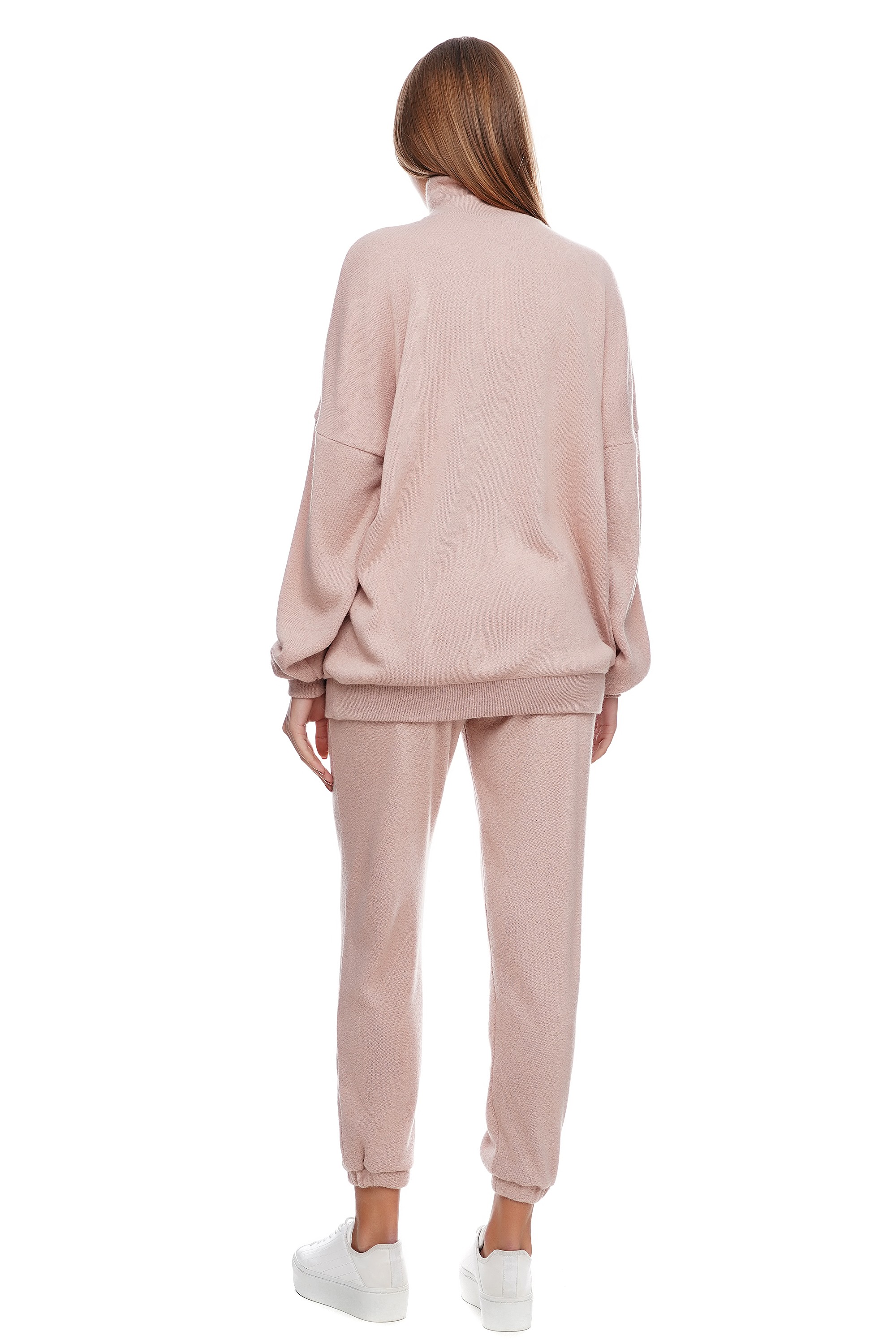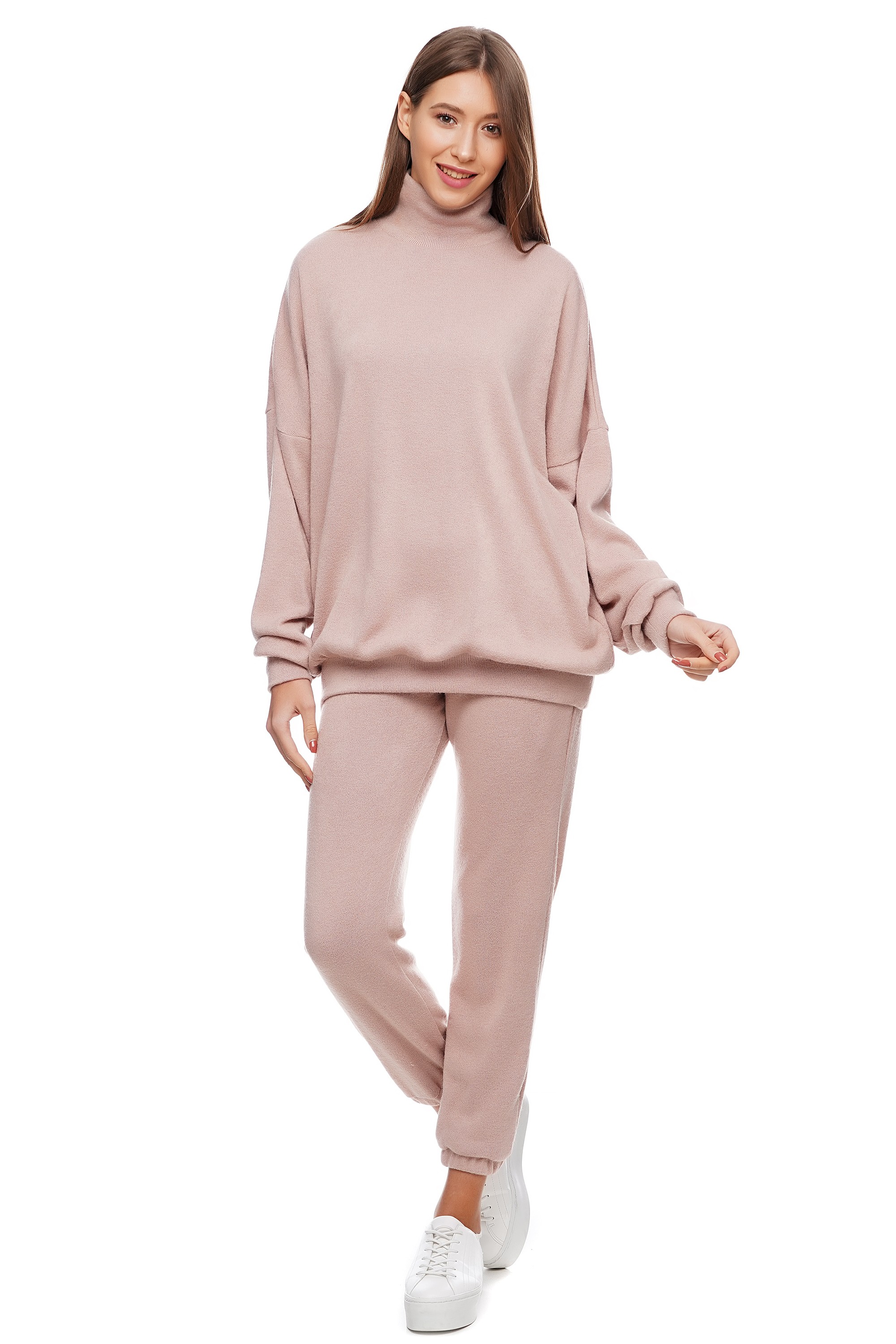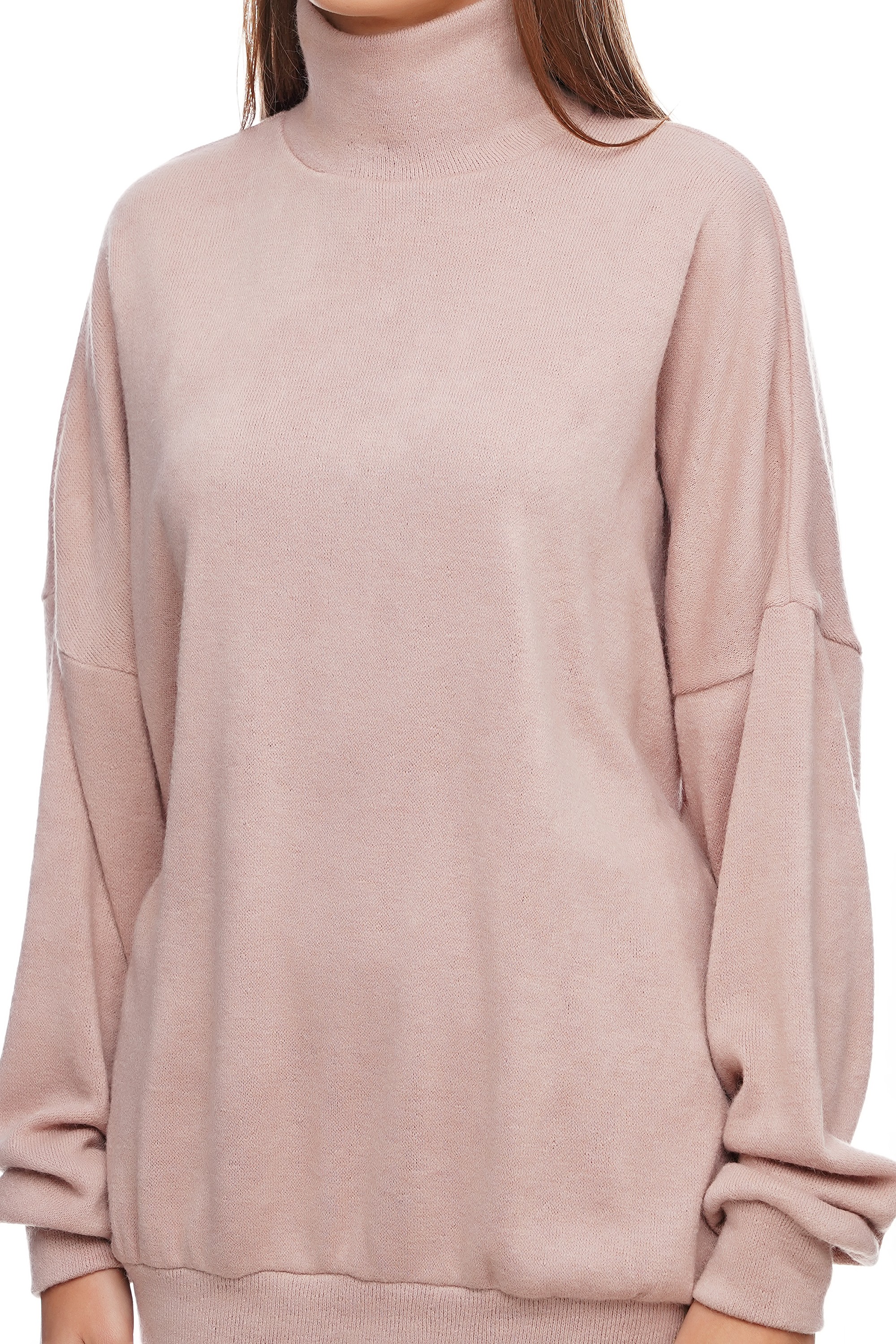 Свитер оверсайз из пудровой ангоры, с манжетом на горловине стойке, рукаве, и по низу изделия. Теплая стильноя модель для повседневной жизни, путешествий и отдыха.