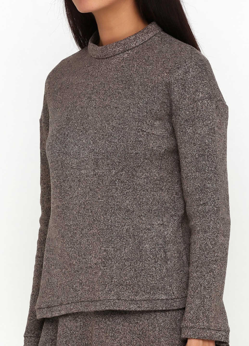 Шерстяной блузон бежево-коричневого цвета свободного силуэта, со спущеным рукавом, с потайной молнией по спинке