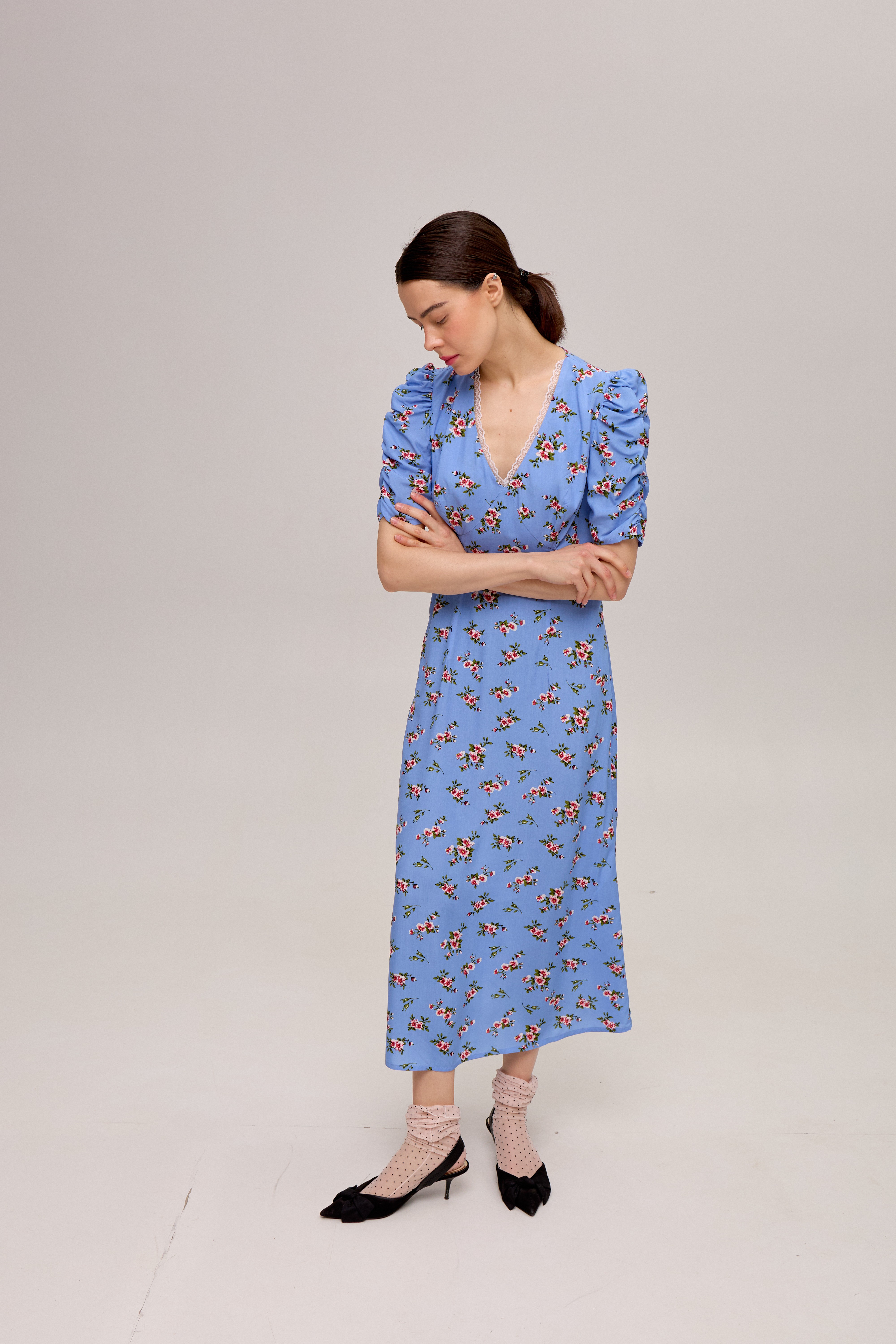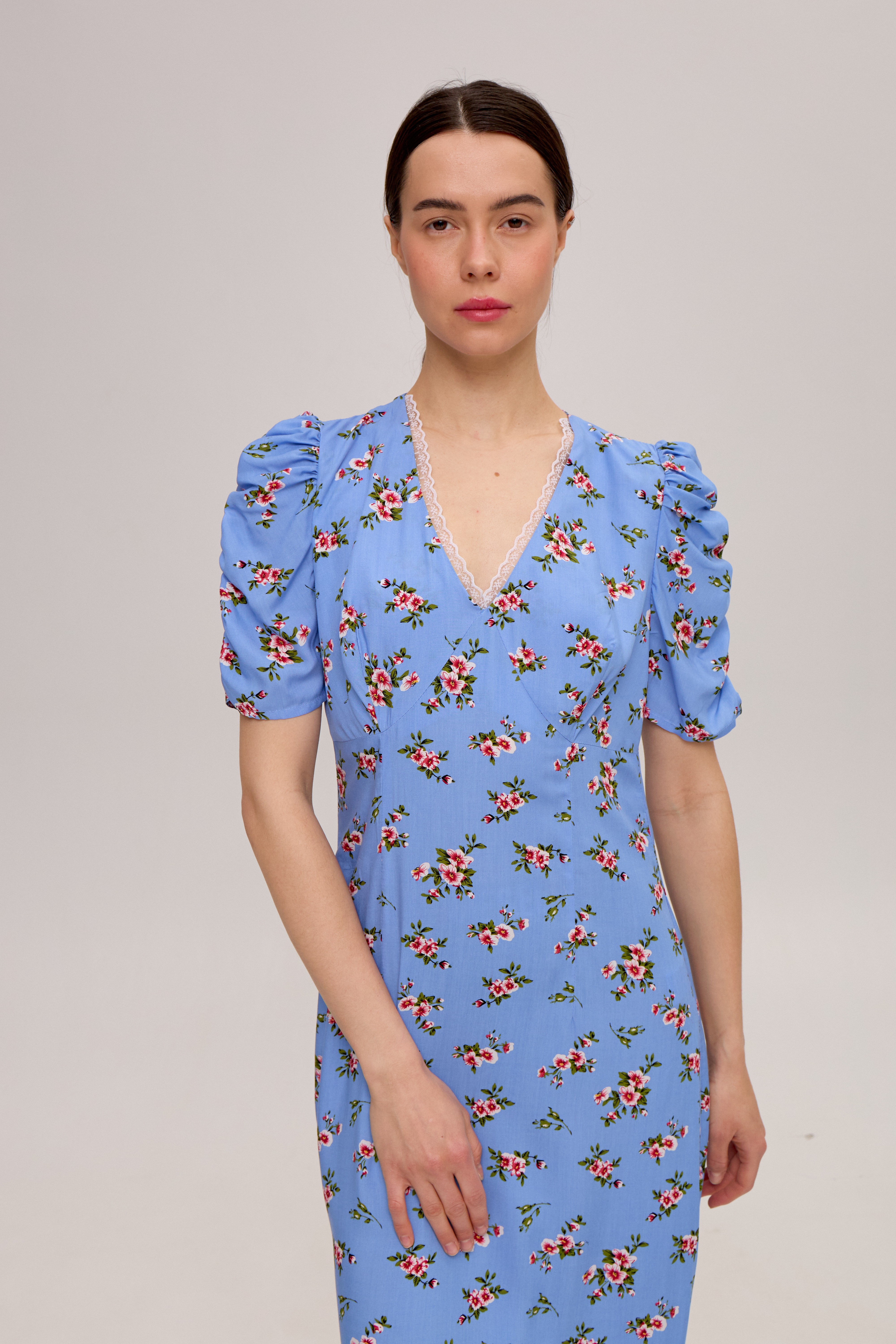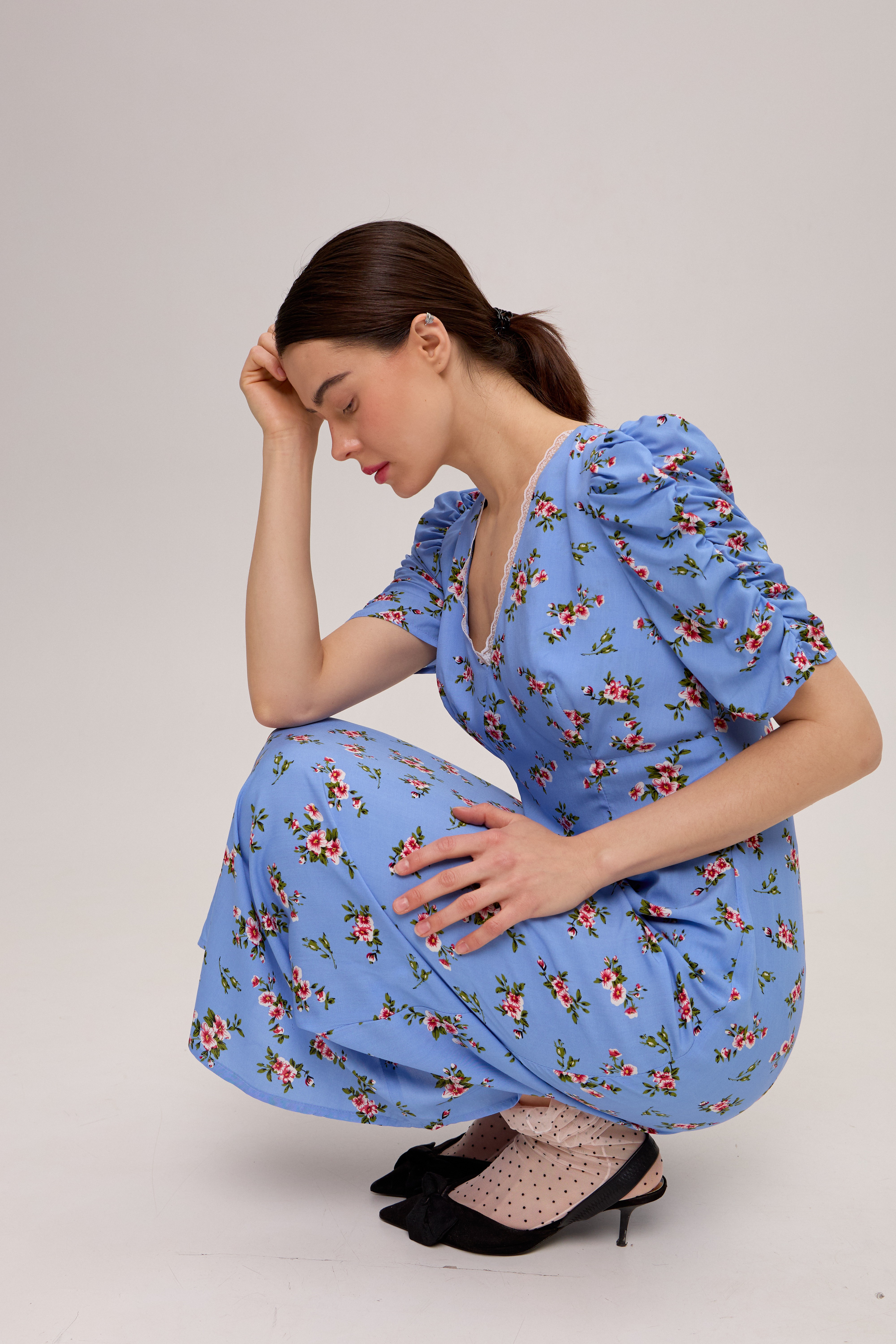 Блакитна сукня в квітковий принт