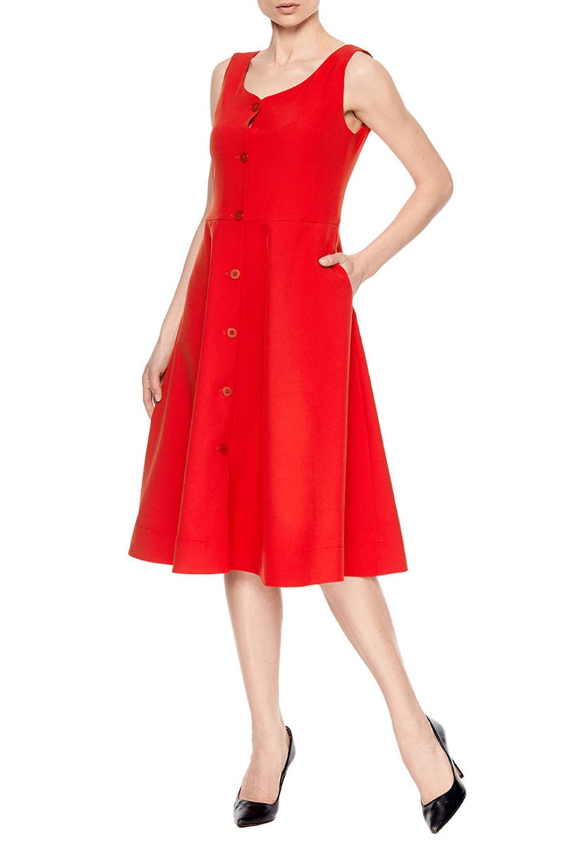 Красное приталенное платье без рукавов с пуговицами по планке и пышной юбкой - это воплощение женственности и кокетства. Благодаря красному цвету платье смотрится невероятно ярко и привлекательно, а приталенный силуэт с пышной юбкой подчеркивает талию и добавляют образу женственности и элегантности. Идеальный вариант для летних прогулок, свиданий и праздничных мероприятий. Благодаря своему крою и цвету данная модель очень универсальна, наденьте ее как самостоятельную единицу или же комбинируйте с рубашками, блузами, футболками, создавая выигрышные по случаю образы.