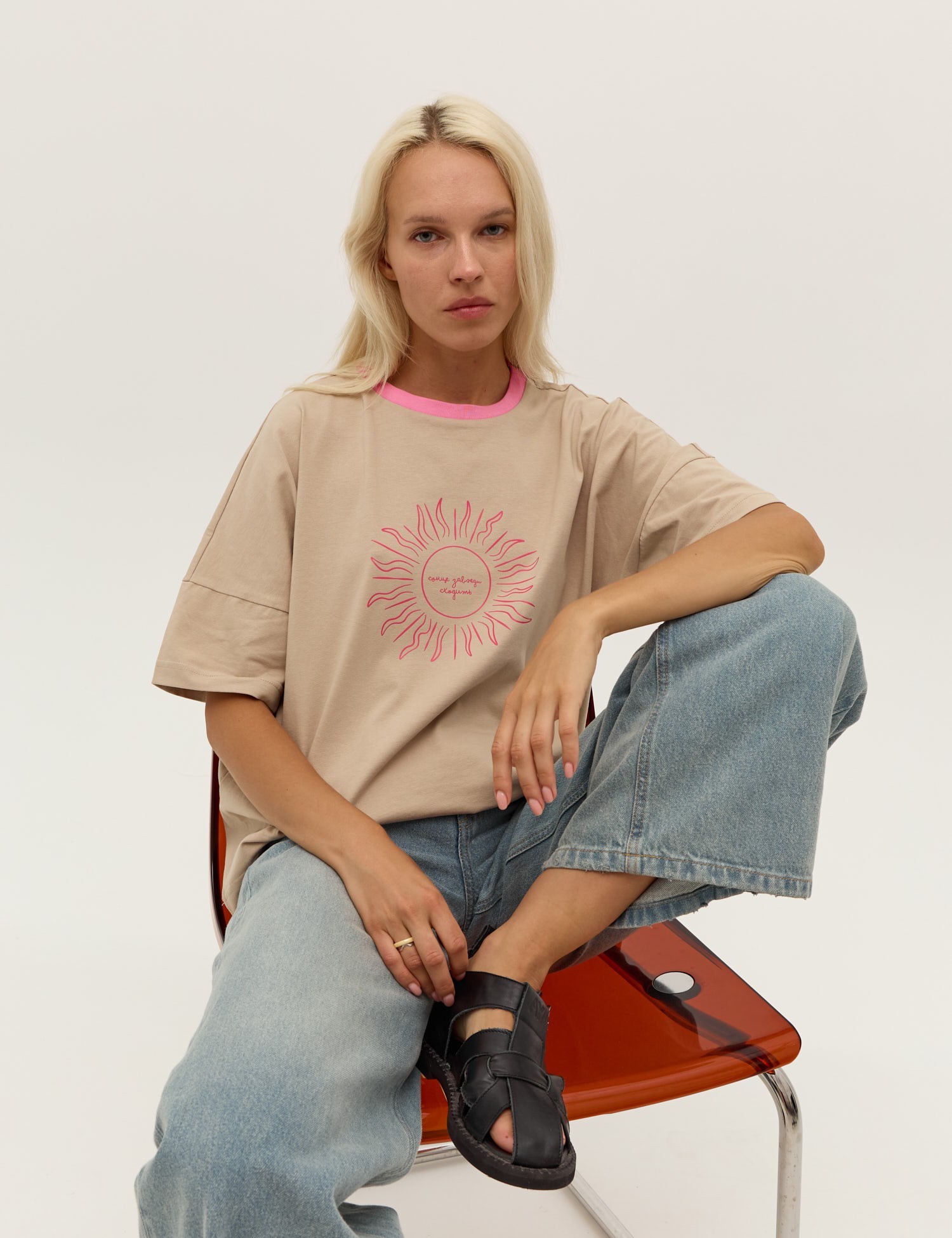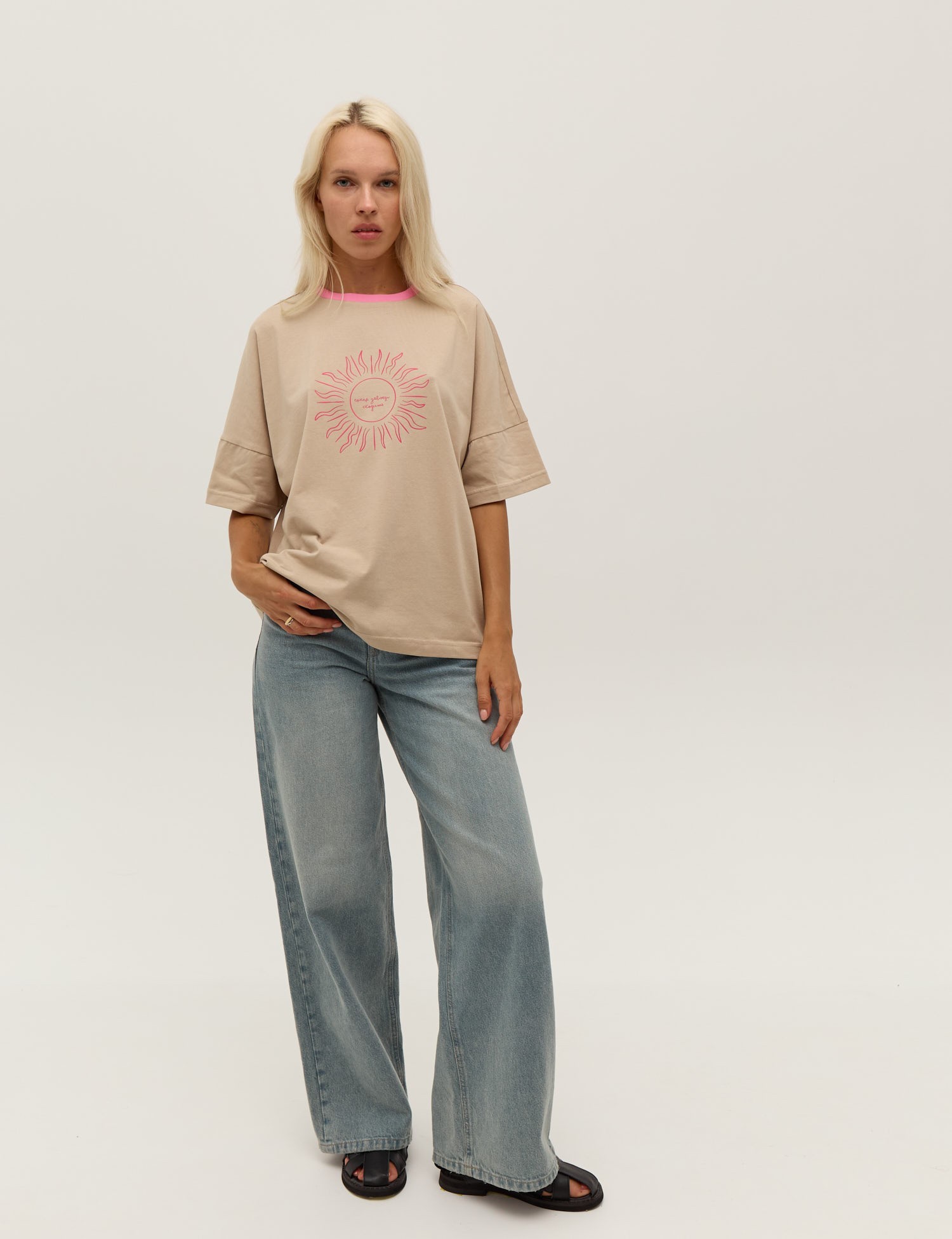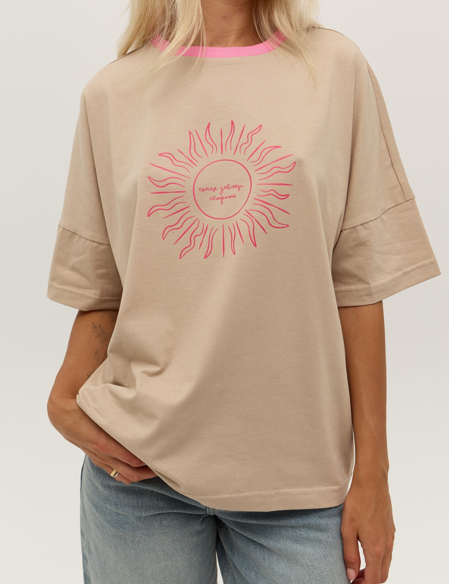 Бежева футболка зі спущеним рукавом