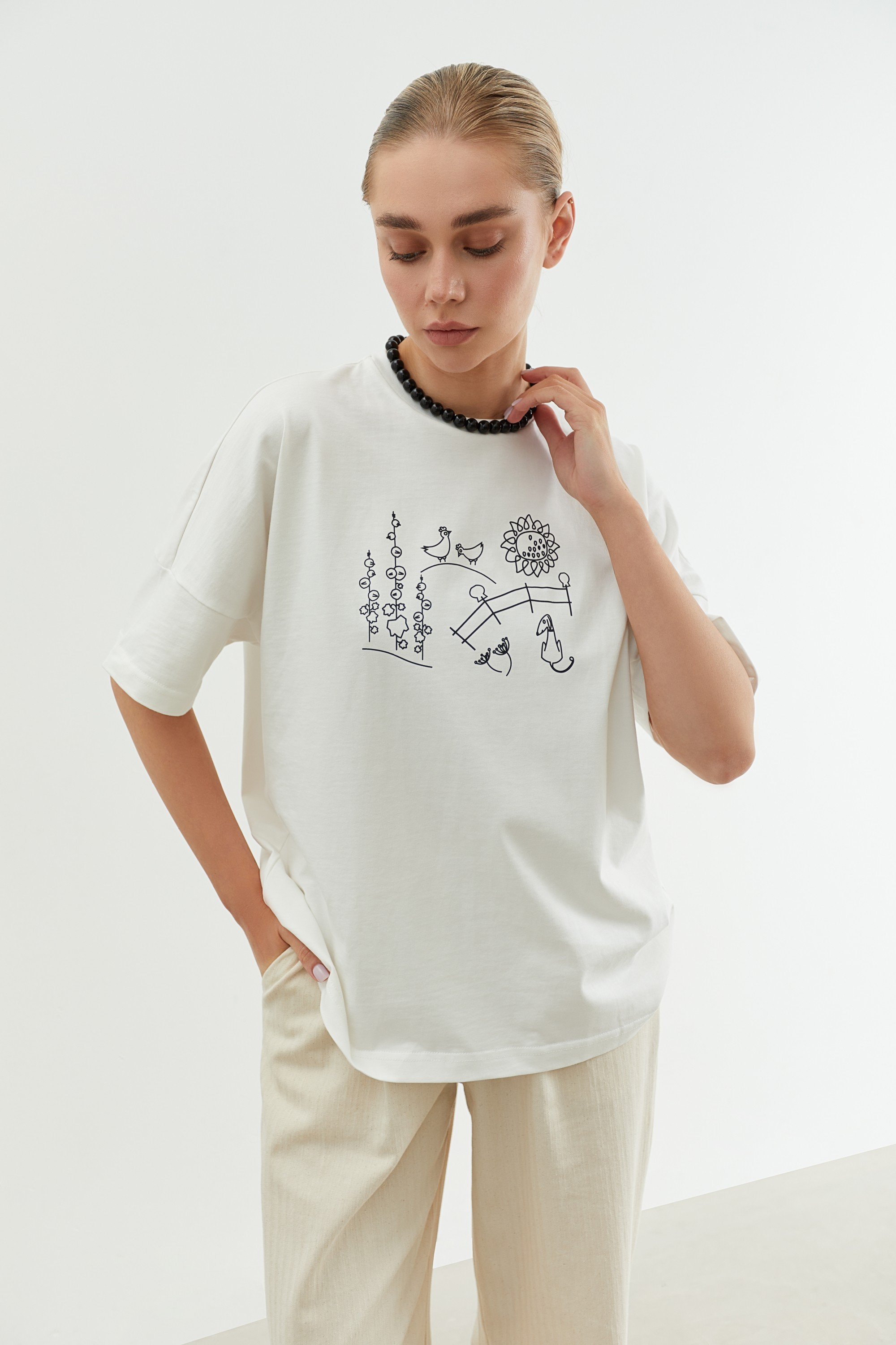 Біла футболка зі спущеним рукавом