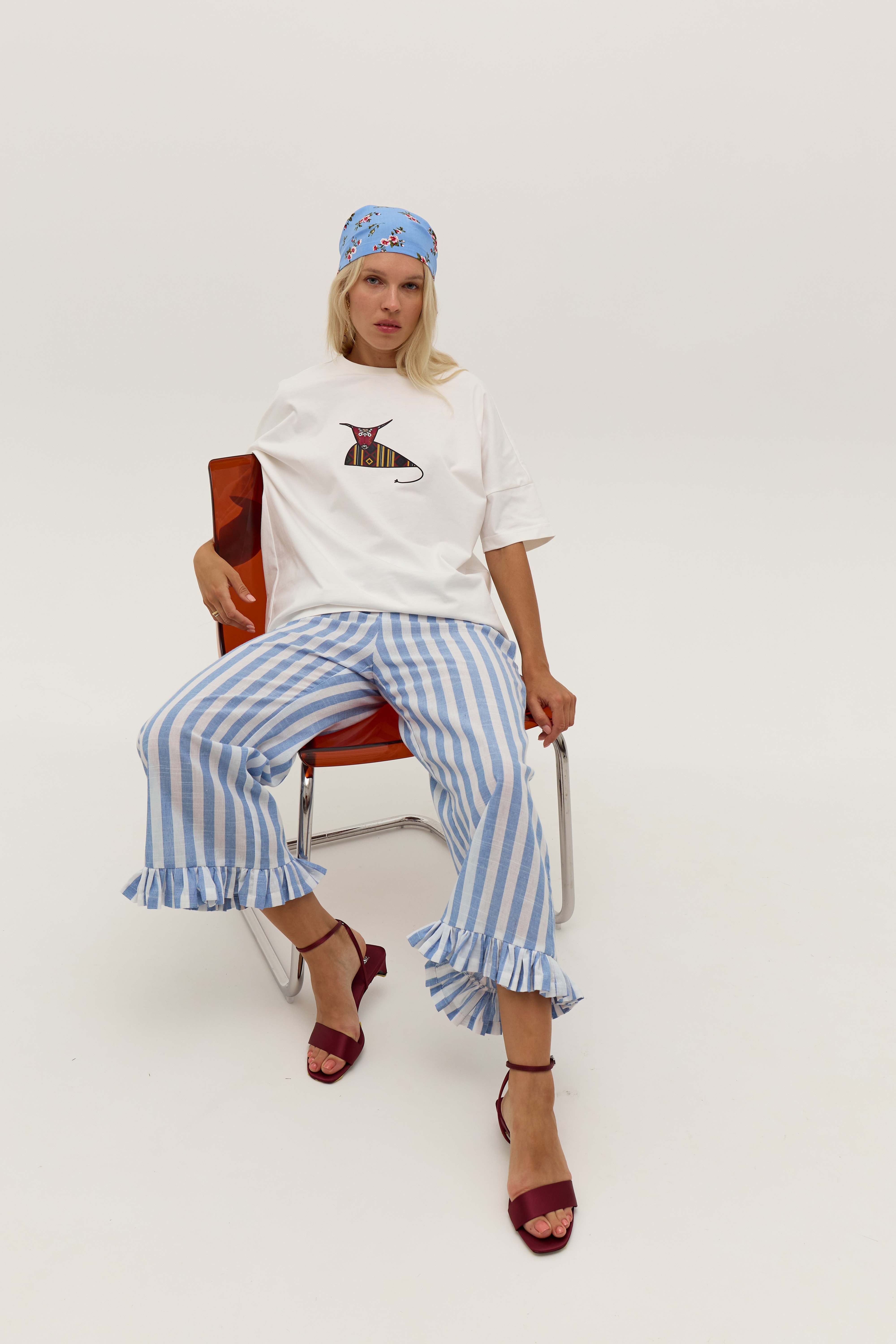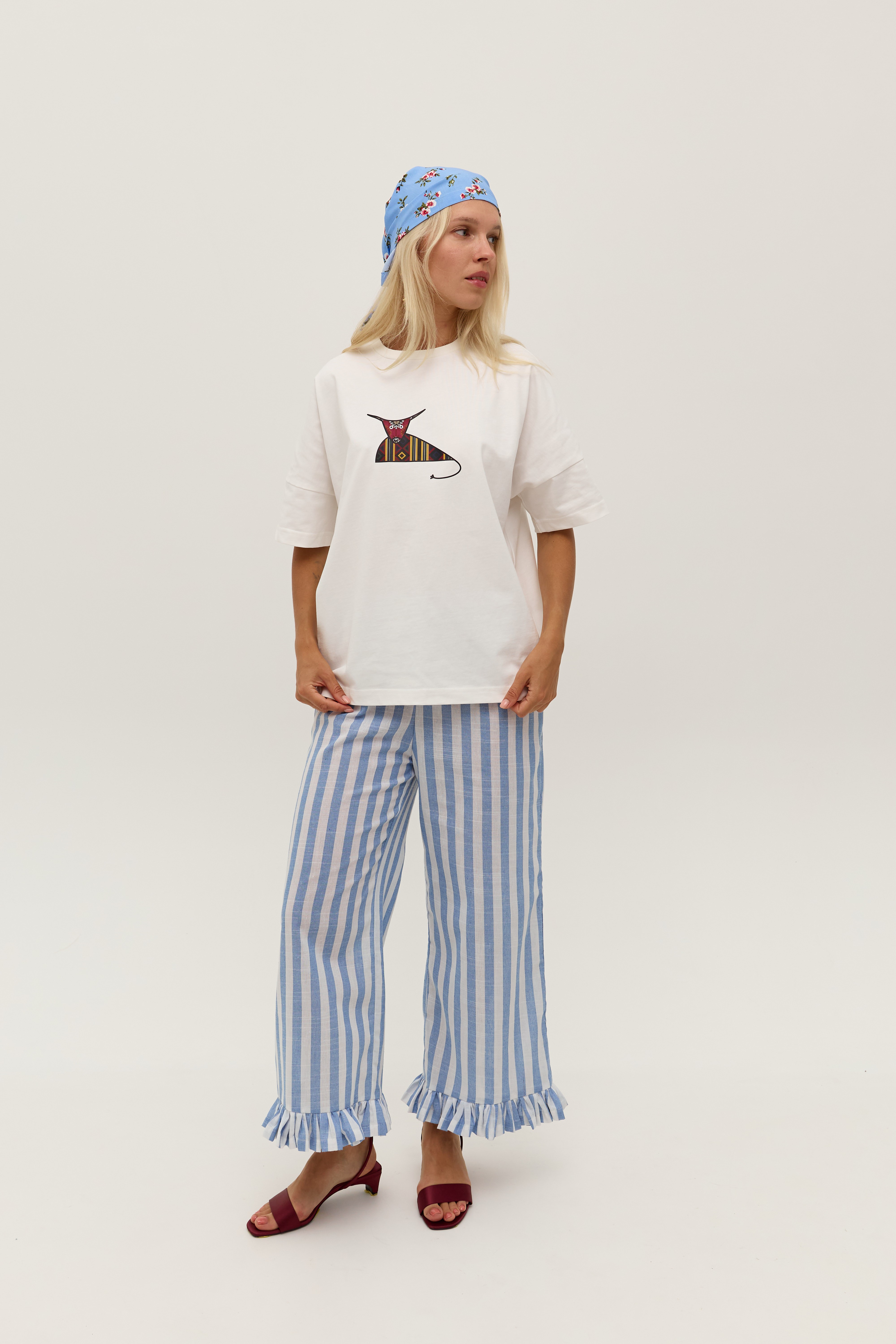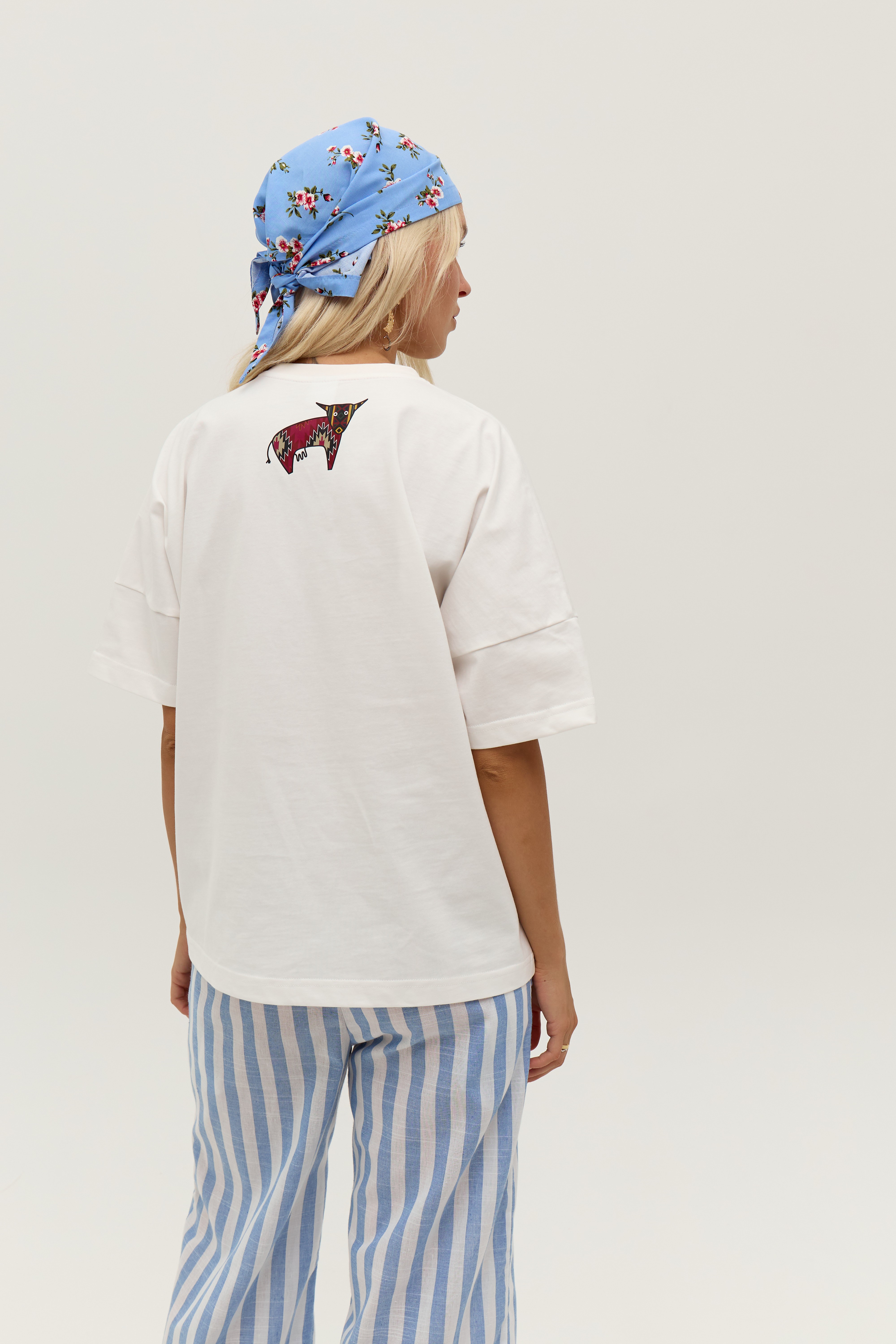 Біла футболка зі спущеним рукавом та друком