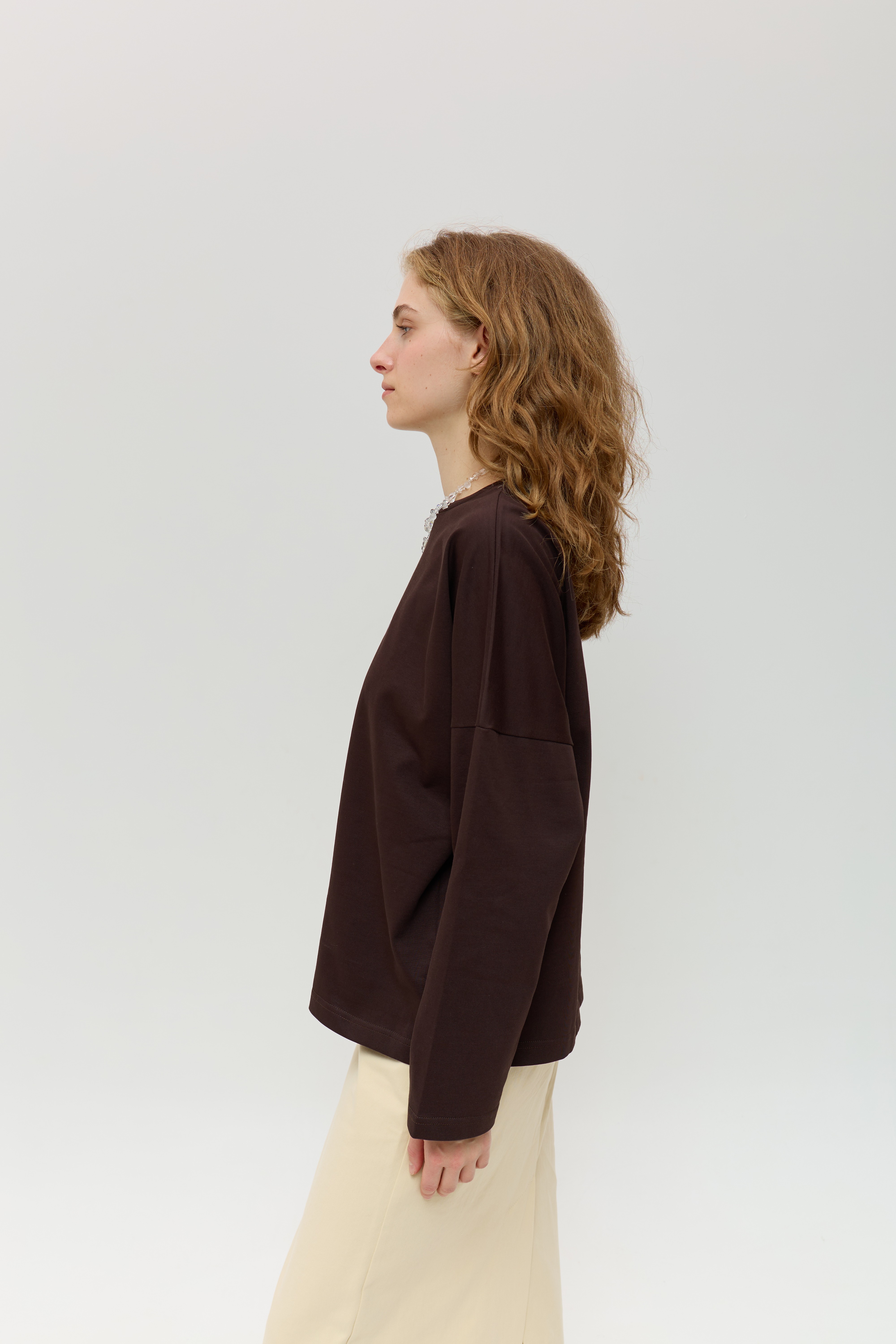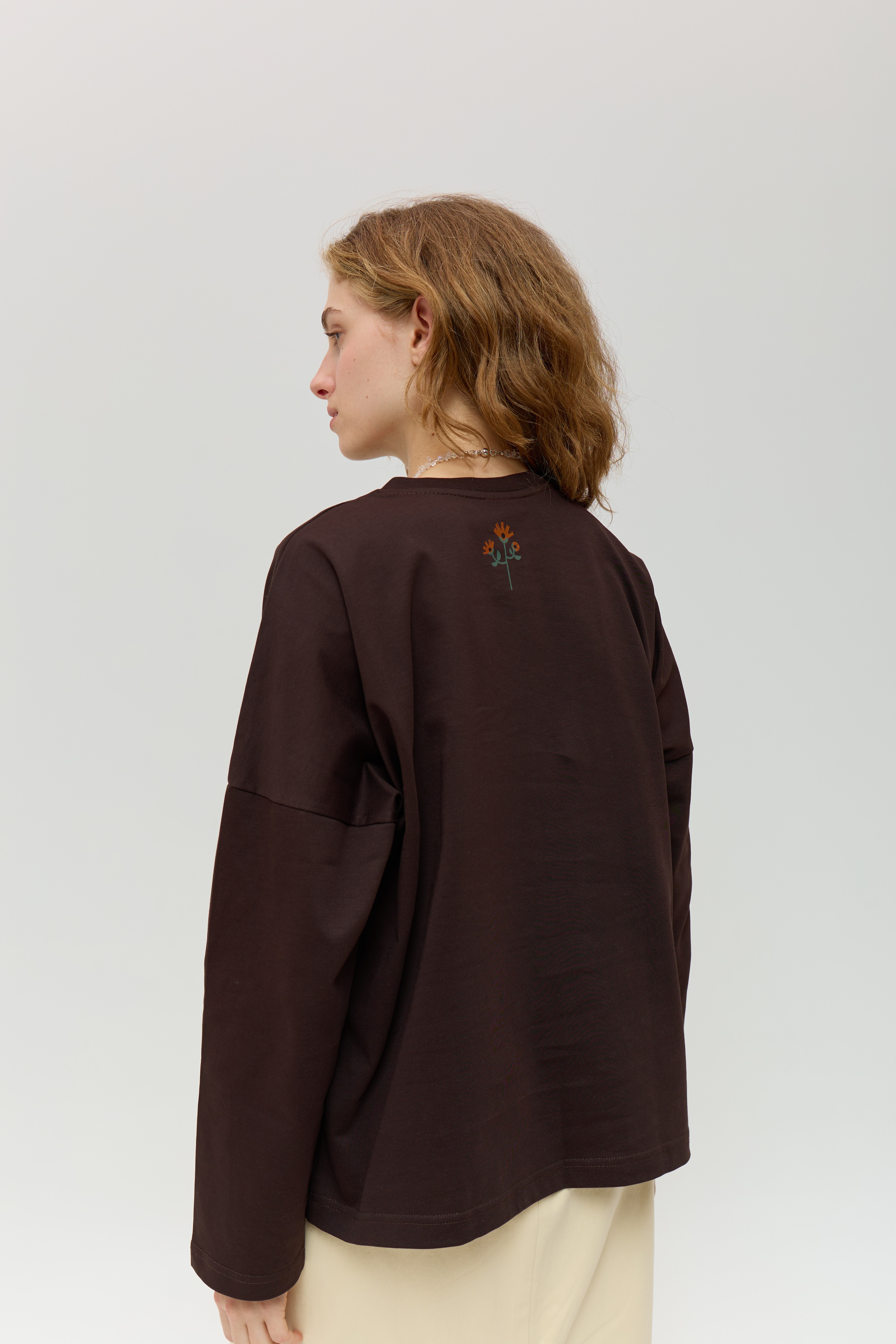 Коричневий лонгслів зі спущеним рукавом