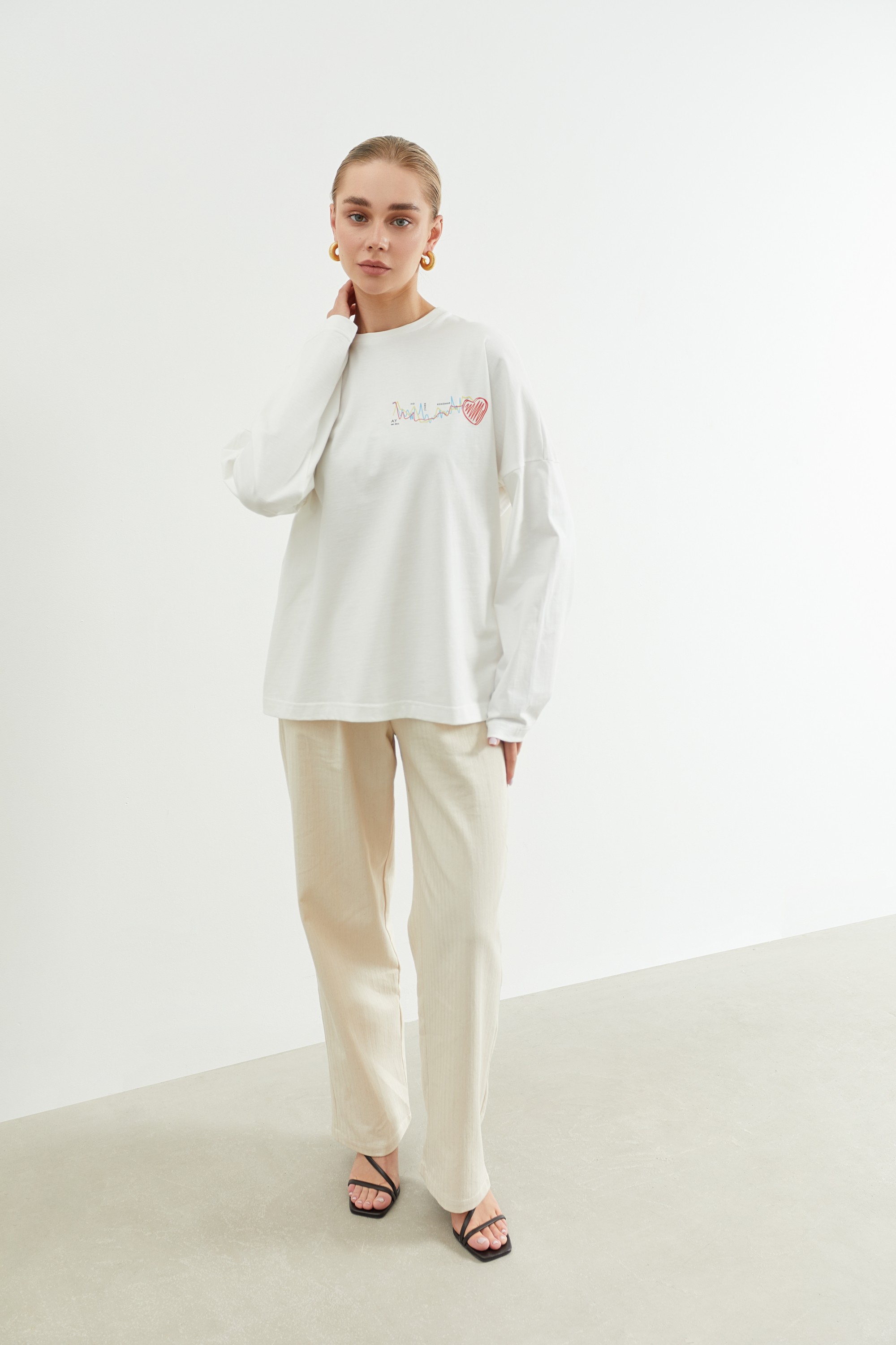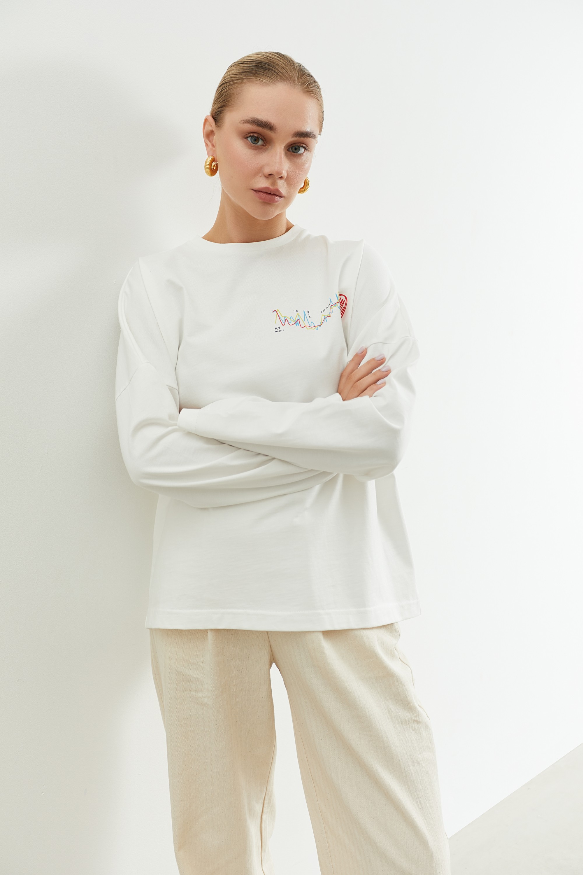 Молочний лонгслів з друком