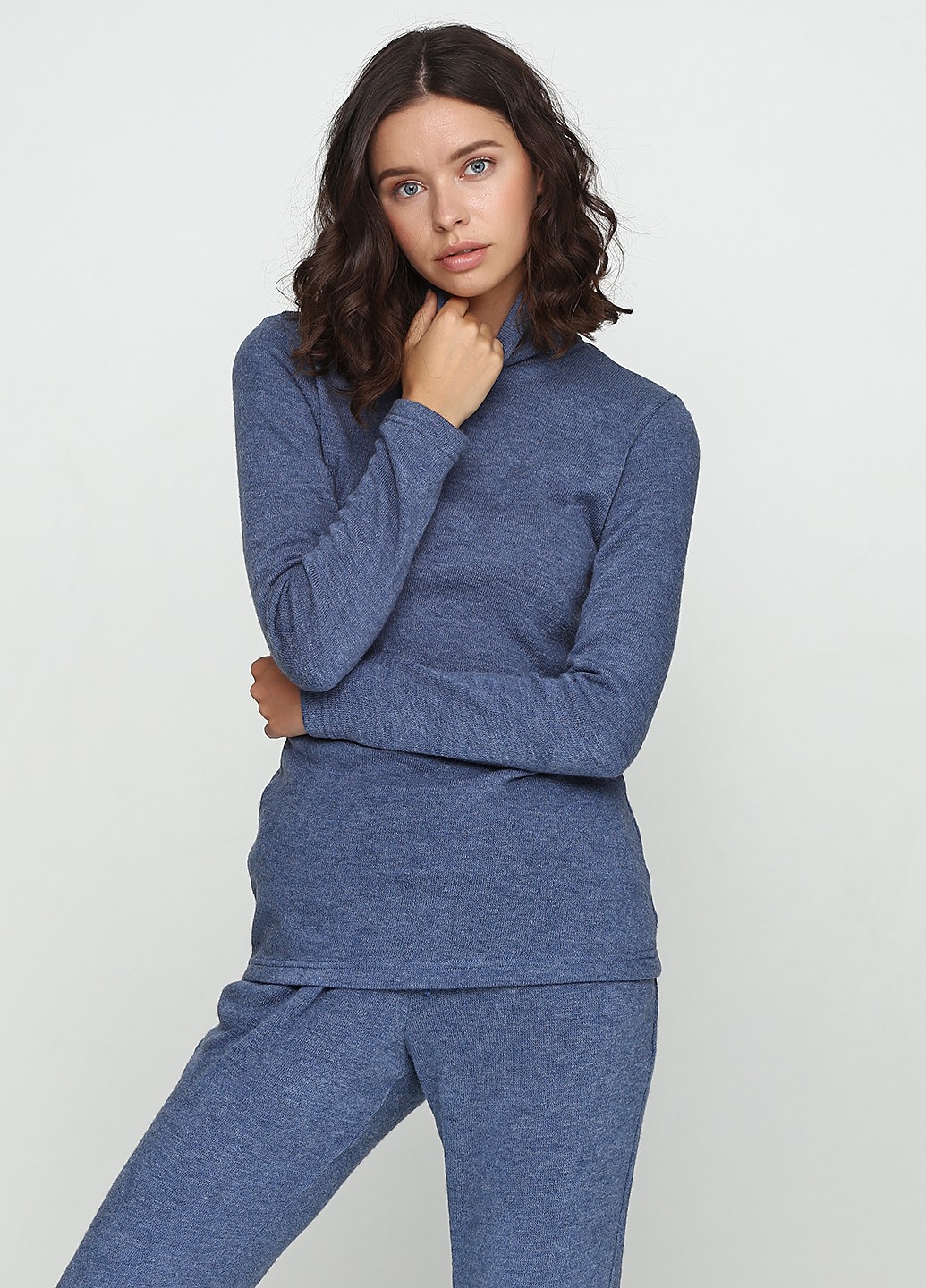 Ангоровый гольф серо-голубого цвета приталенного силуэта со стойкой и длинным втачным рукавом на манжете. Базовая деталь гардероба. Есть в разных цветах и из разных тканей.