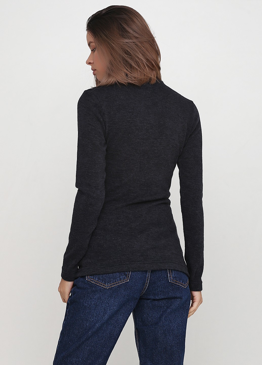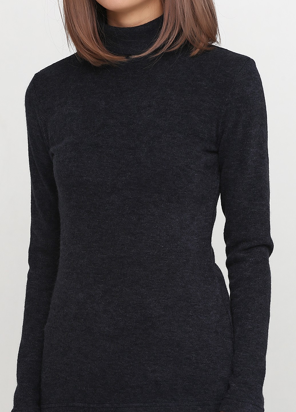 Ангоровый гольф синего цвета приталенного силуэта со стойкой и длинным втачным рукавом на манжете. Базовая деталь гардероба. Есть в разных цветах и из разных тканей.
