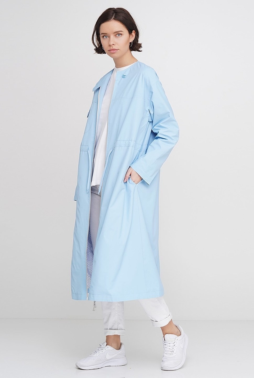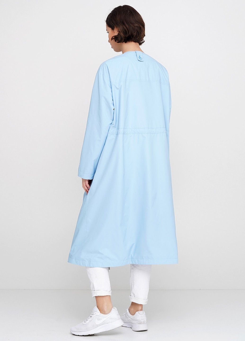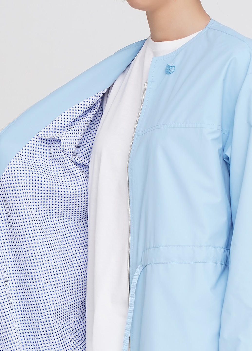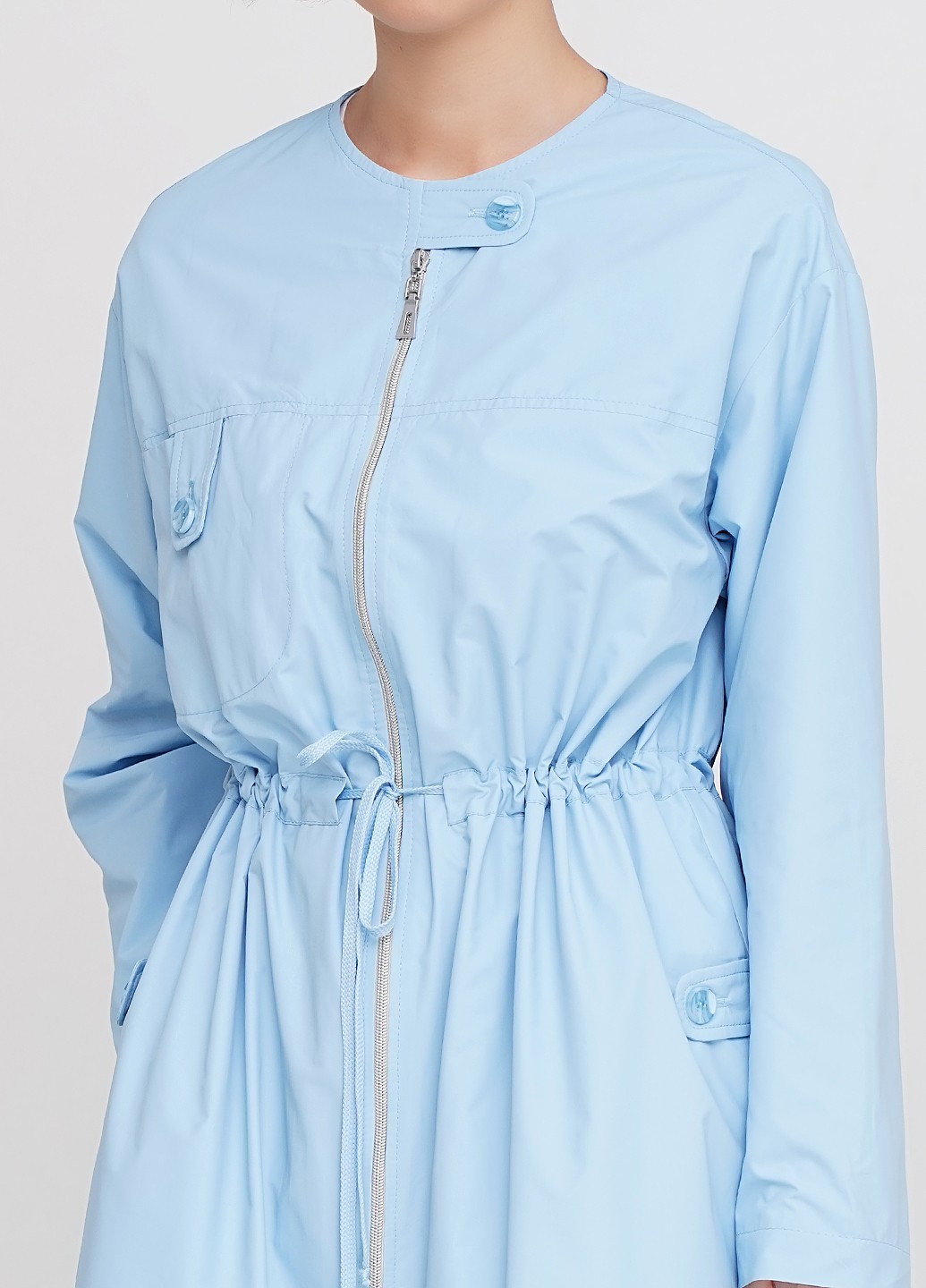Яркое весеннее голубое платье-парка из плащевой ткани на хлопковой подкладе. Двухсторонняя молния делает модель еще более практичной и удобной, кулиска по талии, в боковых швах карманы, на груди накладной карман.