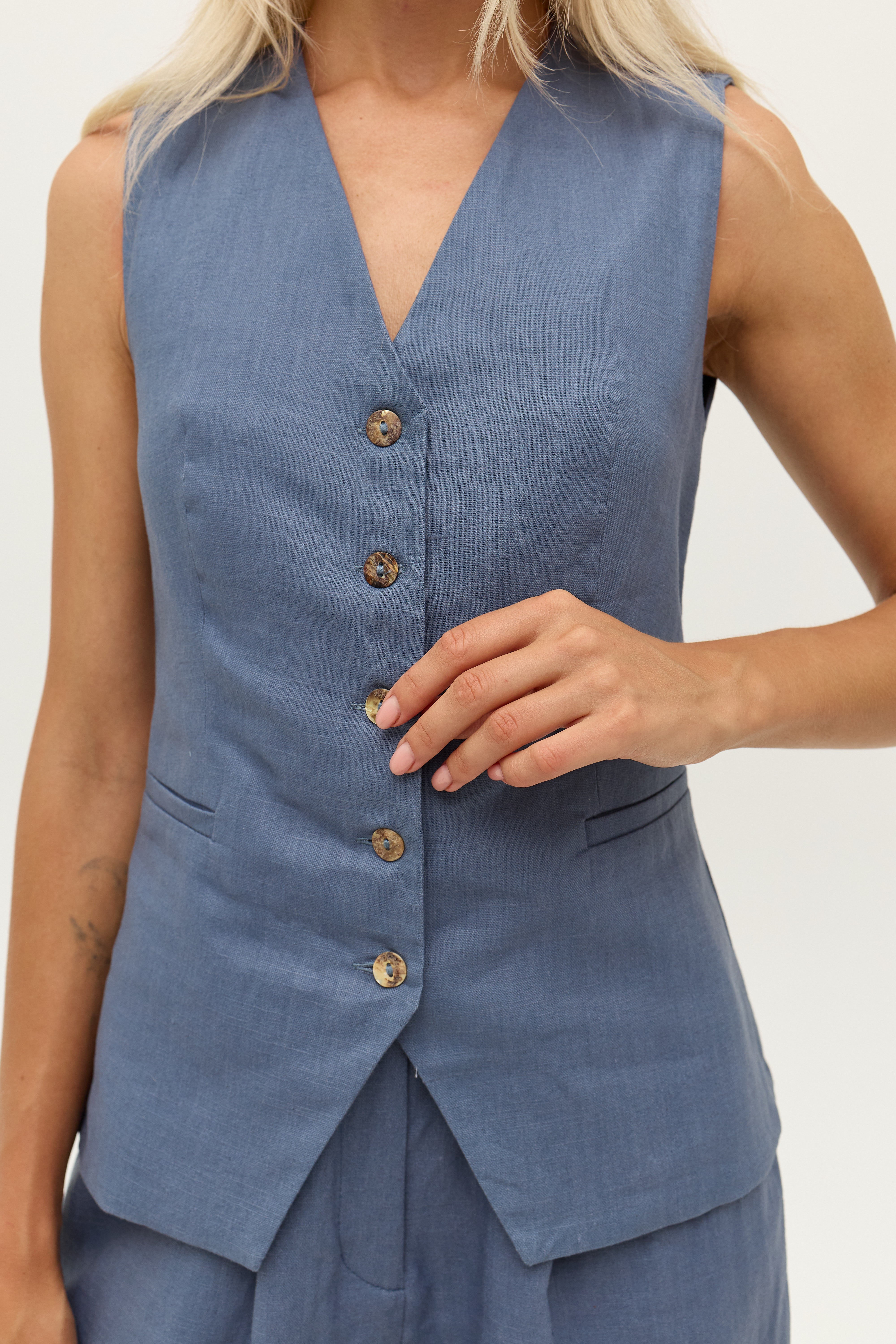 Синій лляній жилет