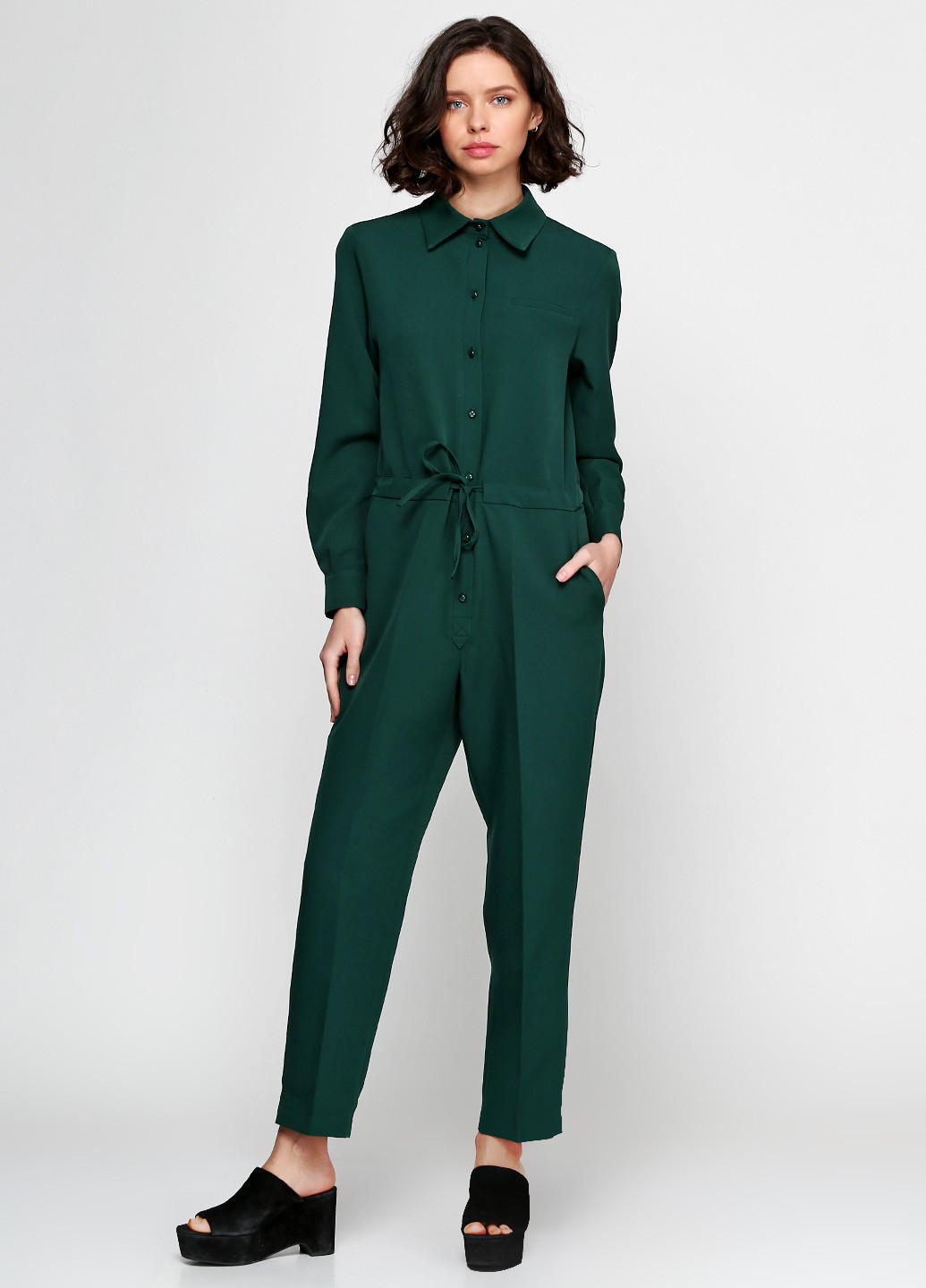 Смарагдовий комбінезон із костюмної тканини