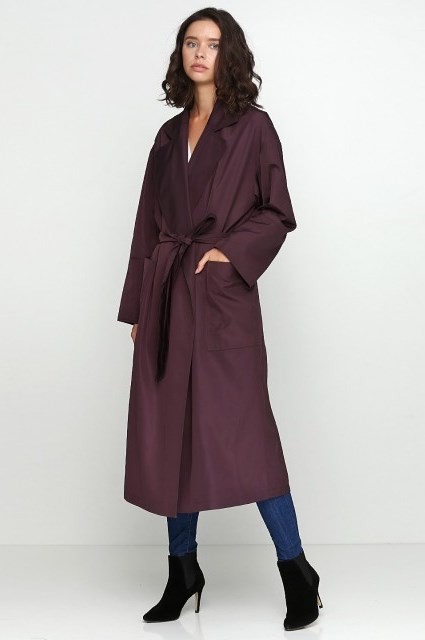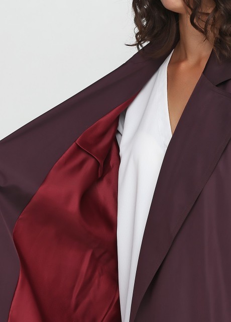Довгий плащ оверсайз на запах під пояс глибокого фіолетового кольору. Об'ємний комір, вільний рукав зі спущеним плечем, з широким манжетом. Накладні кишені прямокутної форми, розріз ззаду. Підклади з бавовни. Стильний, зручний і практичний у носінні плащ - доповнить будь-який образ і привертатиме увагу своїм цікавим кольором.