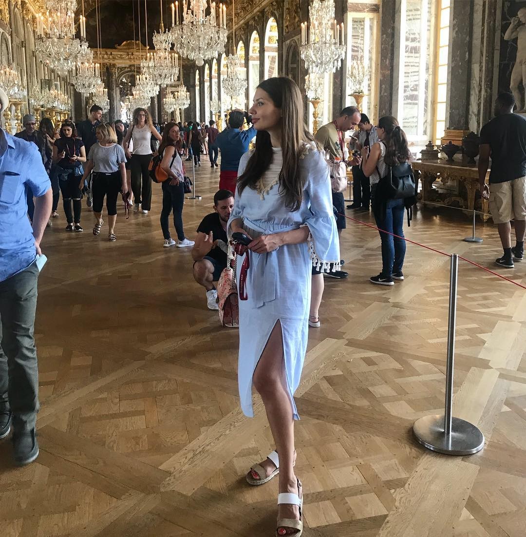 Украинская актриса и телеведущая в платье голубого цвета от ANNA YAKOVENKO