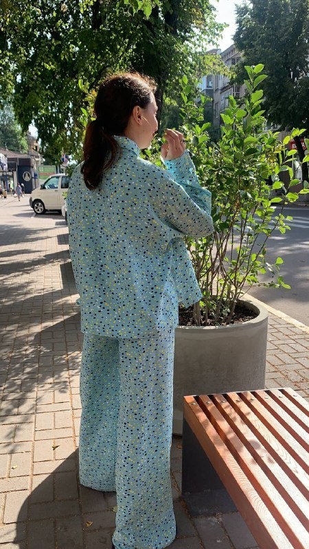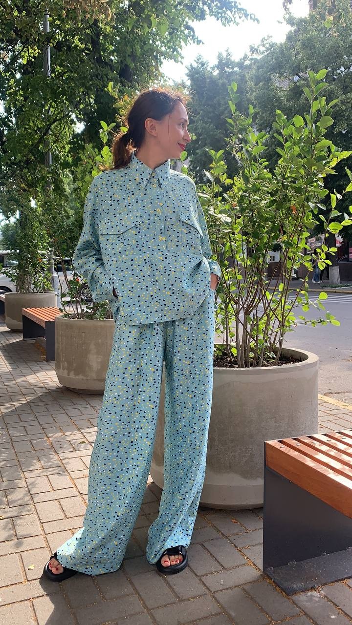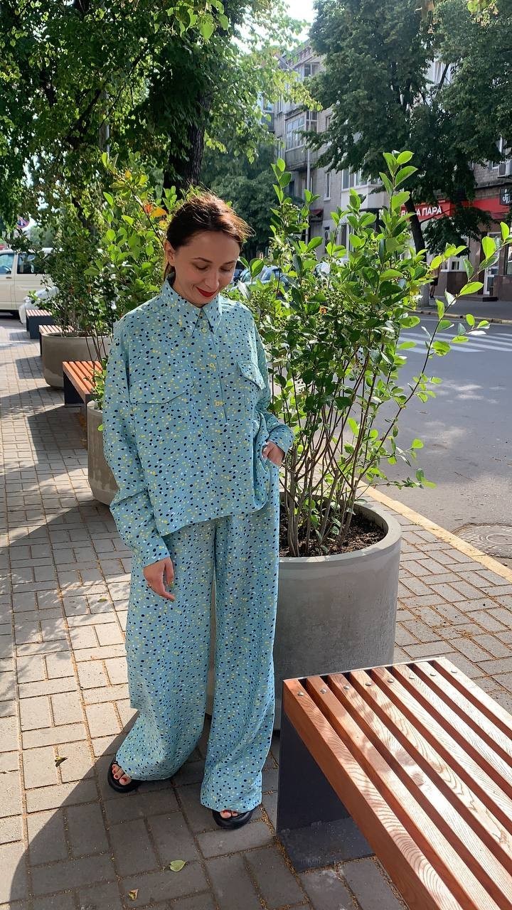 яскравий костюм з сорочкою і вільними брюками на резинці
