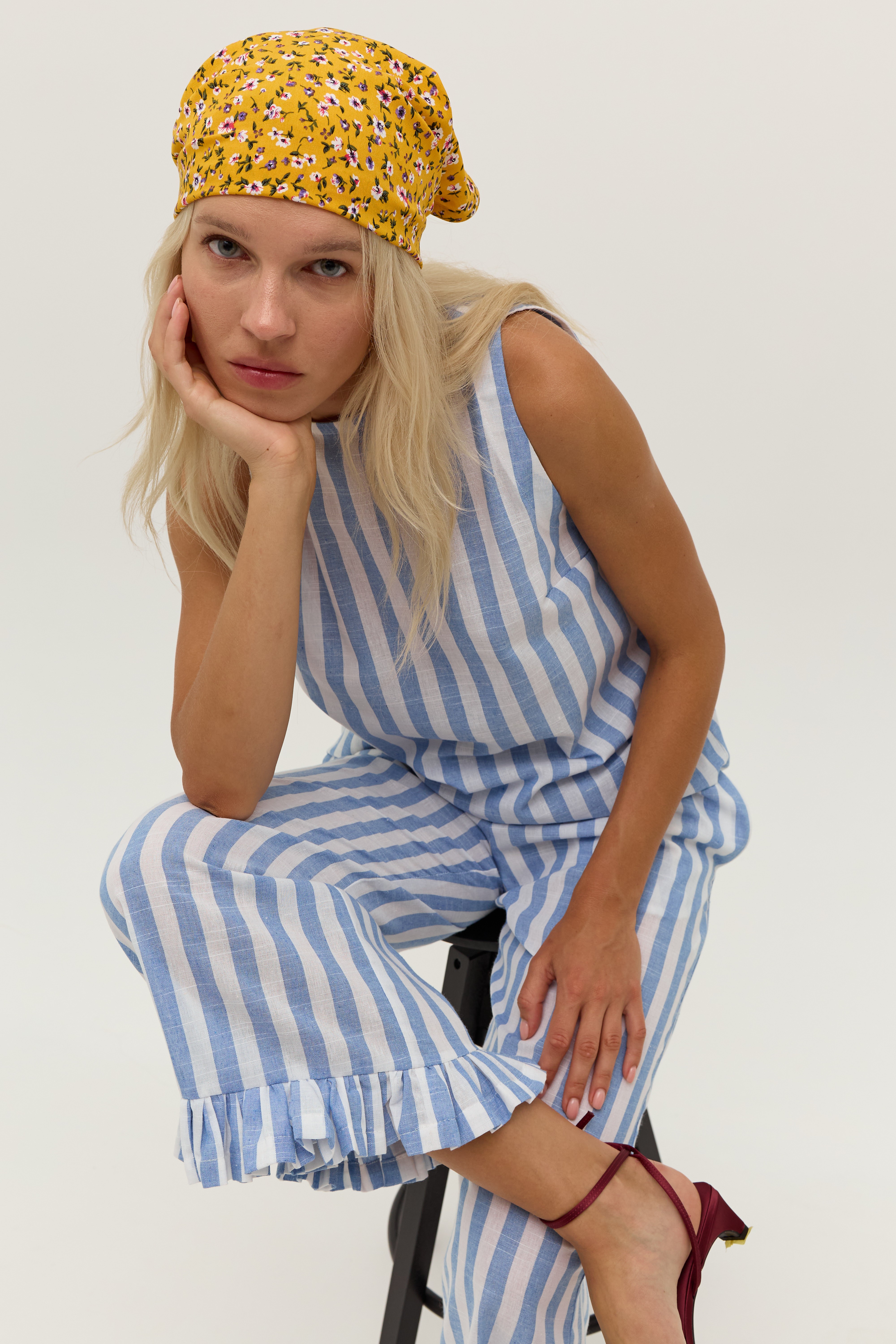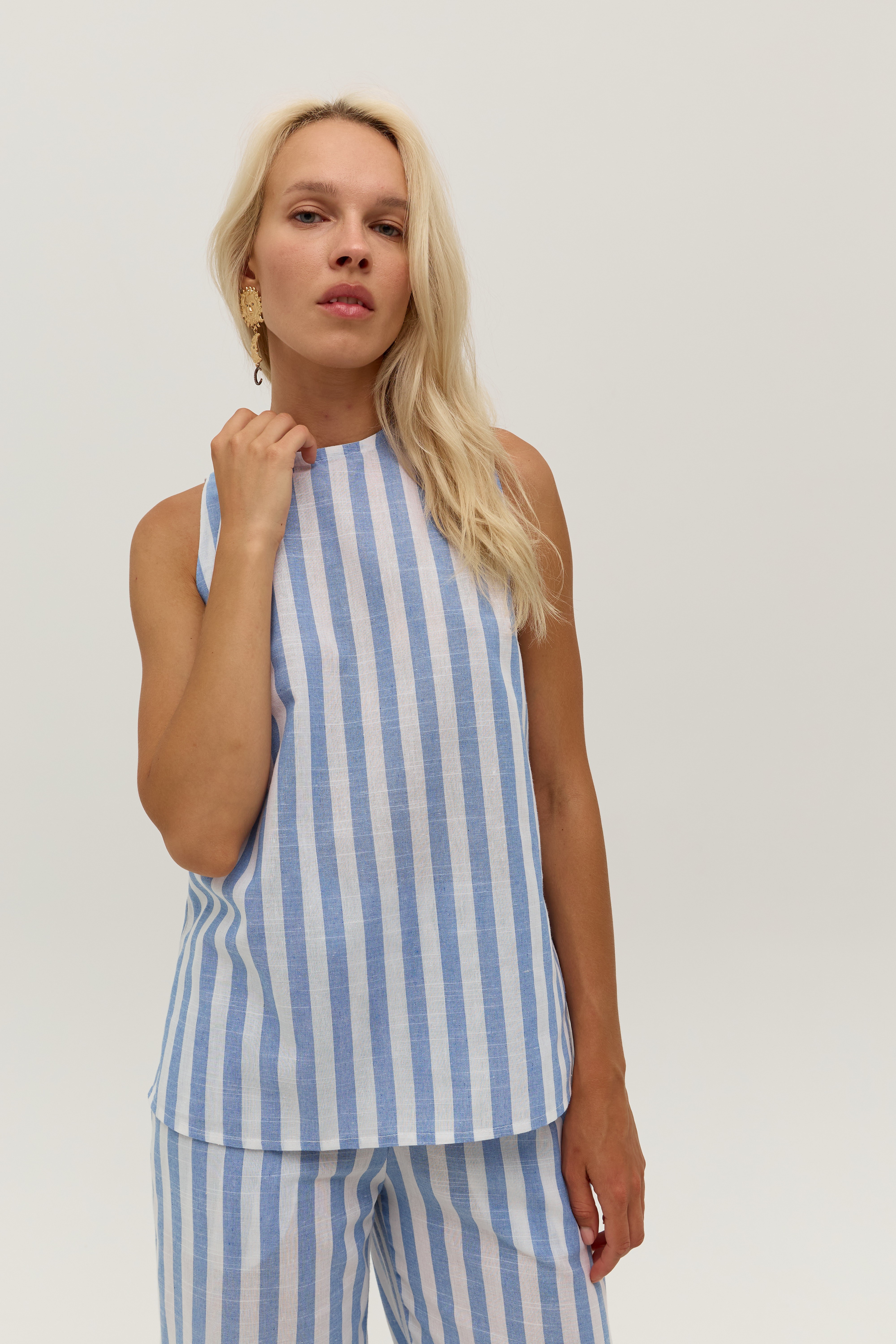 Блуза у біло-блакитну смужку