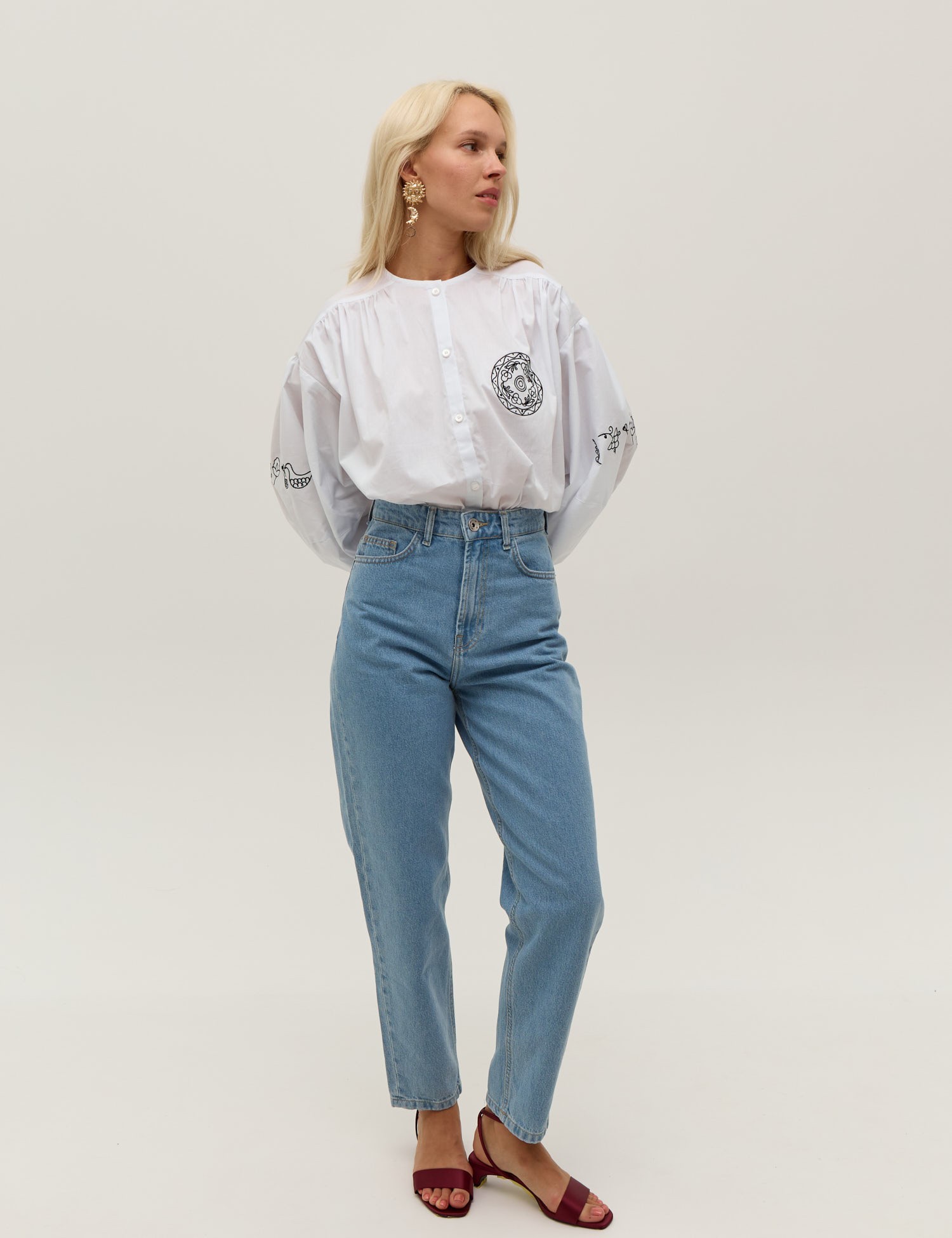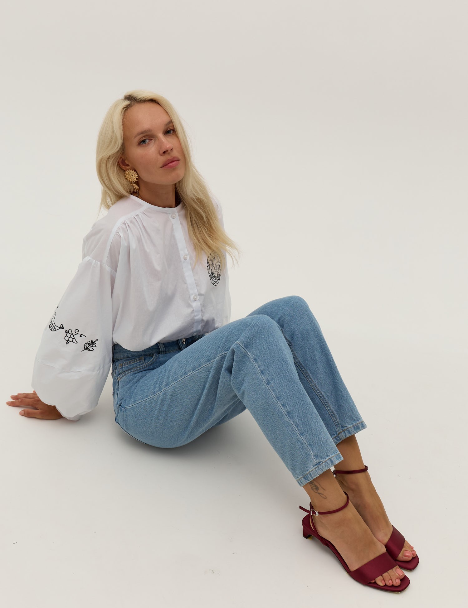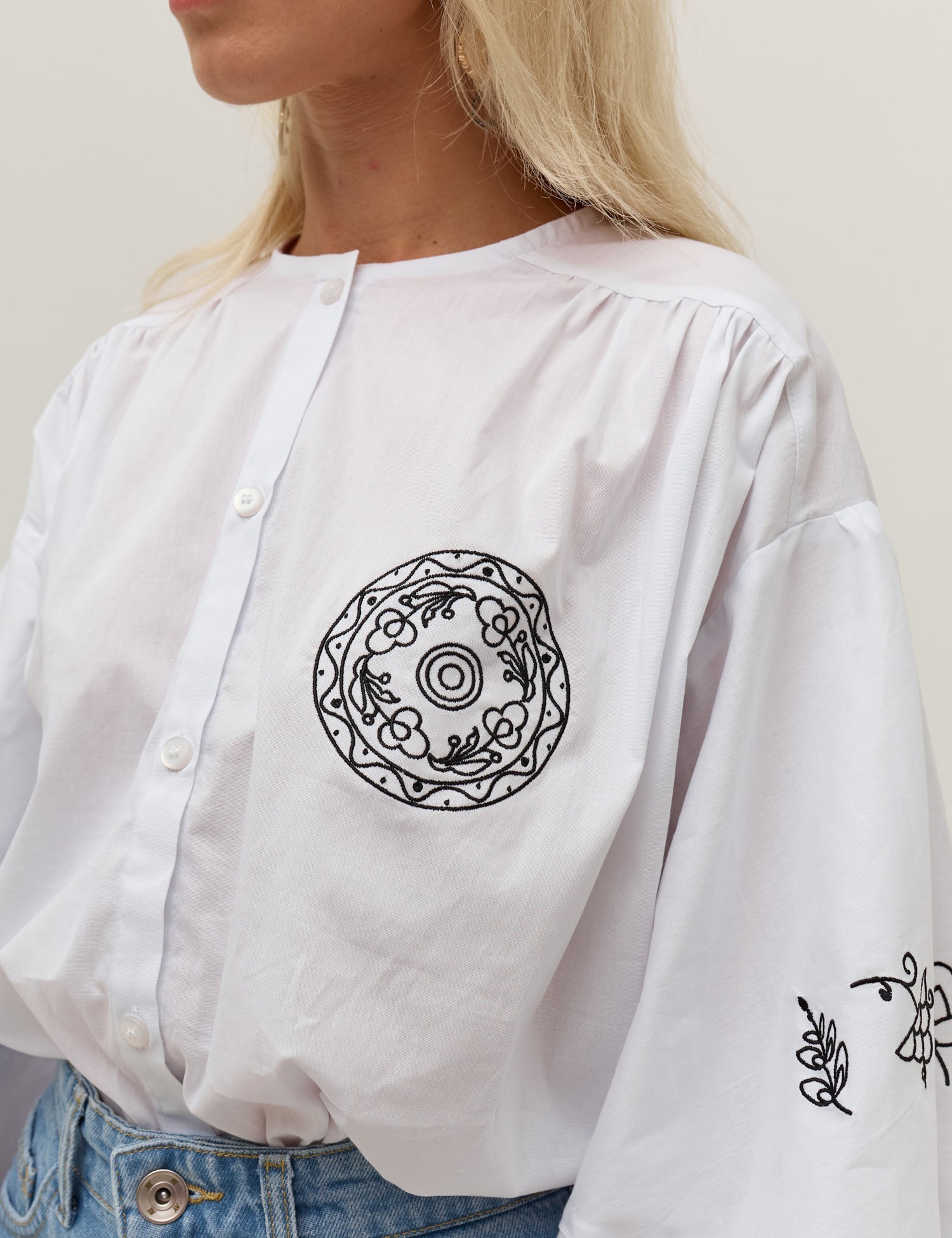 Вишита блуза виконана з бавовни білого кольору, на гудзиках.