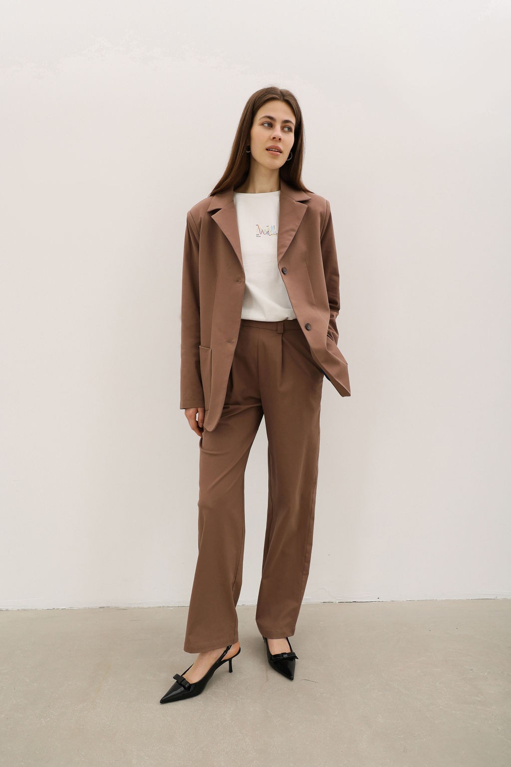 Коричневі вкоречені брюки