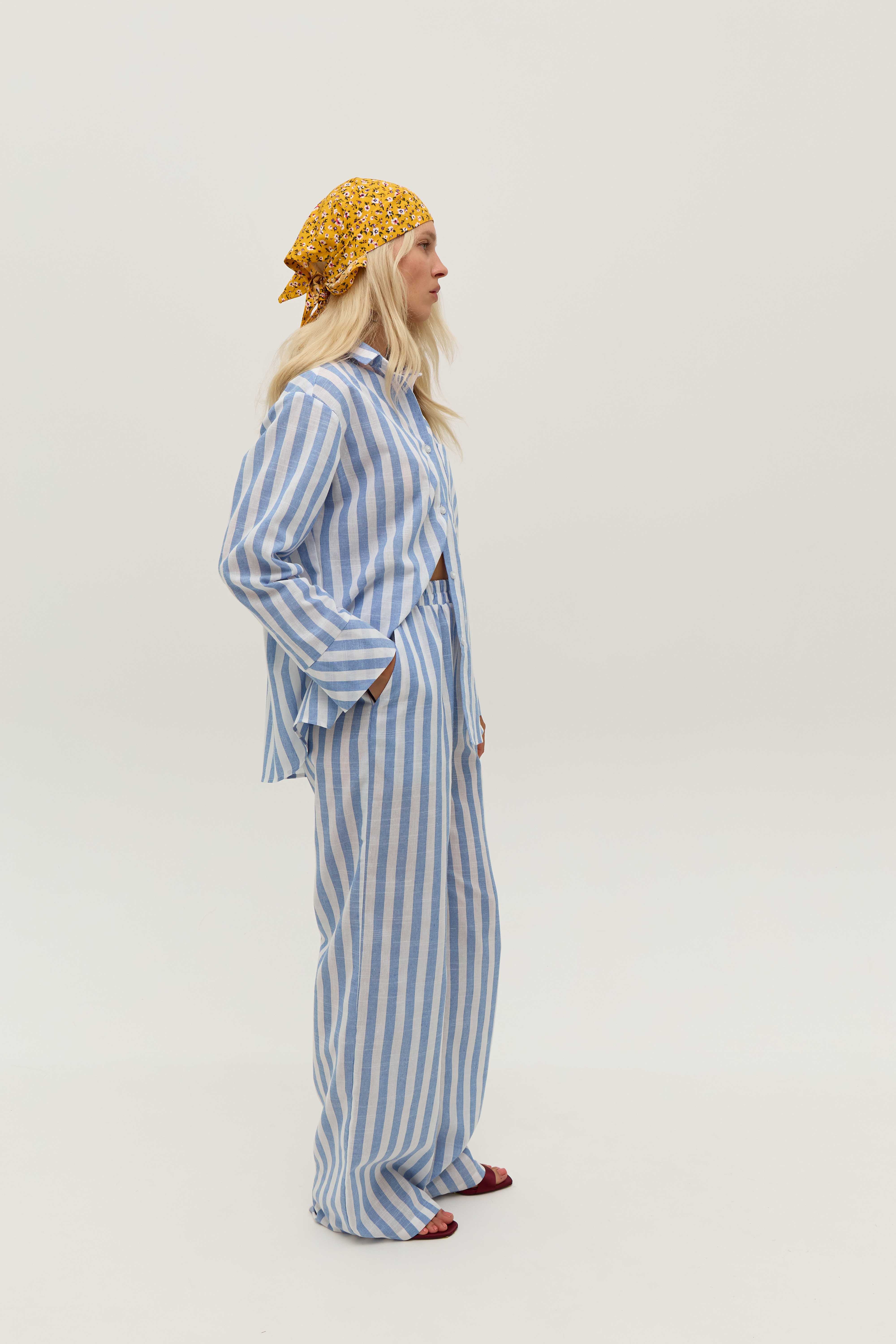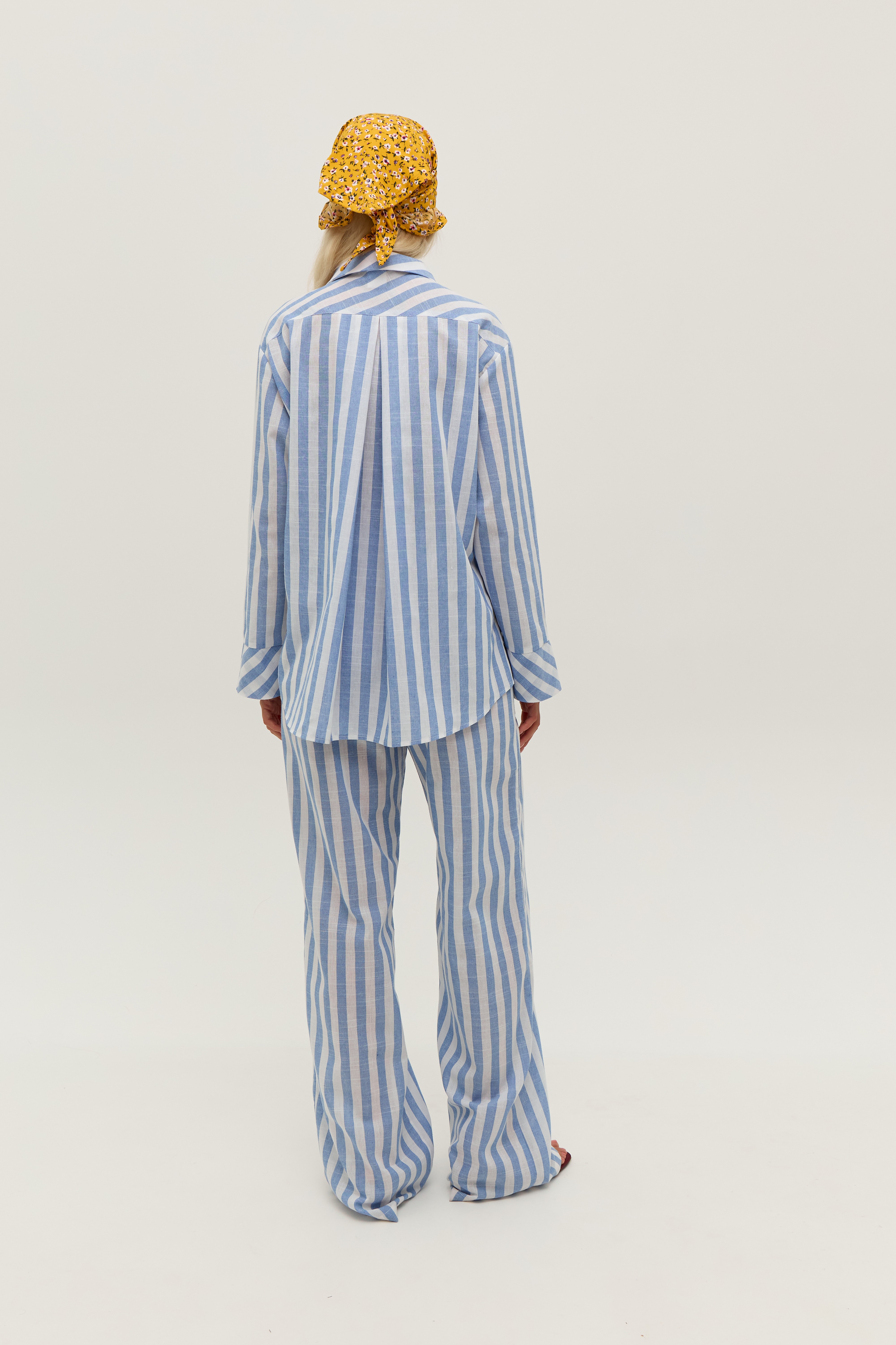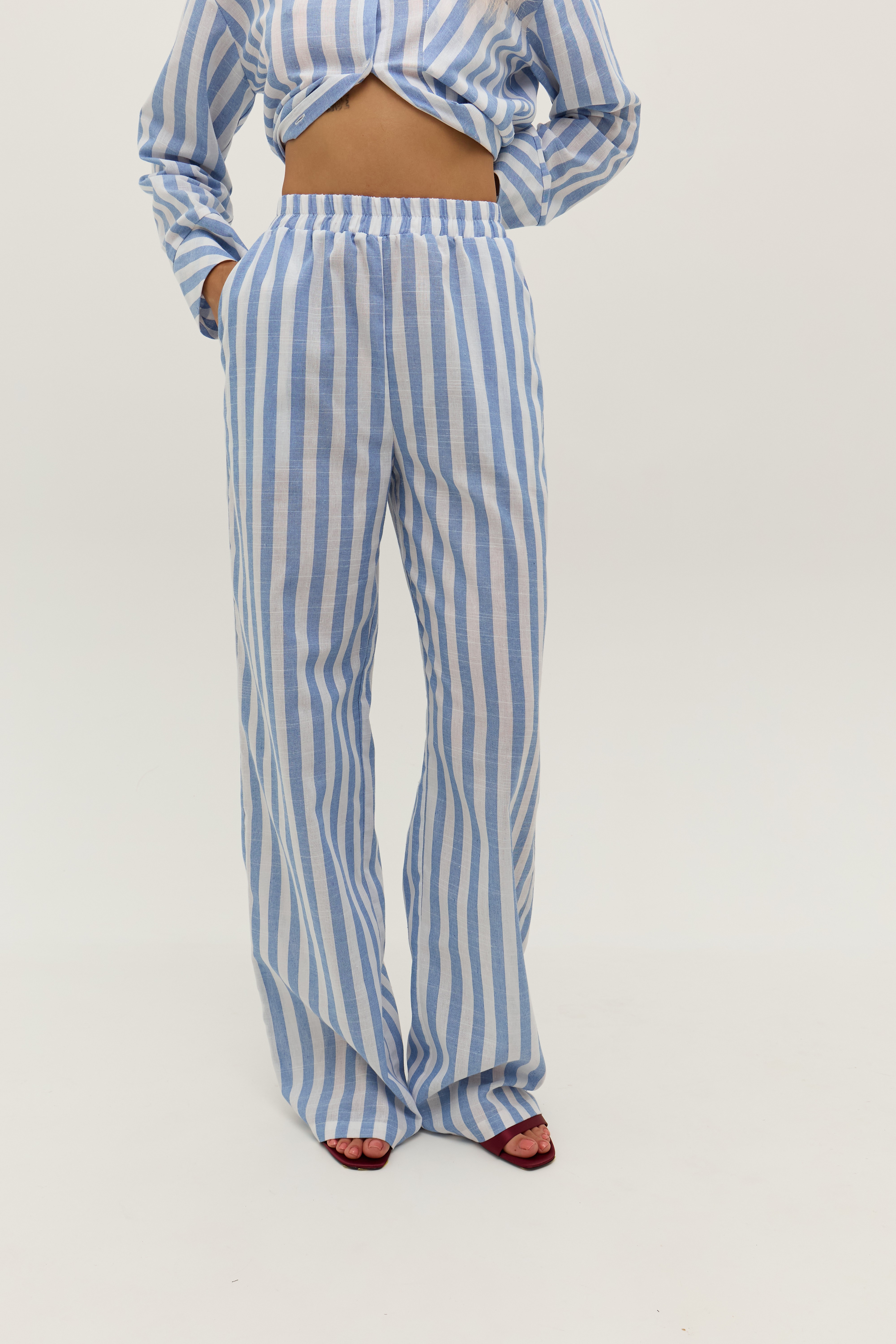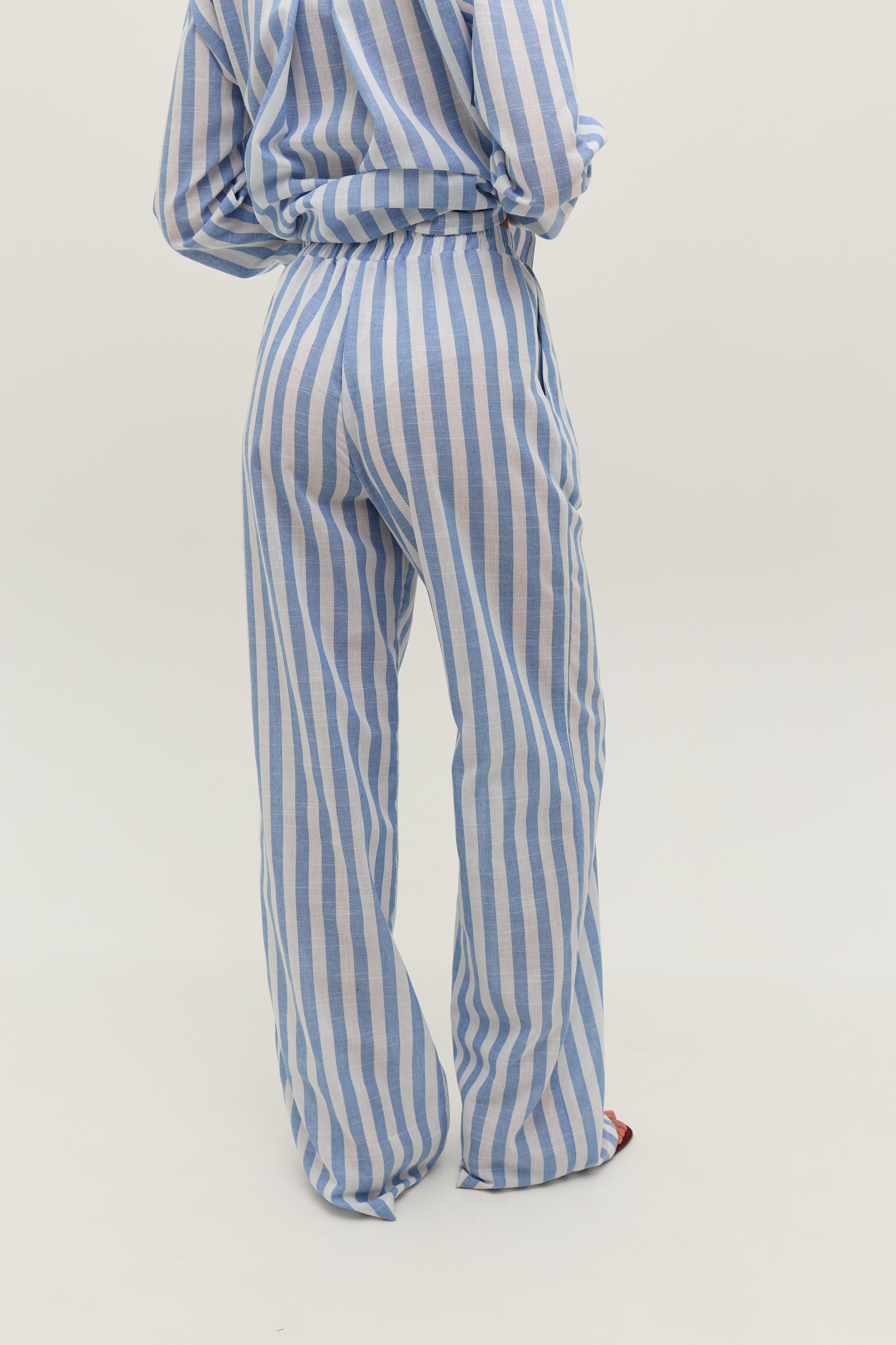 Штані у біло-блакитну смужку