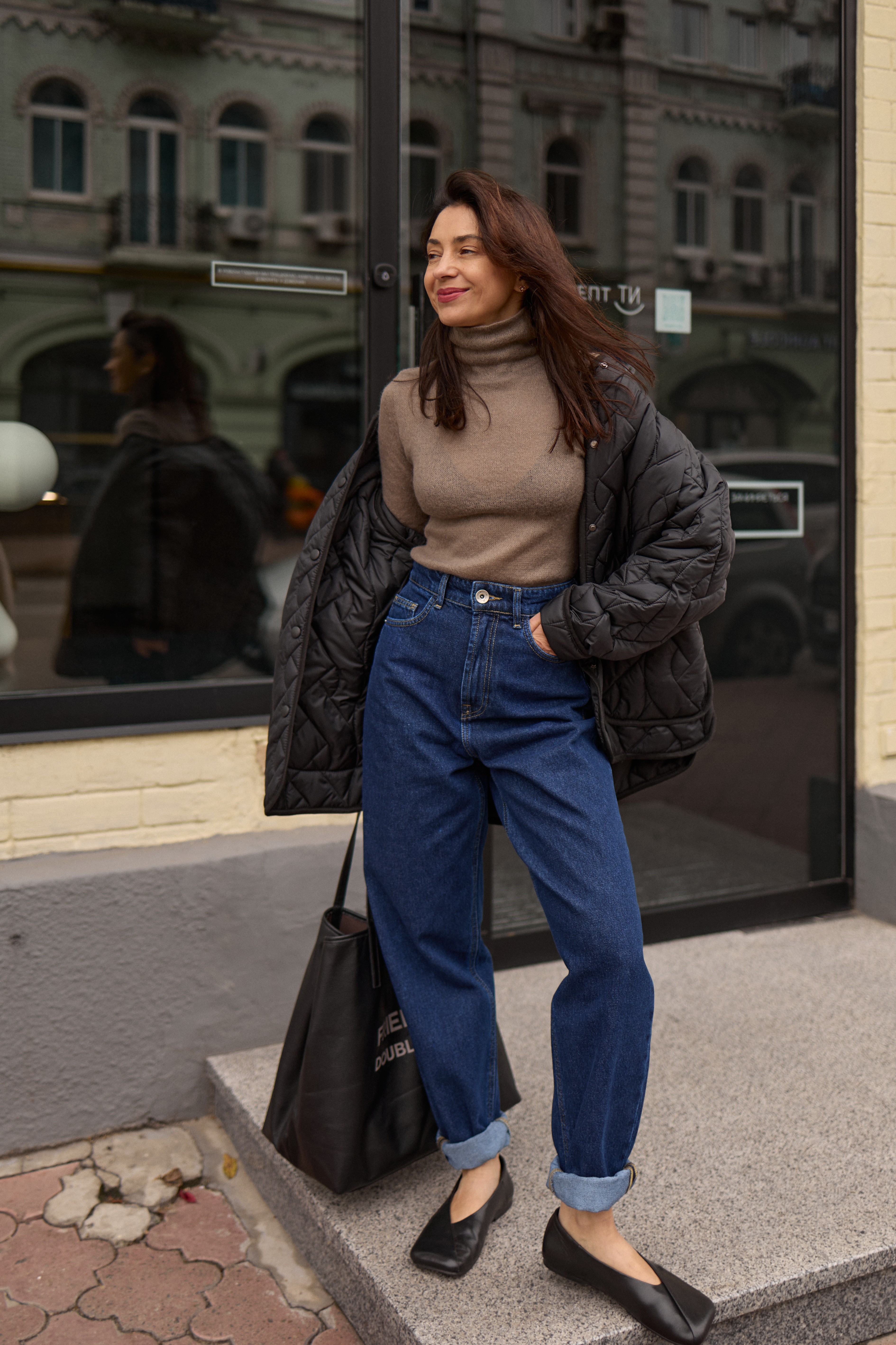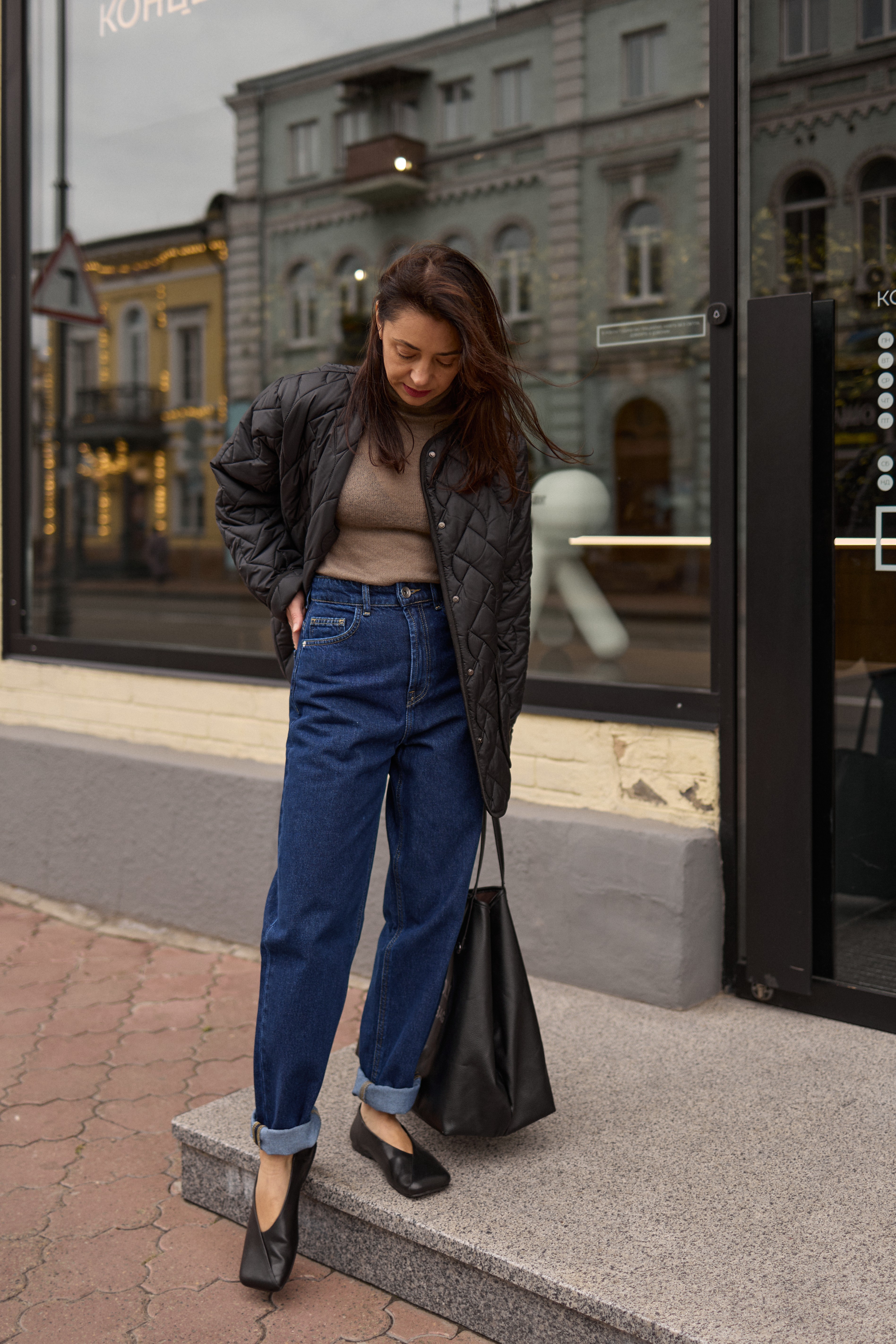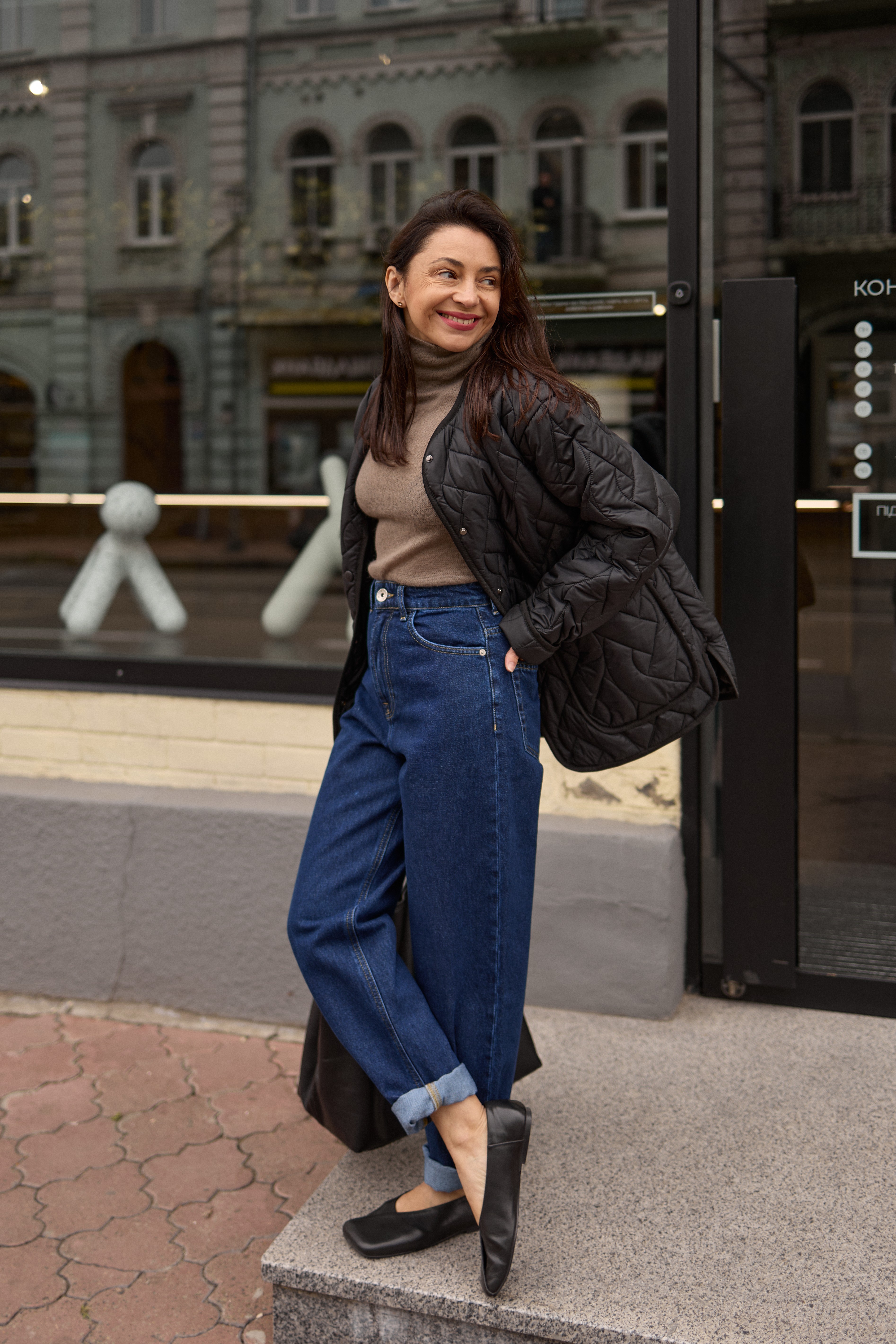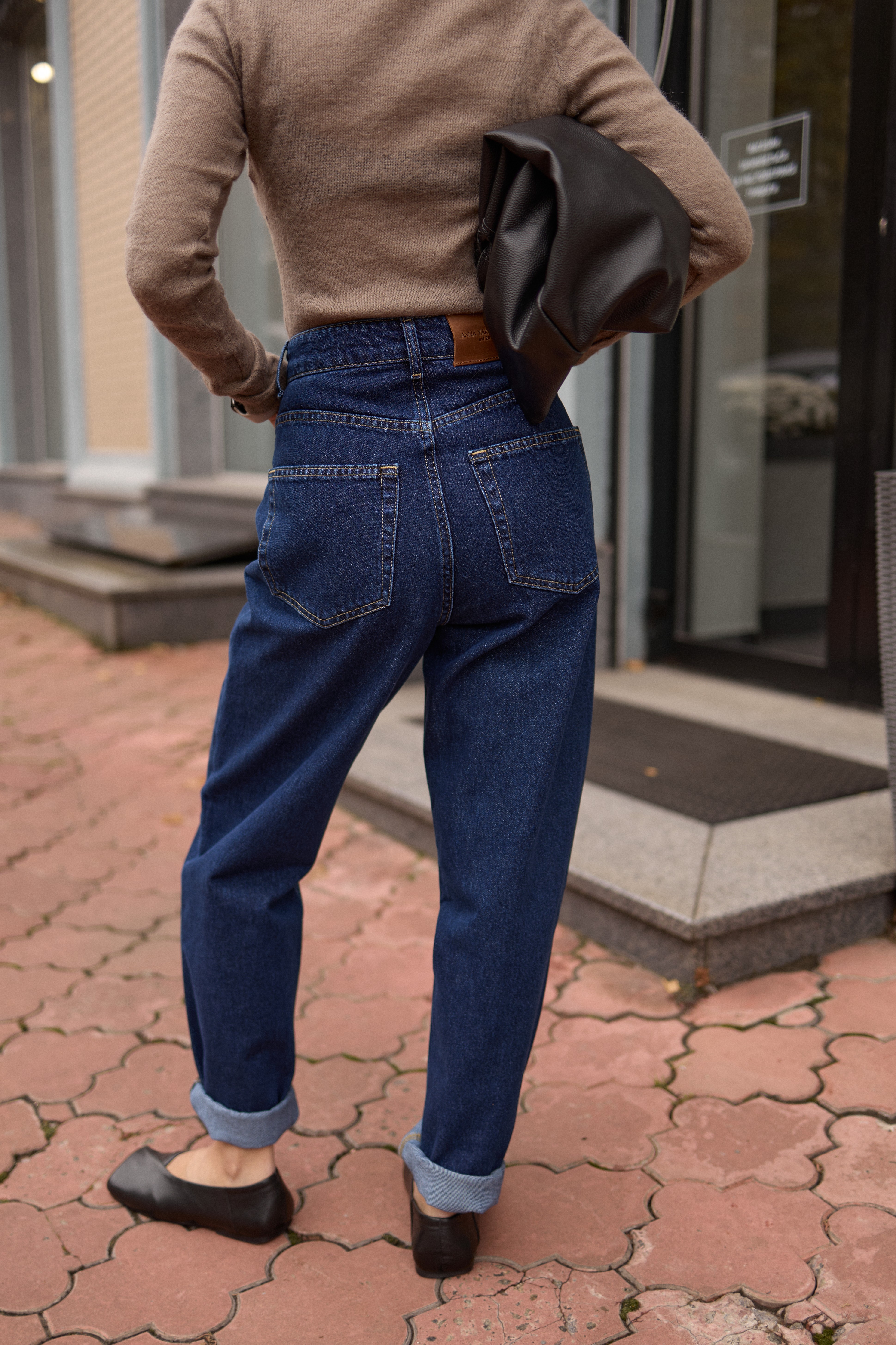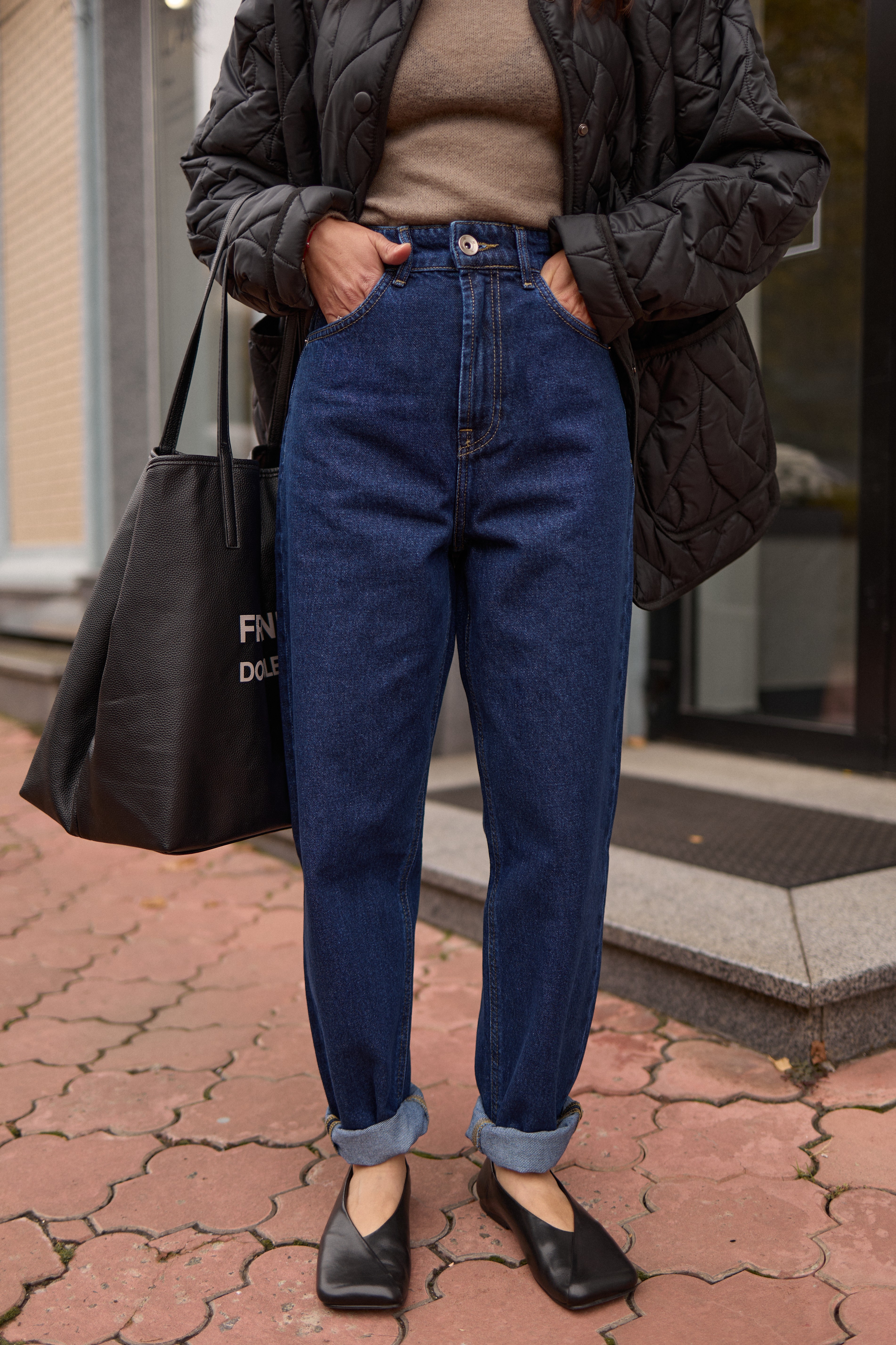 Темно сині джинси мом
