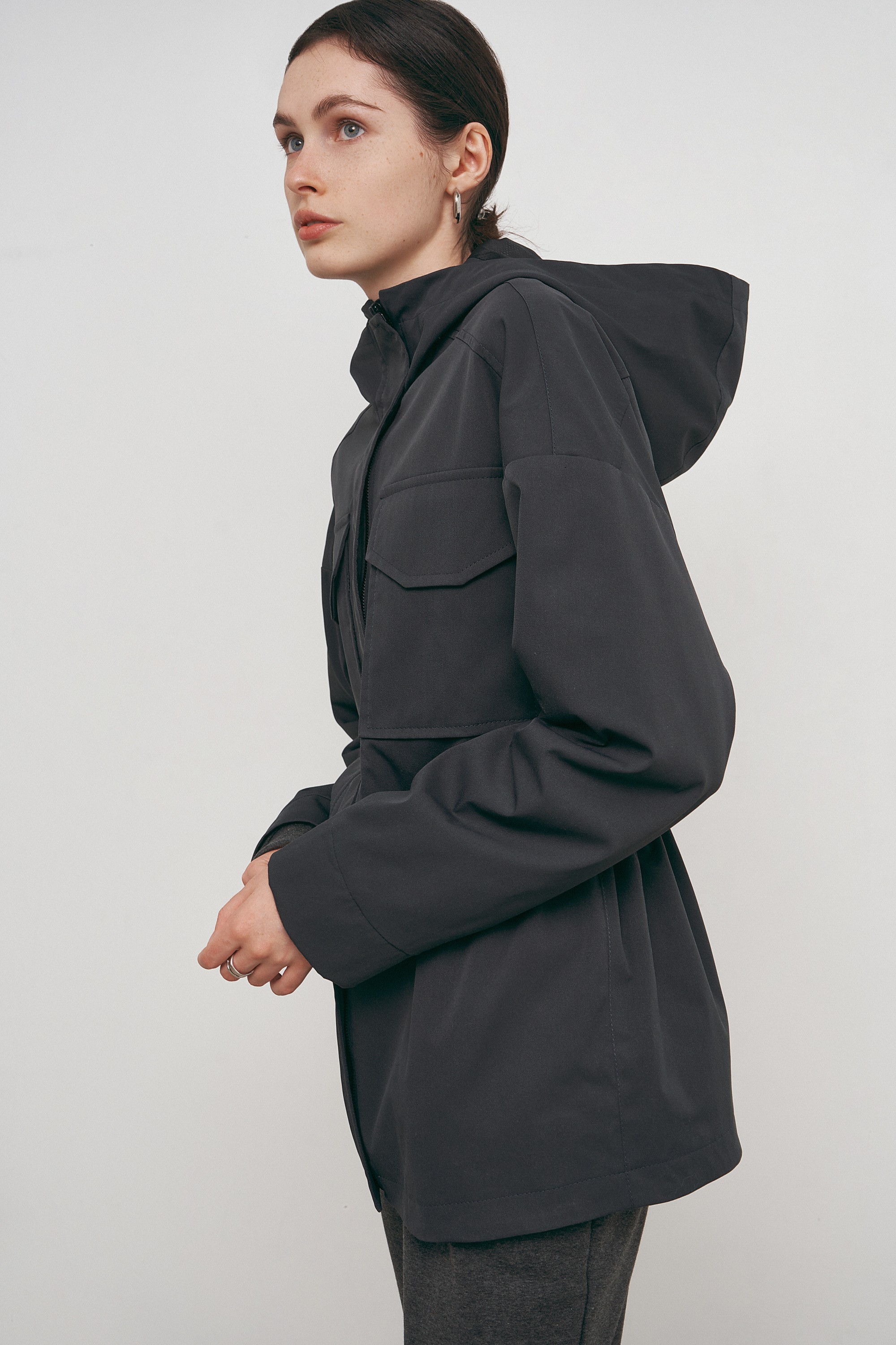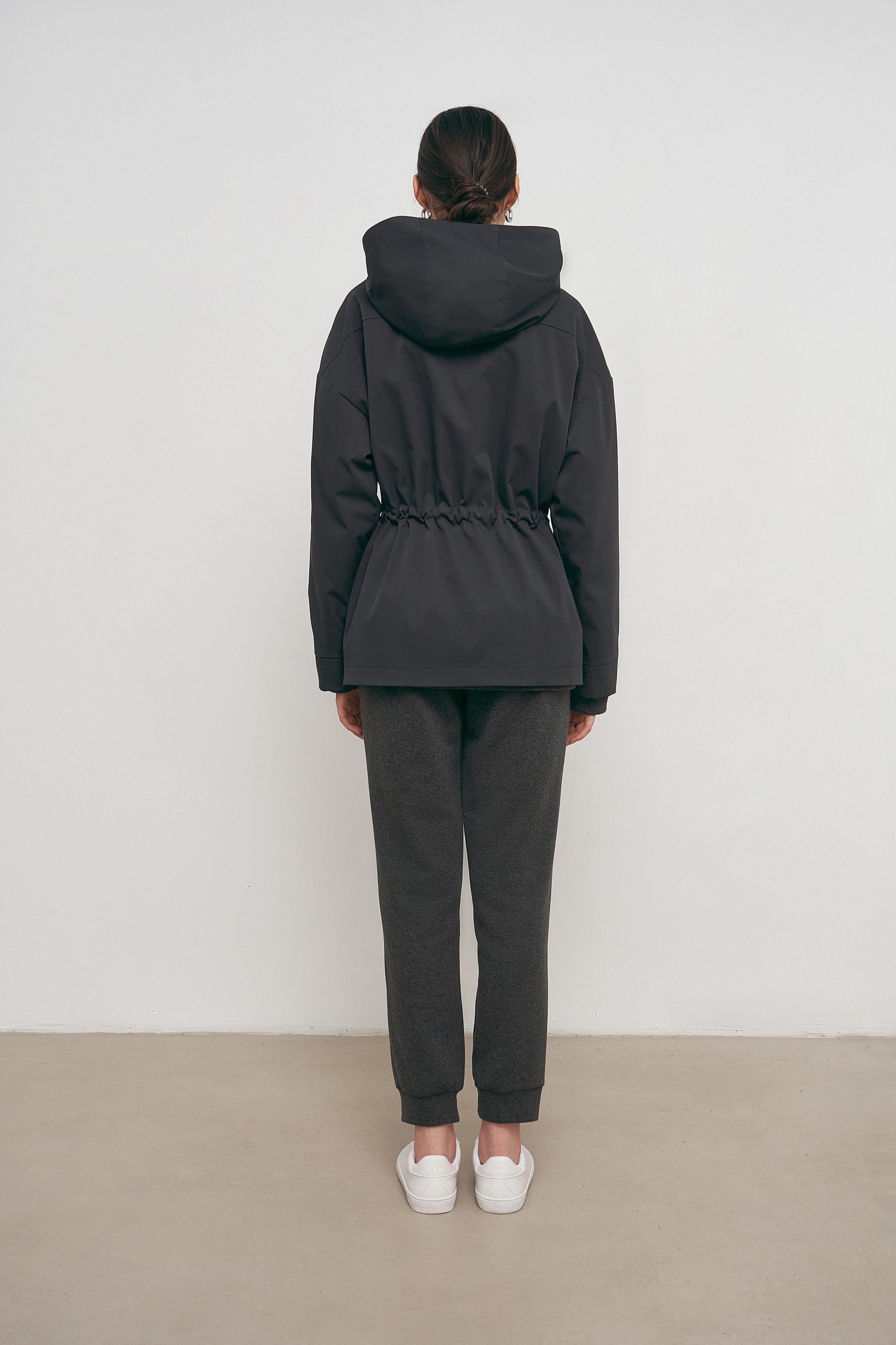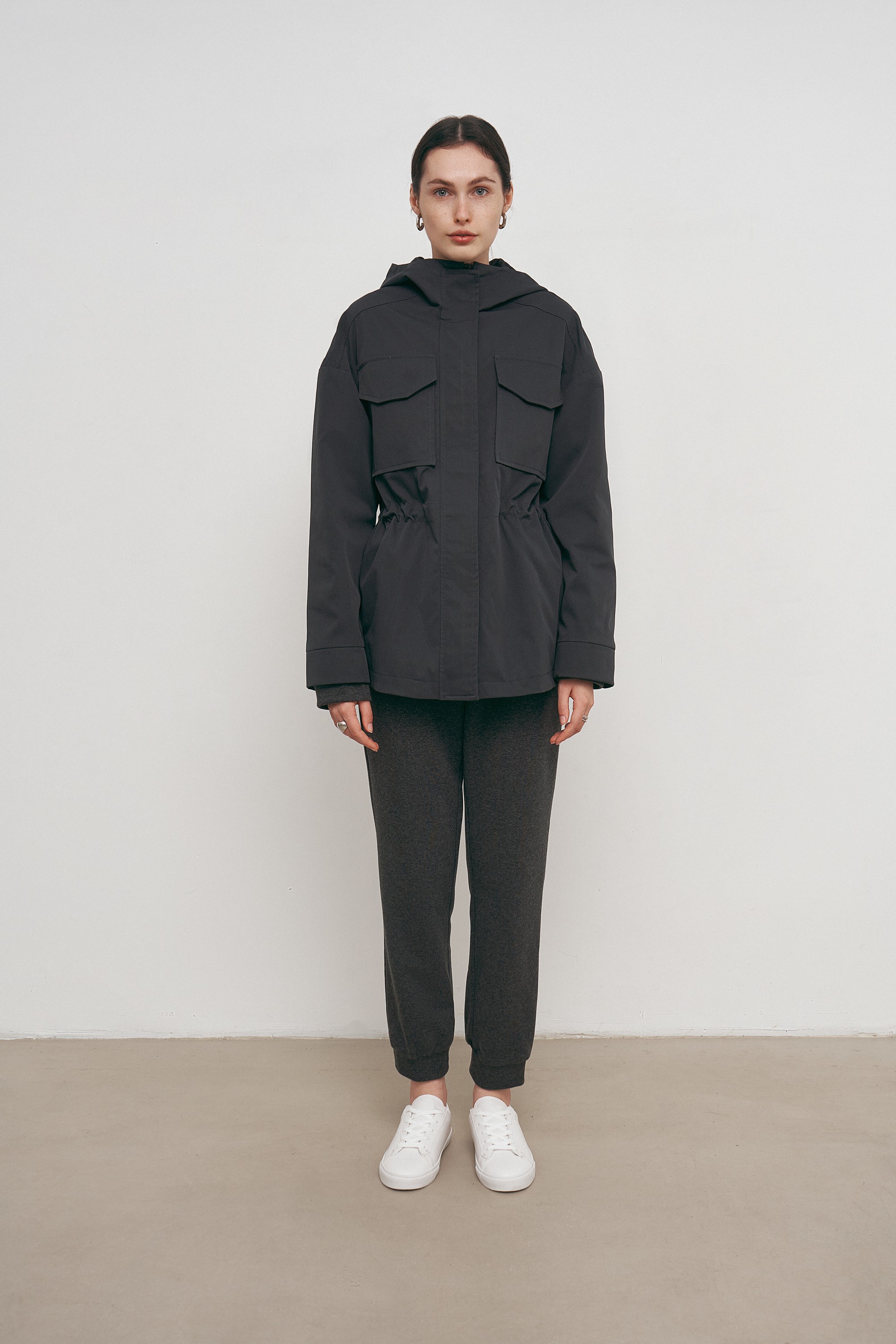 Сіра демісезенна куртка з капюшоном