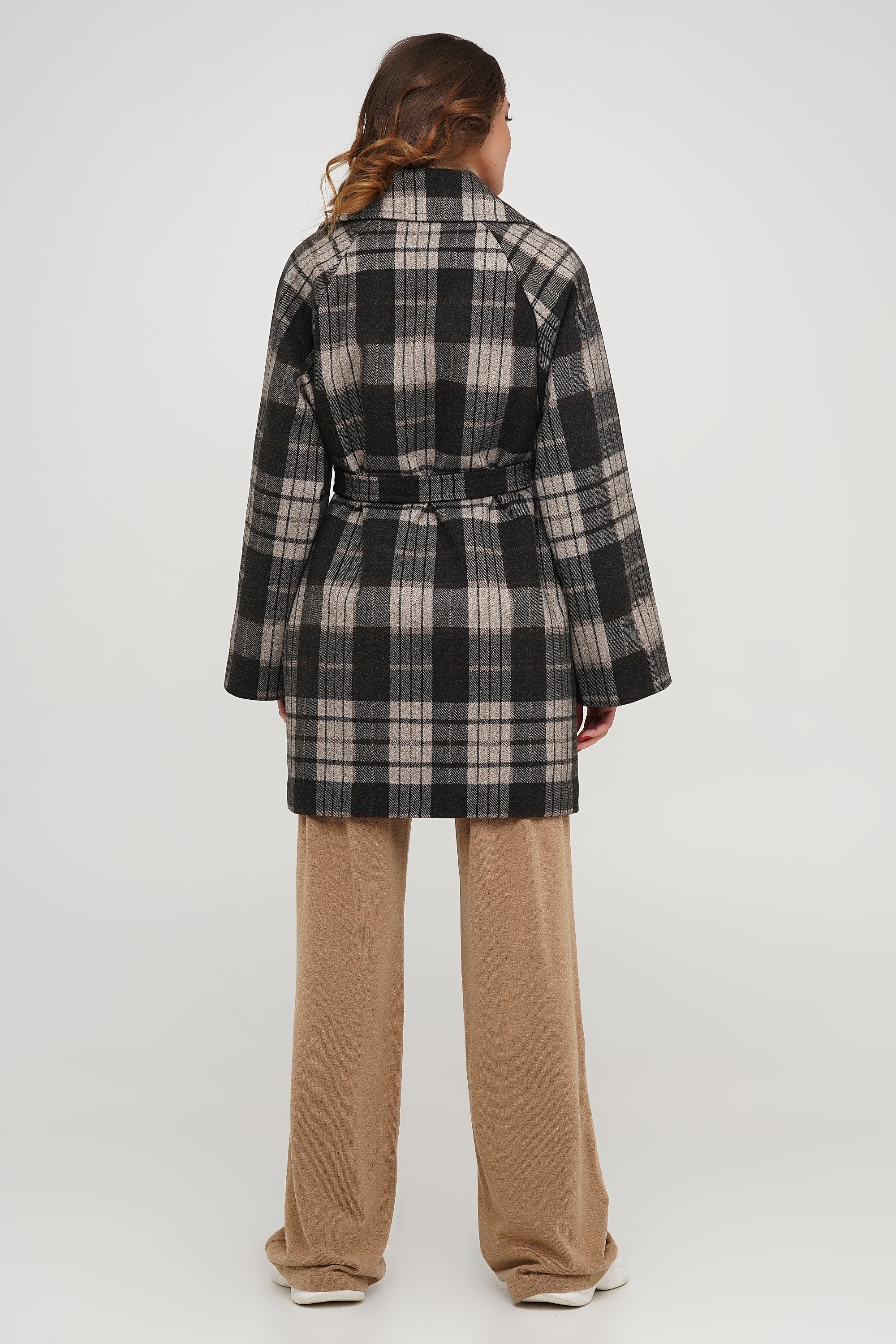 Вкорочене пальто у клітку 3316