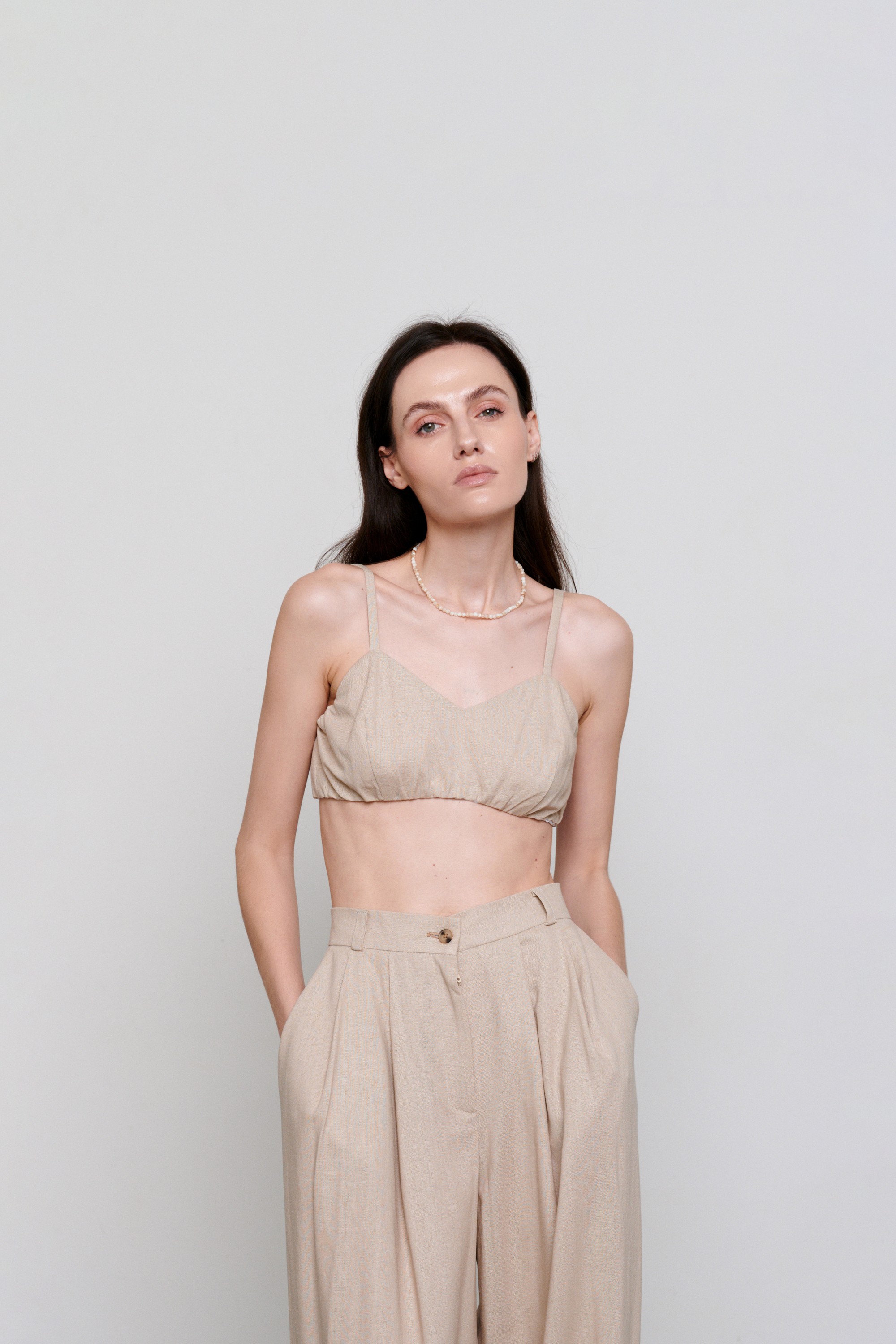 Лляний бежевий топ