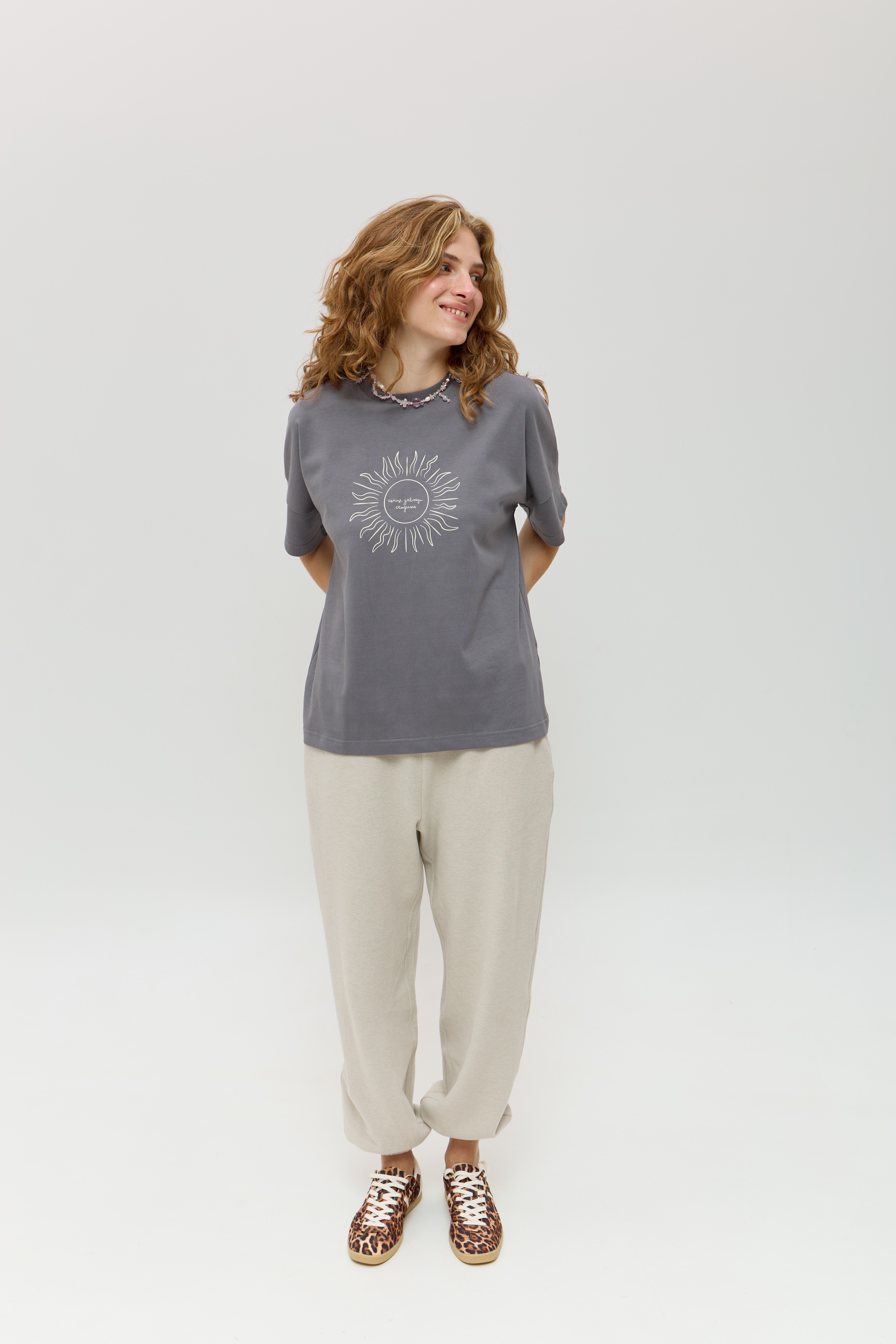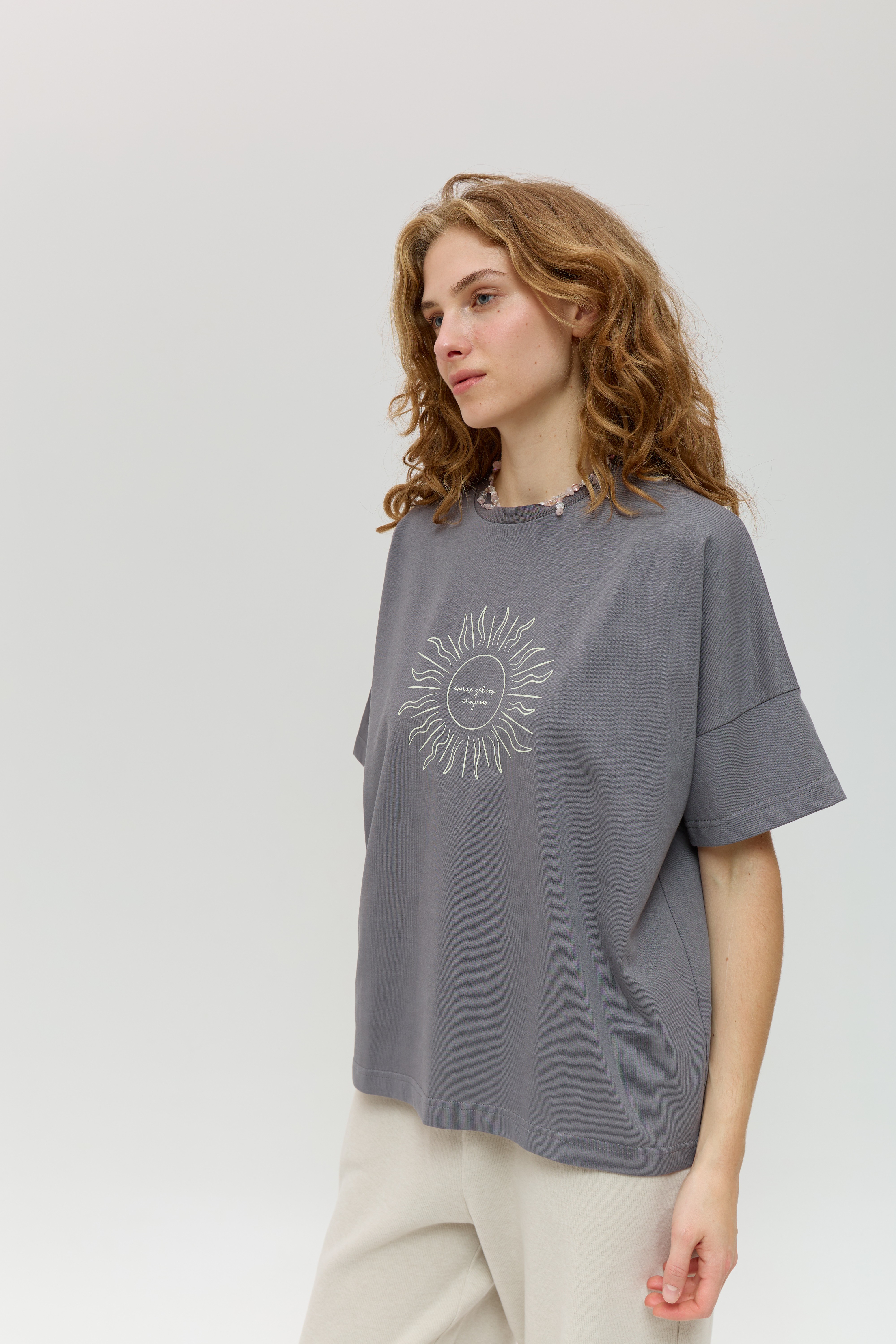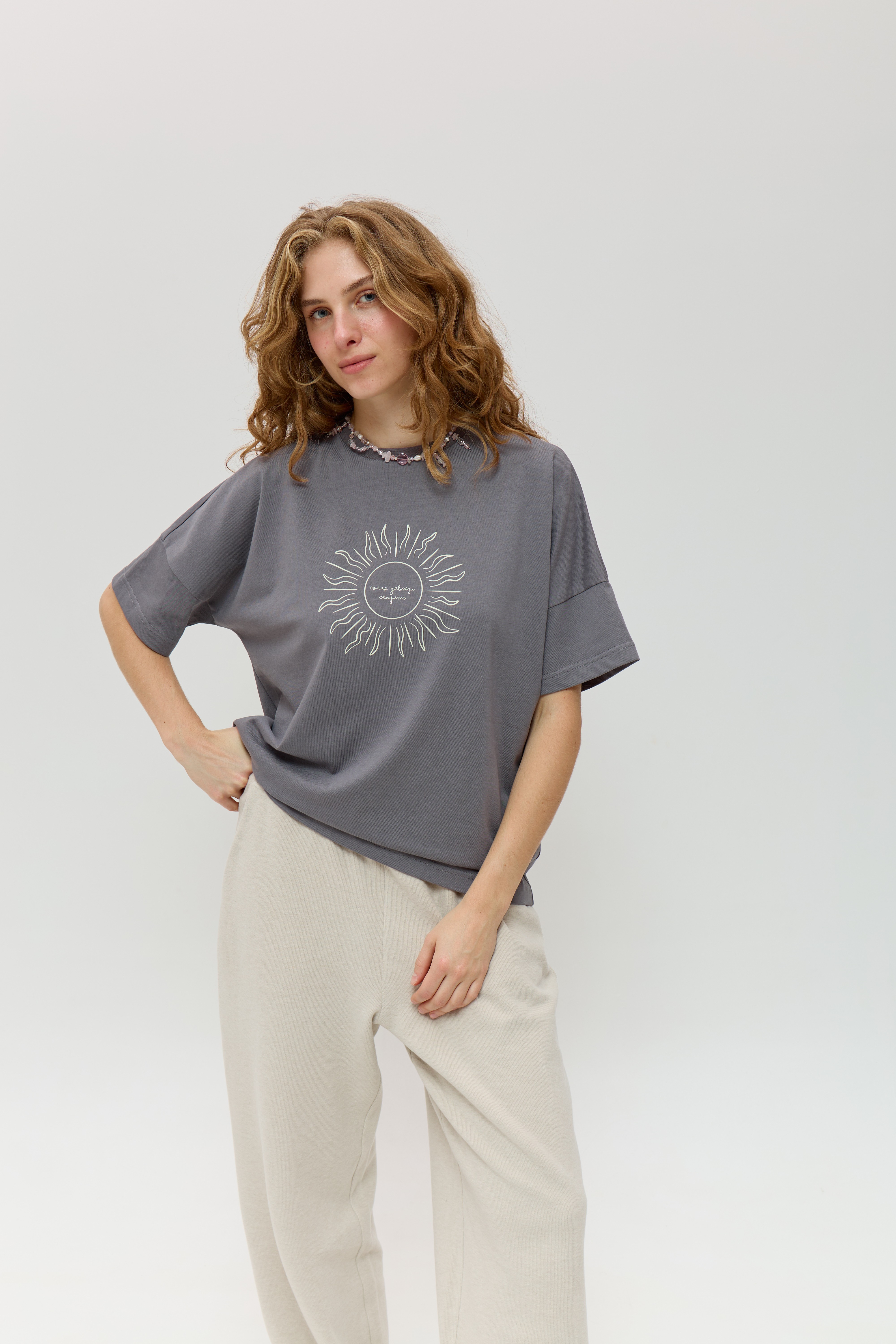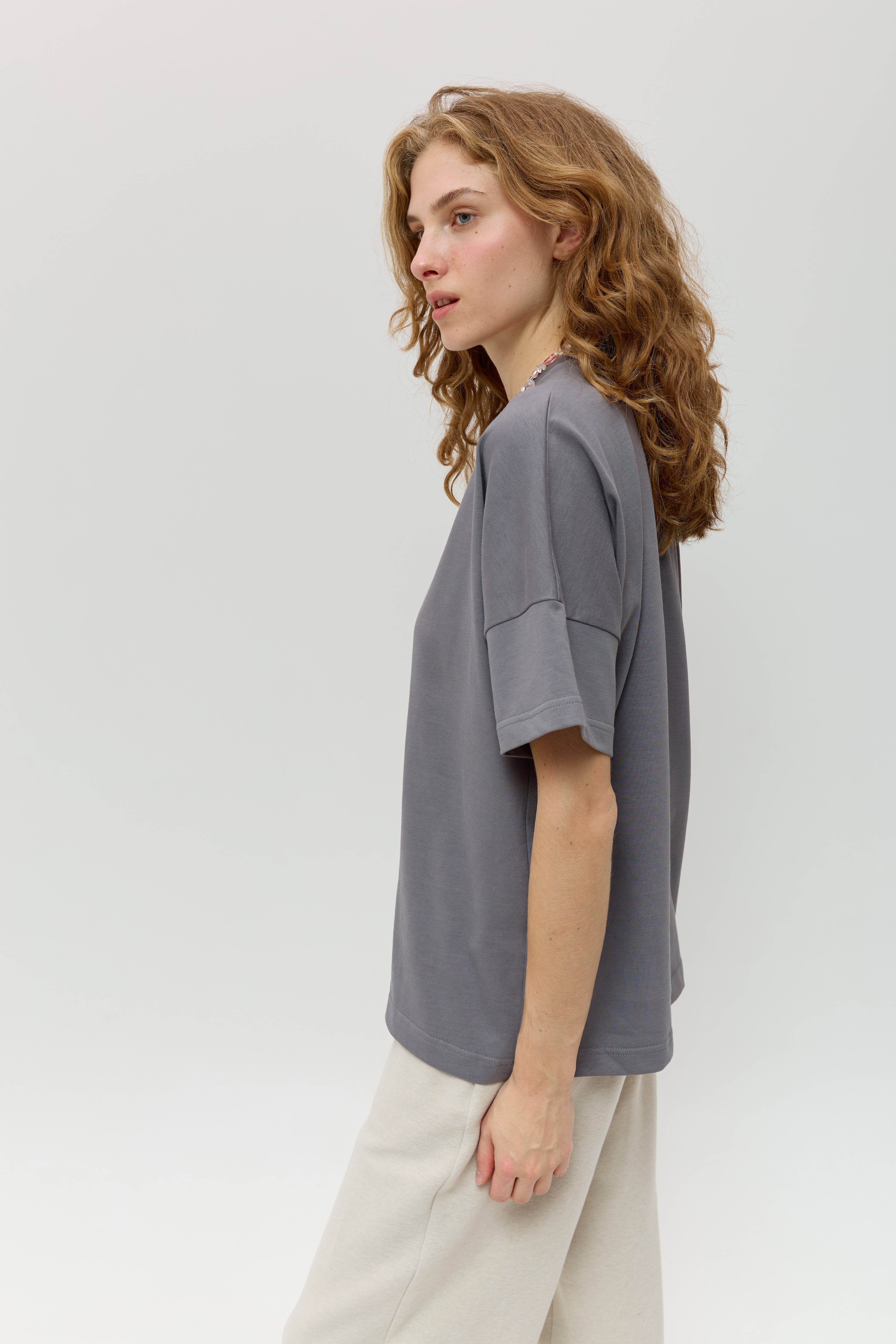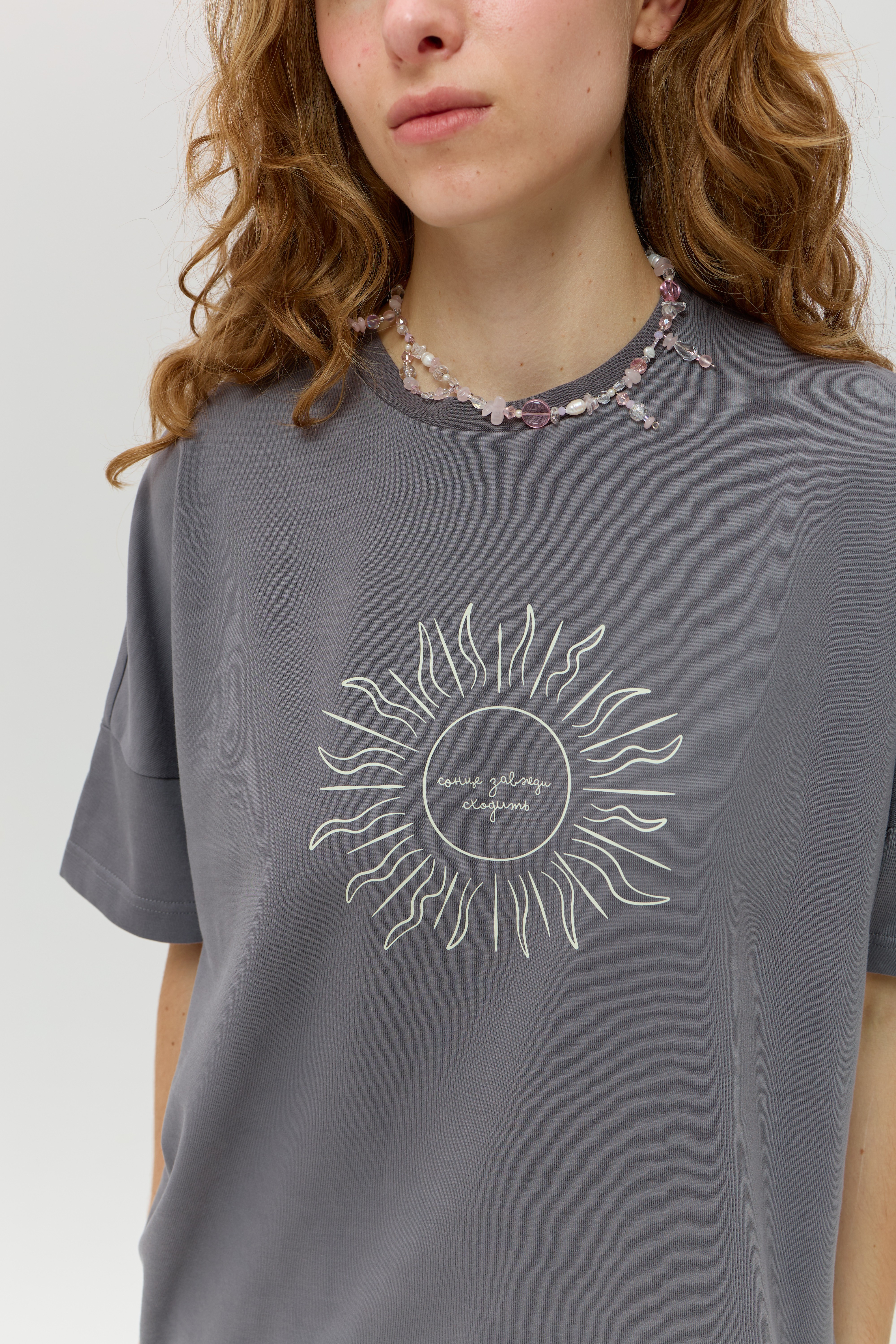 Сіра футболка зі спущеним рукавом