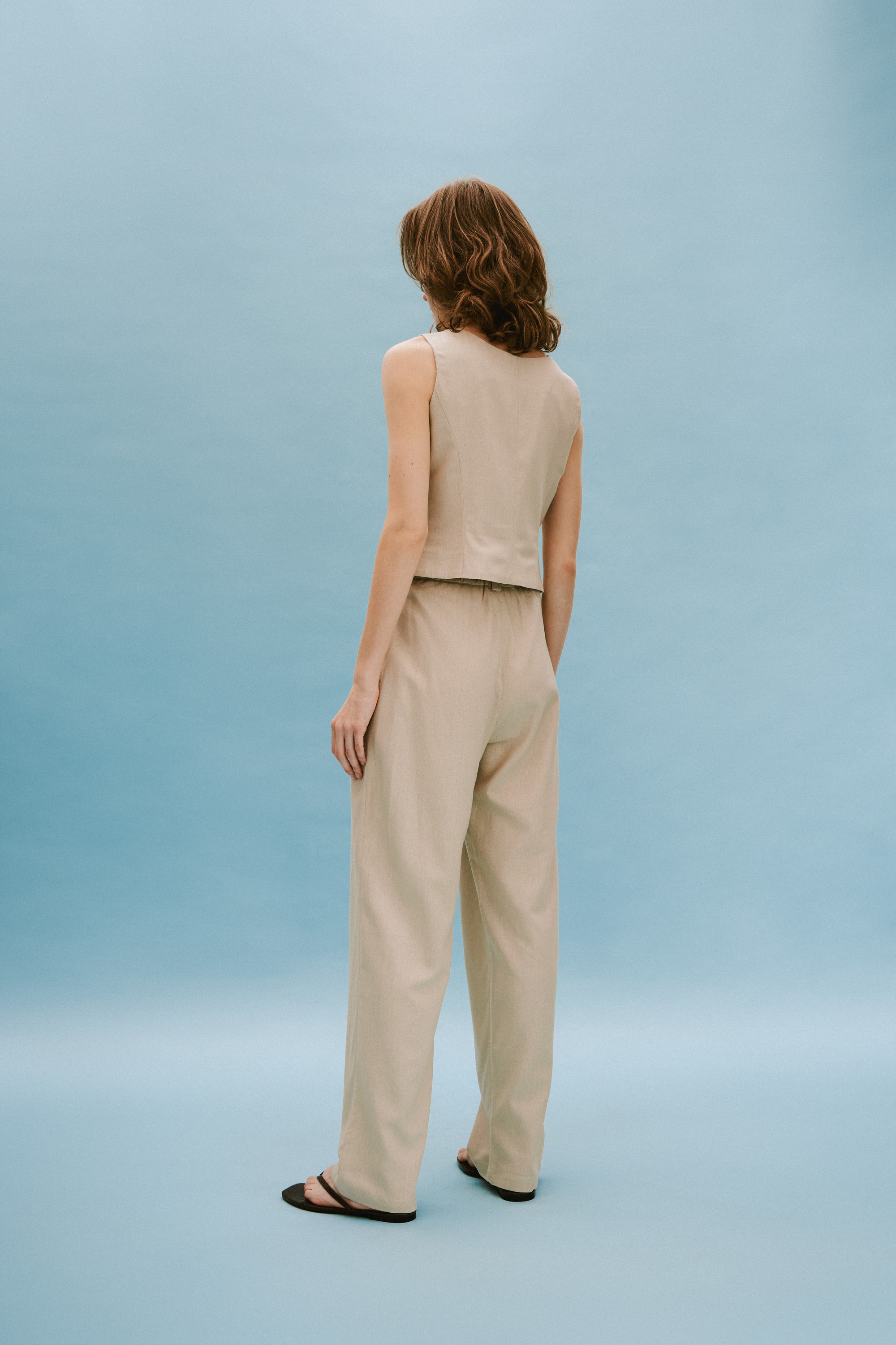 Бежевий лляний жилет