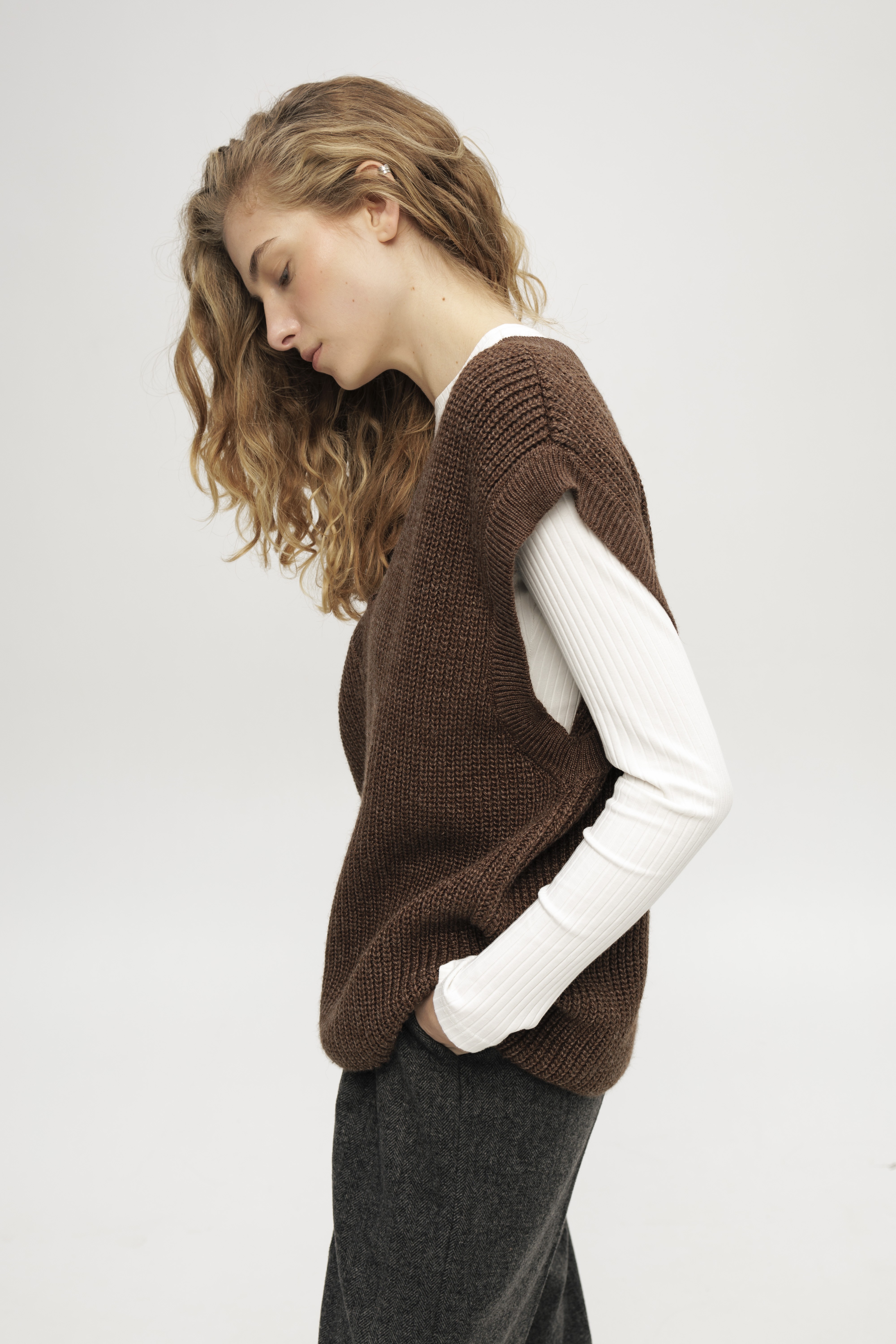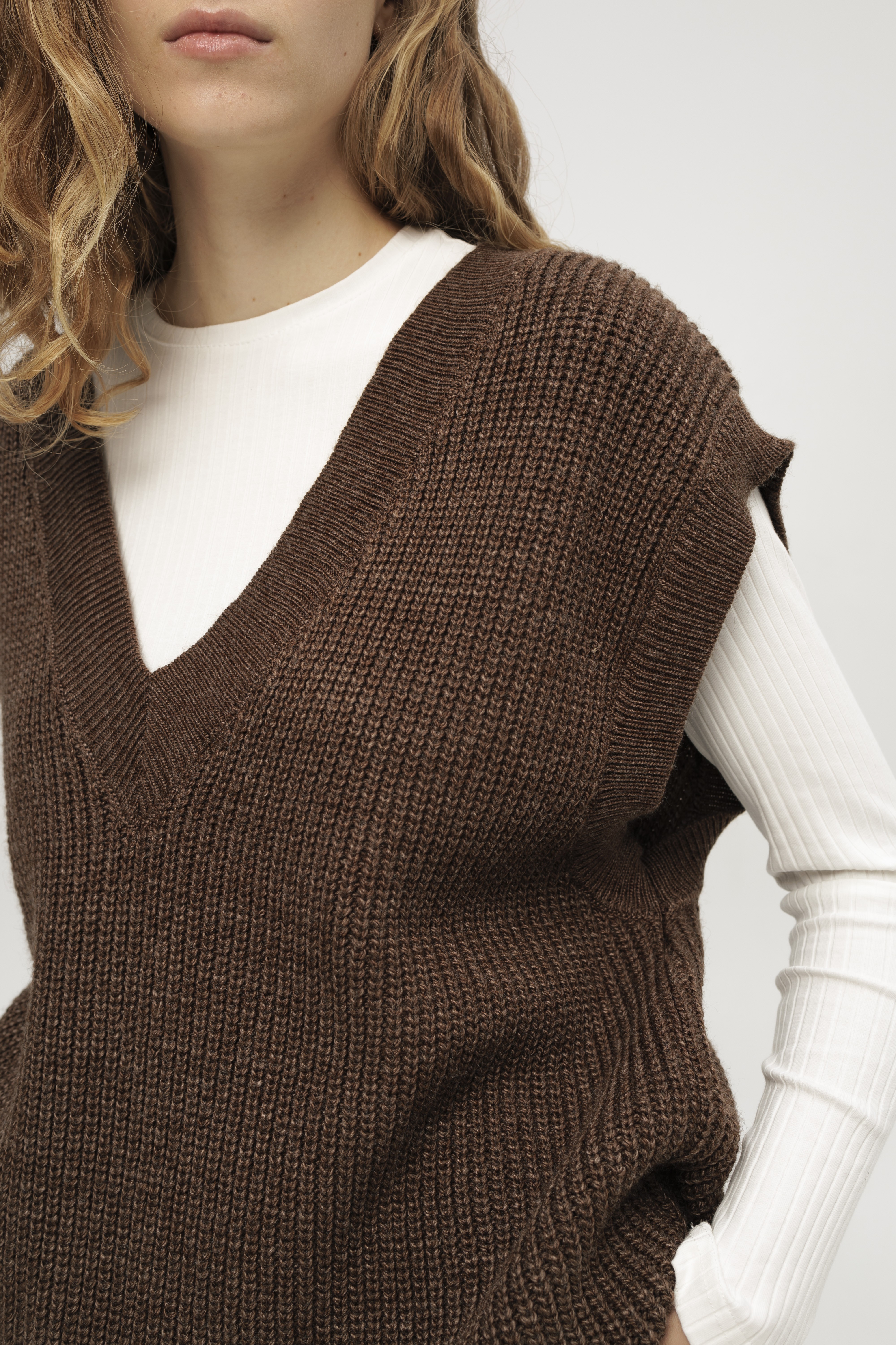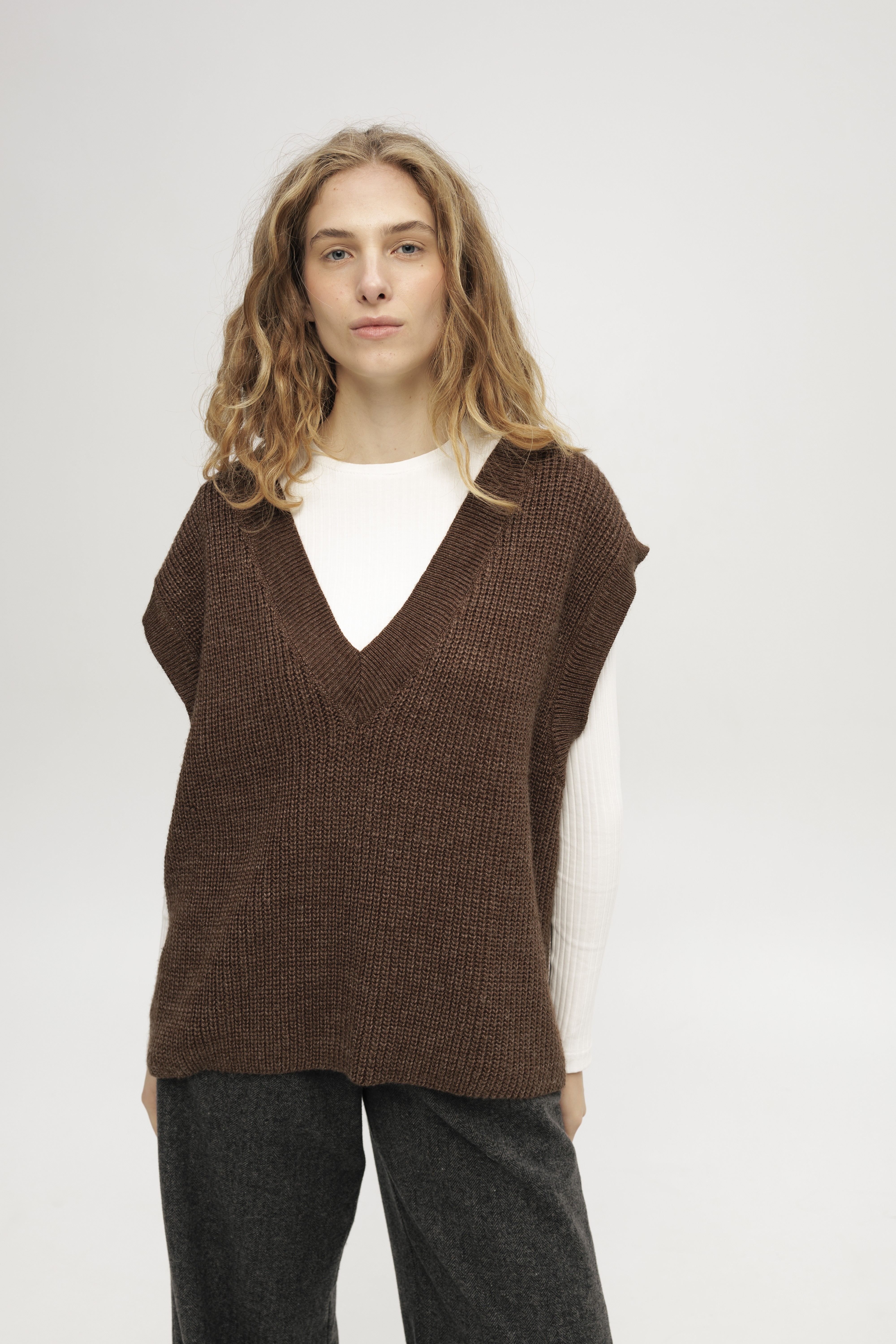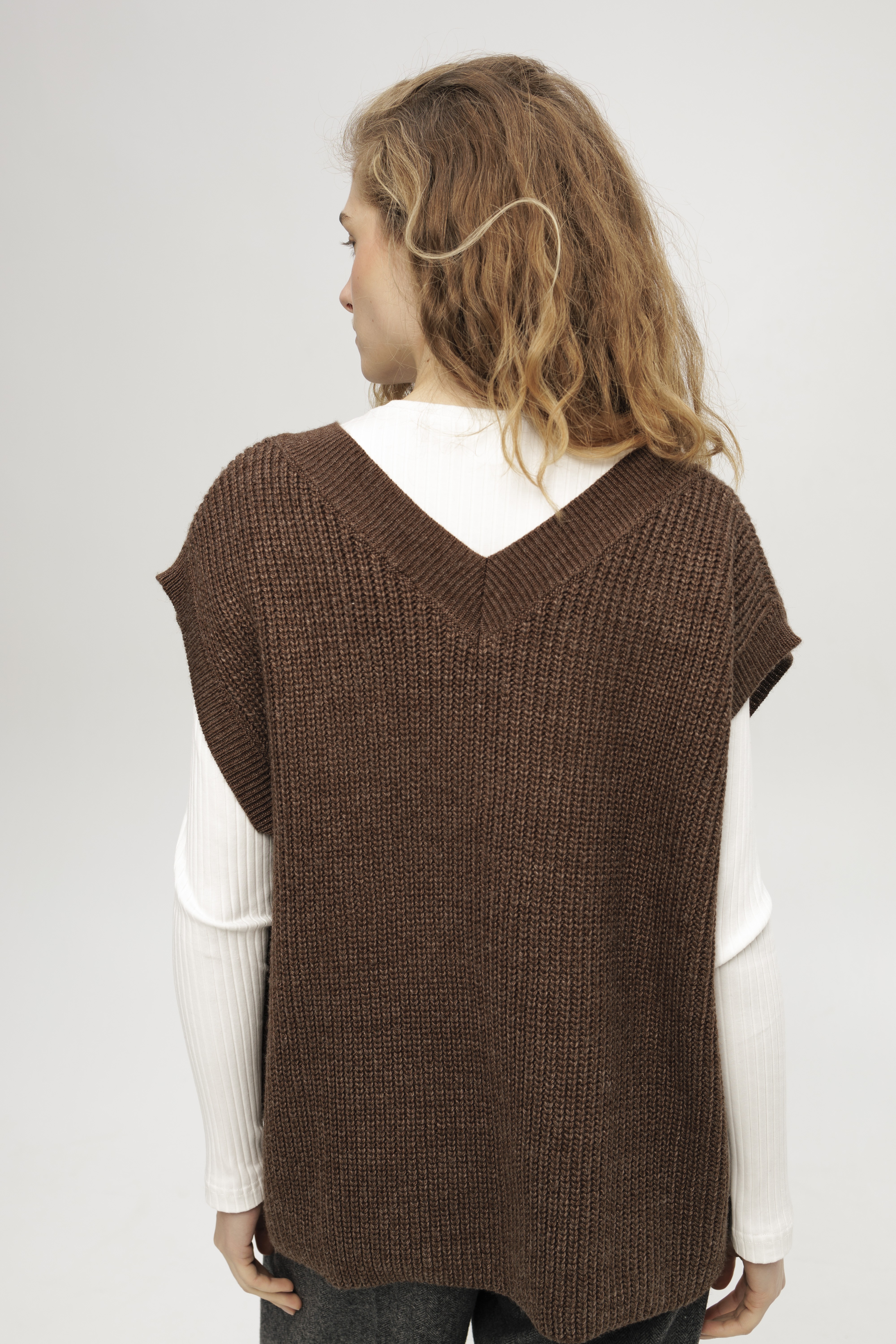 Коричневий в'язаний жилет